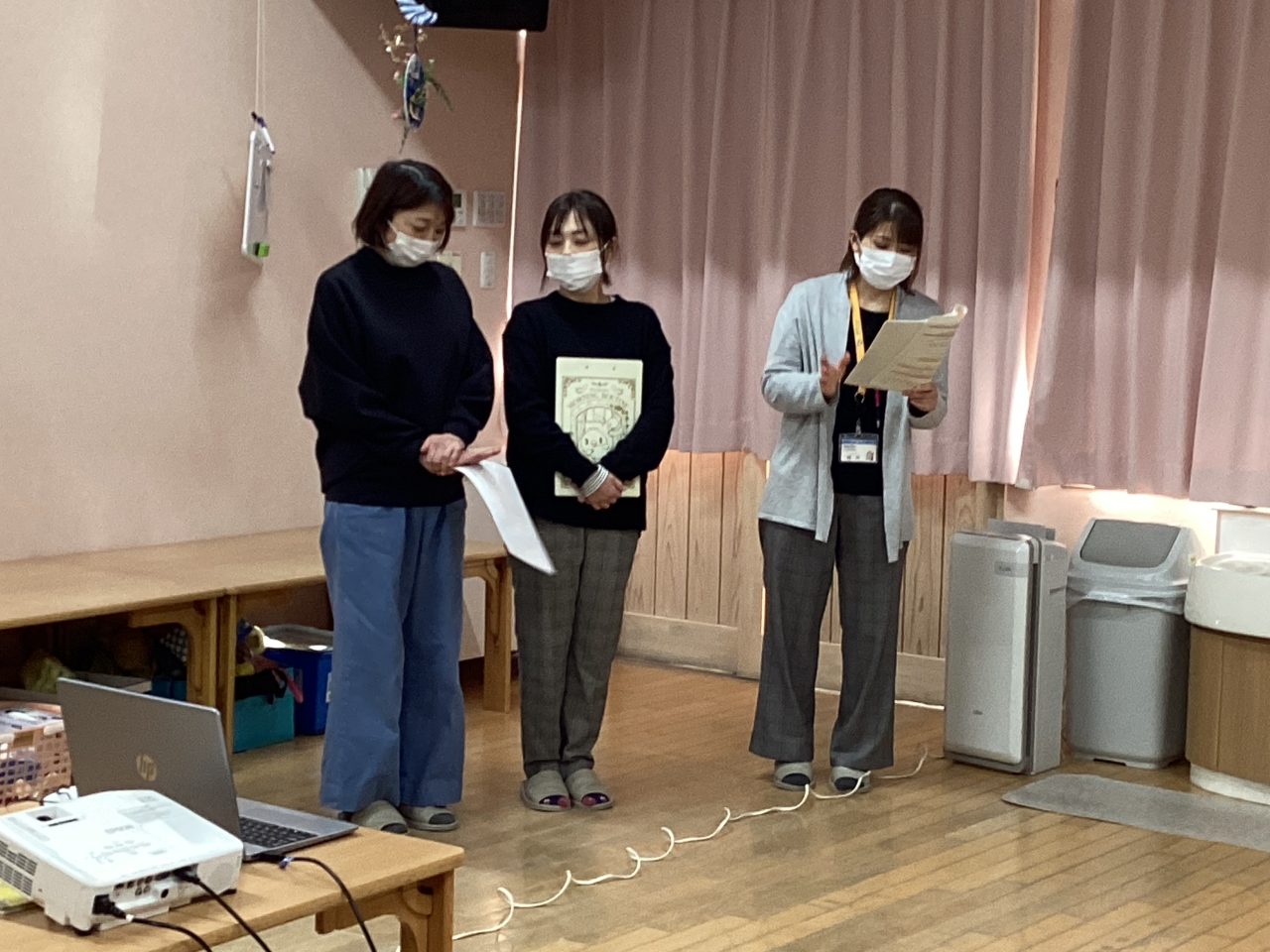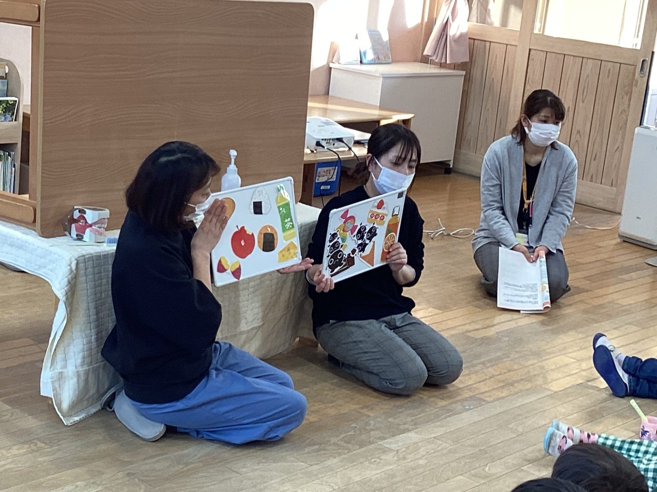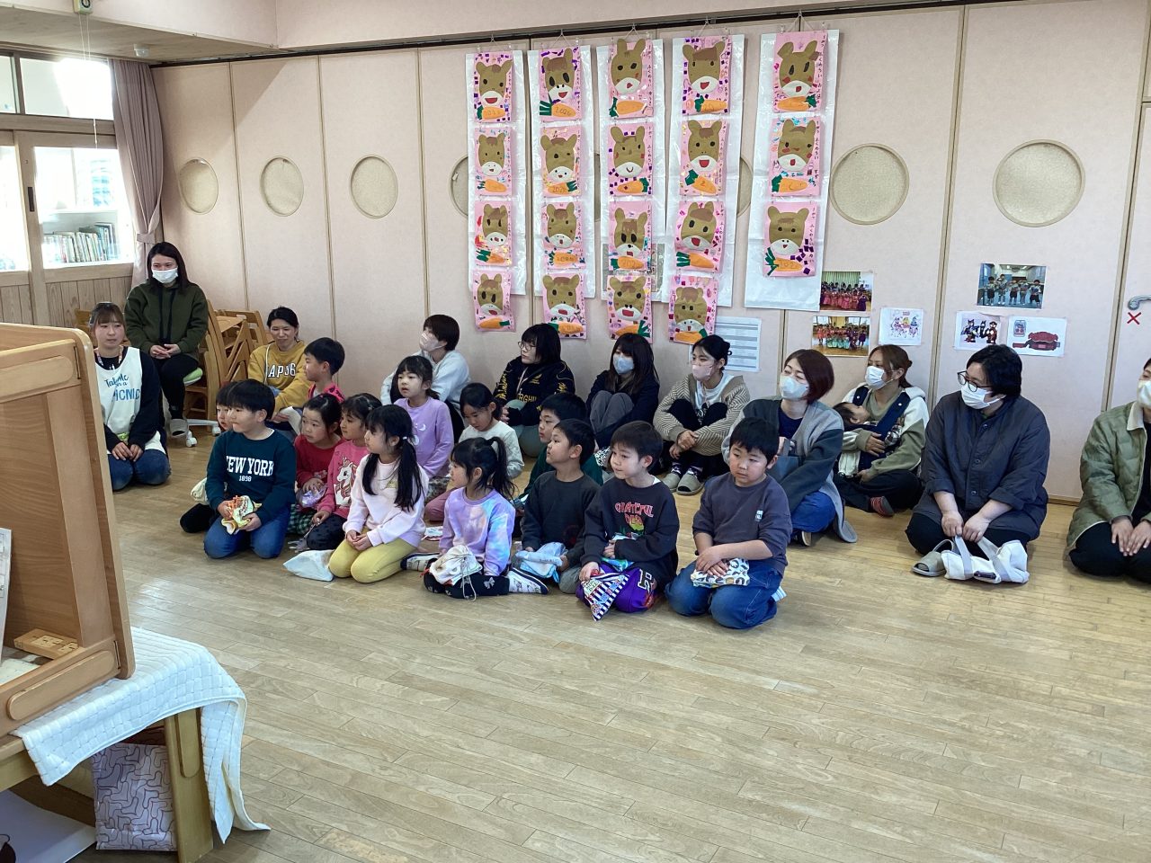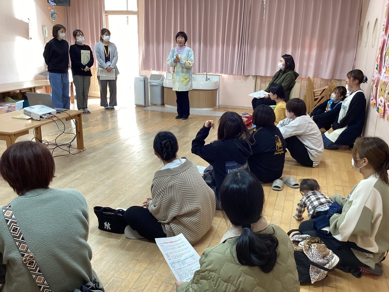 懇談会では園での様子を担任が話した後に家庭での様子をお母さんに話してもらいました。