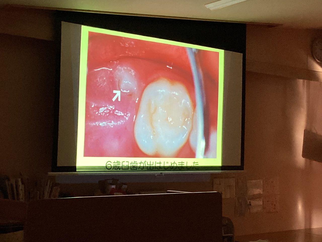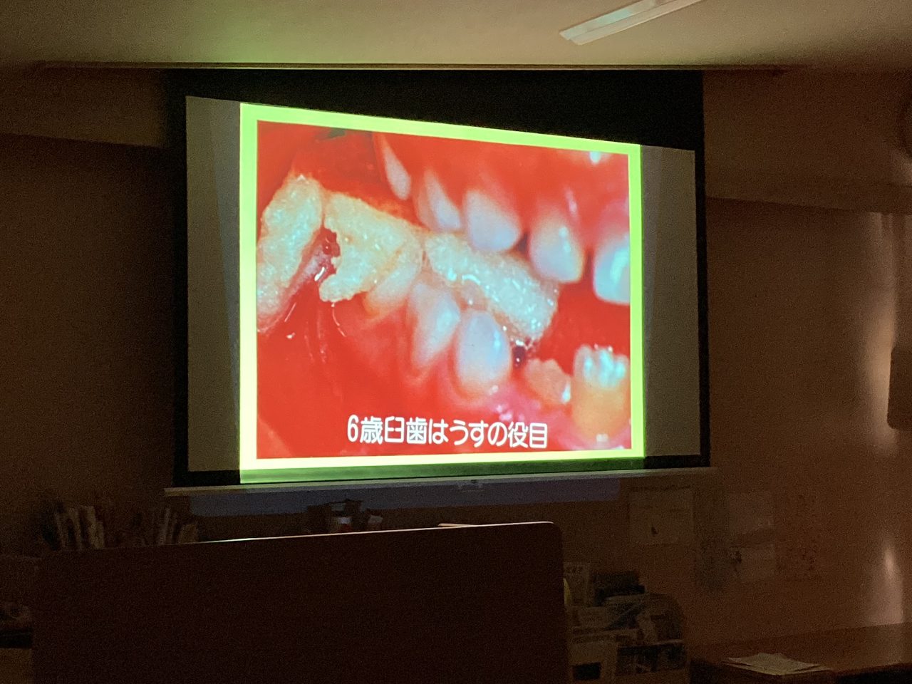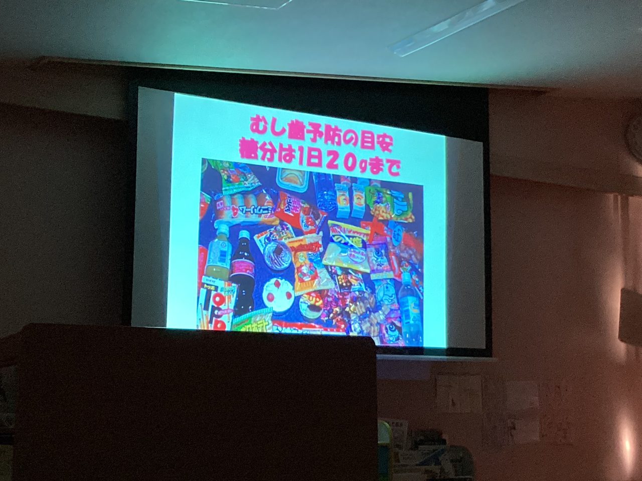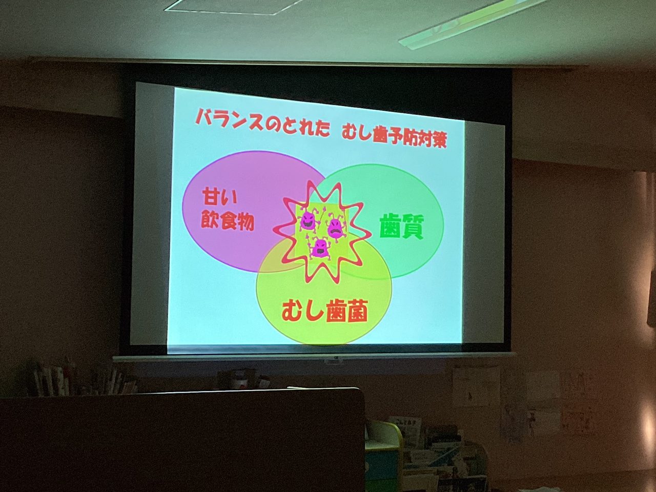 歯の大切さ、6歳臼歯についてや磨き方などをスライド・人形劇を使って分かりやすく教えてもらいました。最後に甘いものを食べすぎない・歯磨きをしっかりとする・フッ素を使って予防をするの3つを約束してブラッシング指導は終わりました。