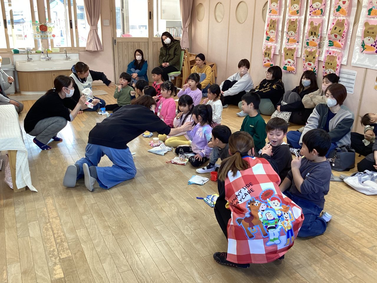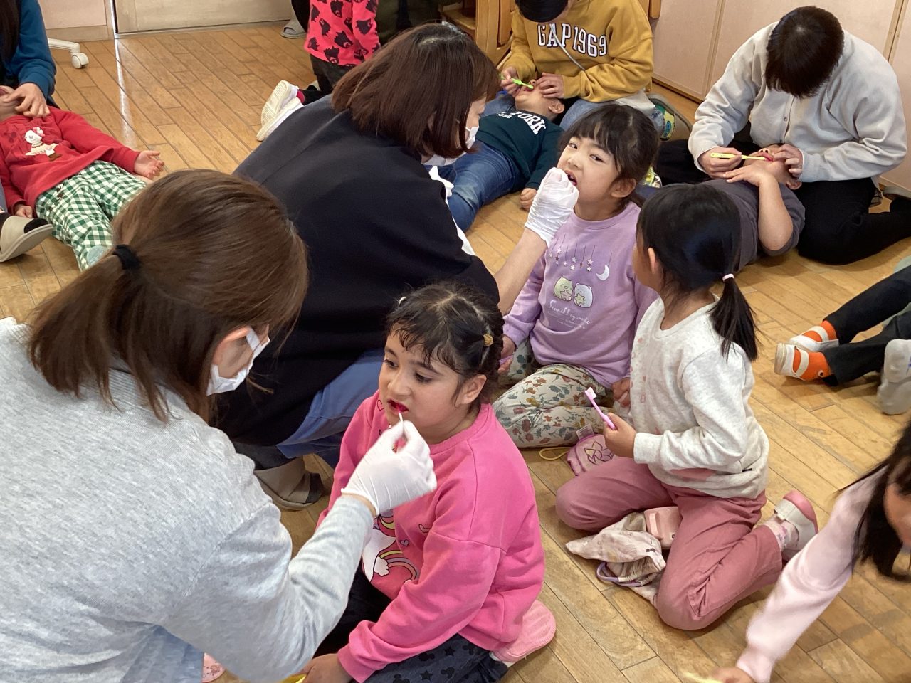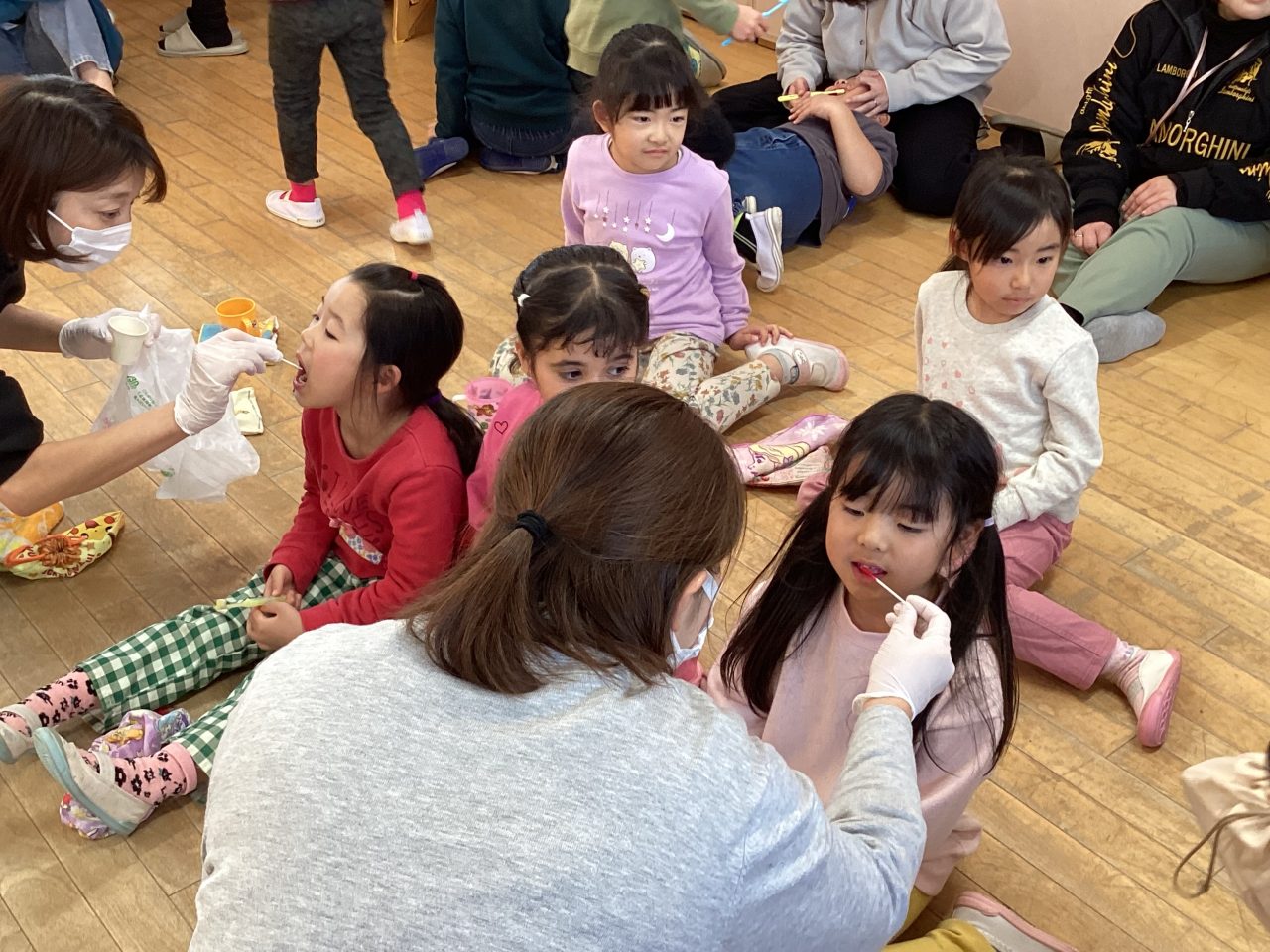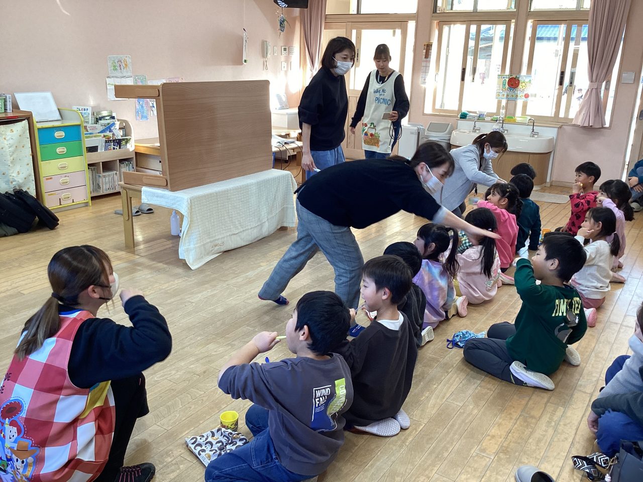 年長児きりん組の懇談会・ブラッシング指導がありました。