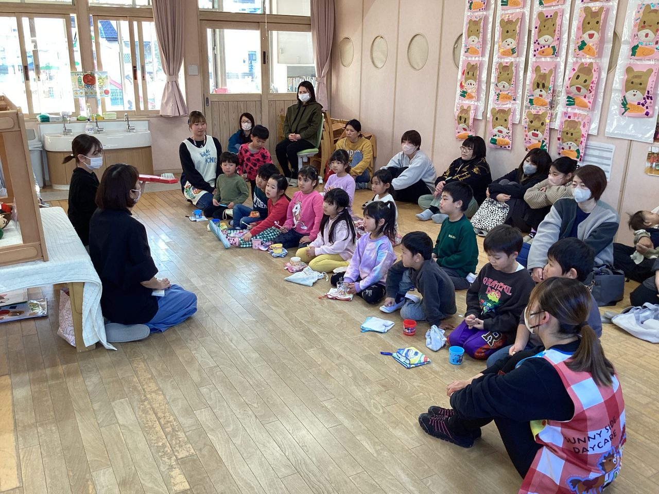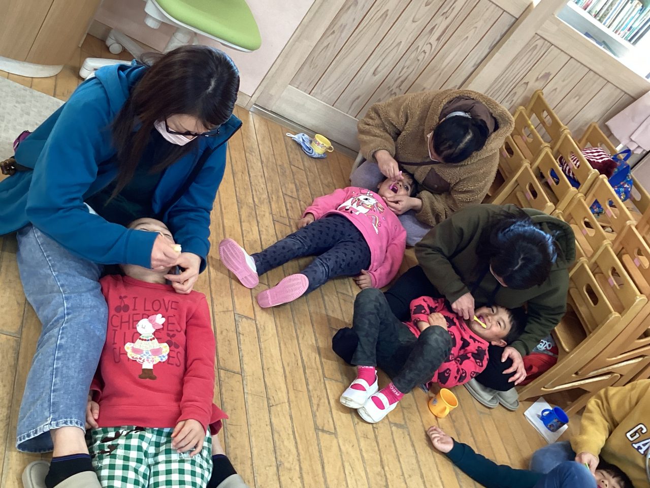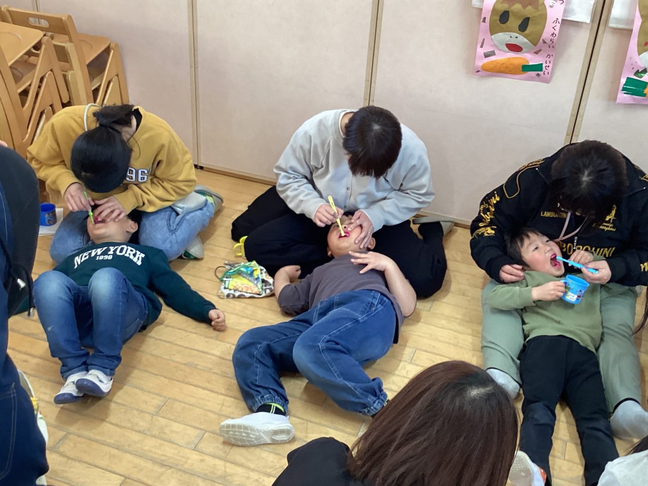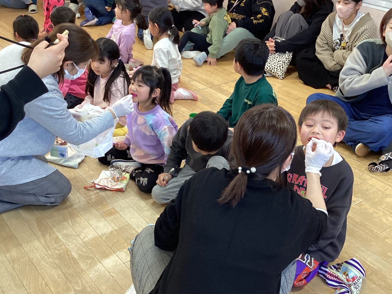 年長児きりん組の懇談会・ブラッシング指導がありました。