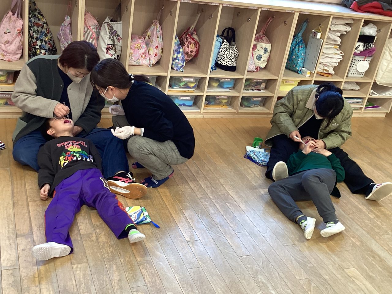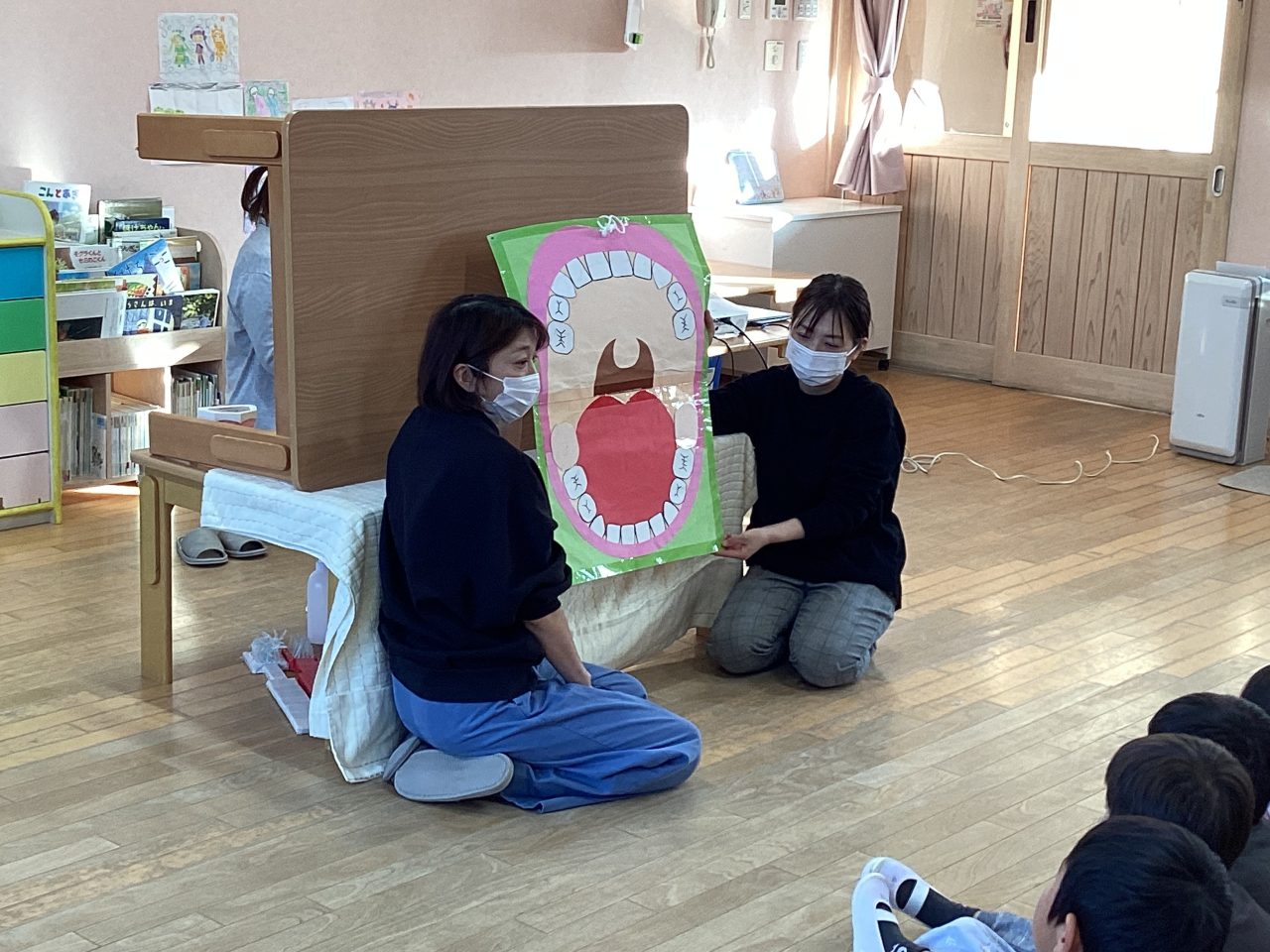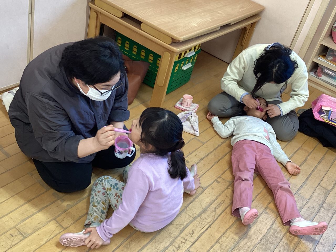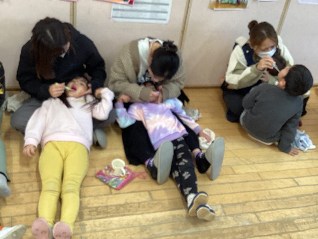 年長児きりん組の懇談会・ブラッシング指導がありました。