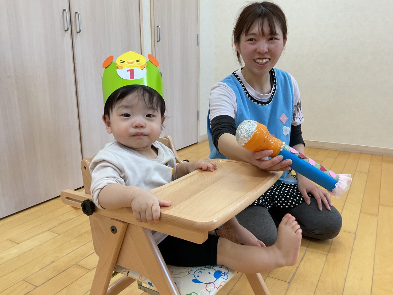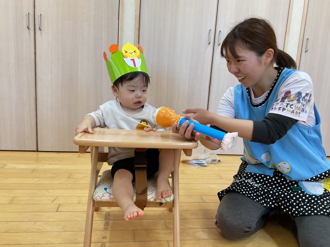 偶然にも二人とも10月生まれと聞いて、未満児1名以上児3名の子と一緒にお祝いをする事になりました。