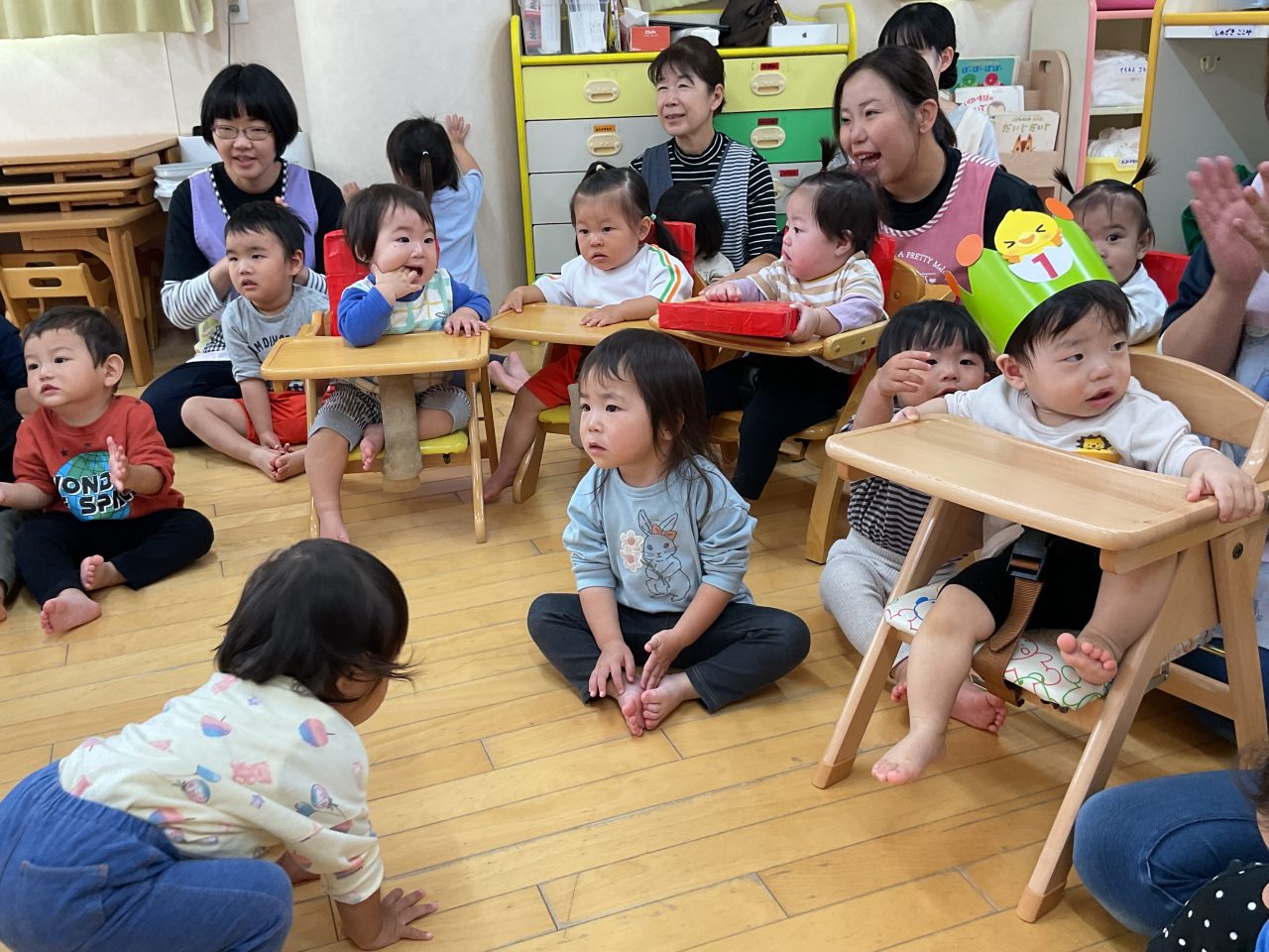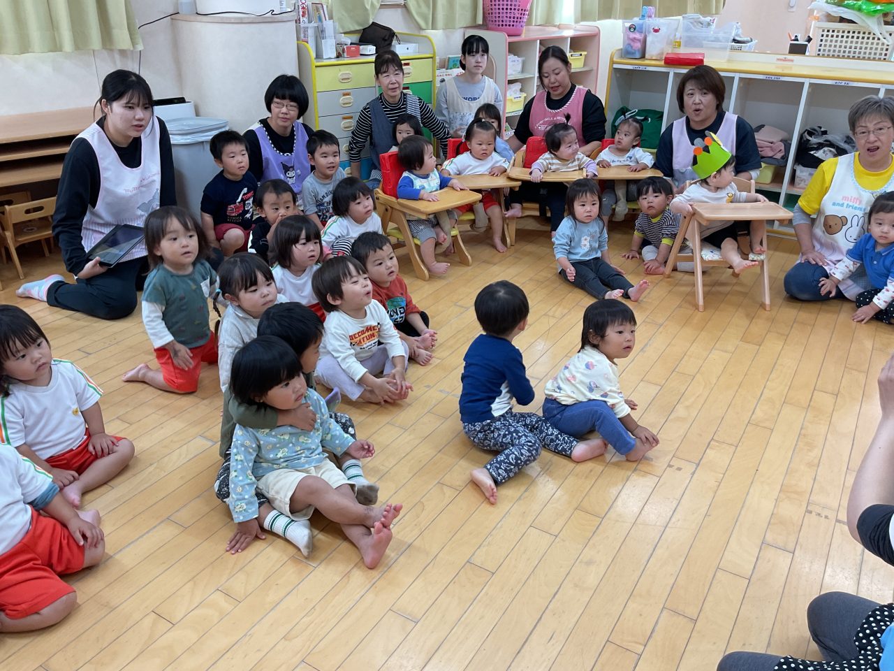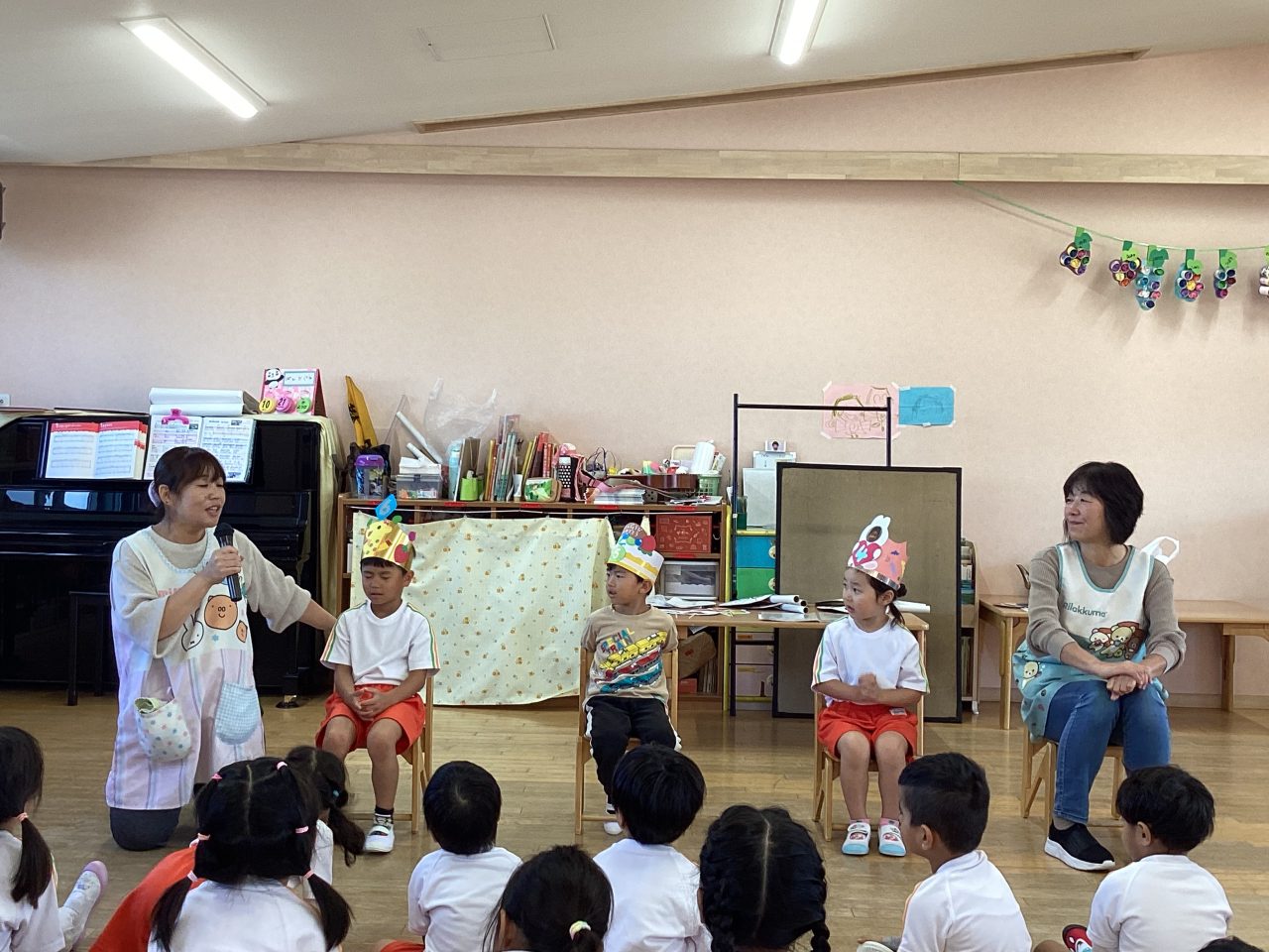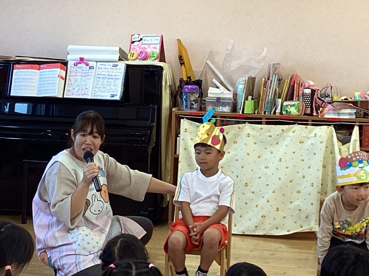 今日はお誕生会でした。運動会があったのでいつもより遅めのお誕生会です。