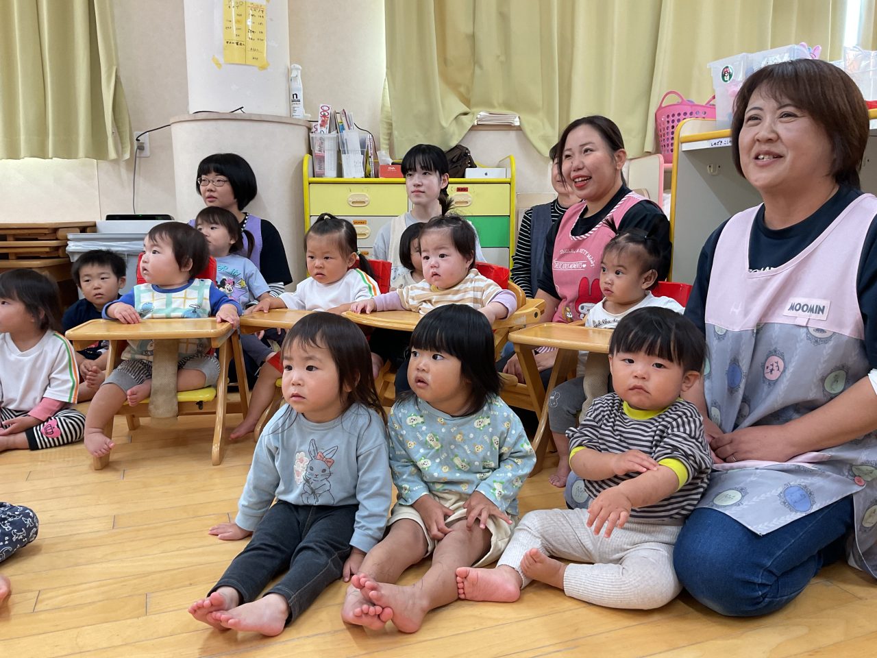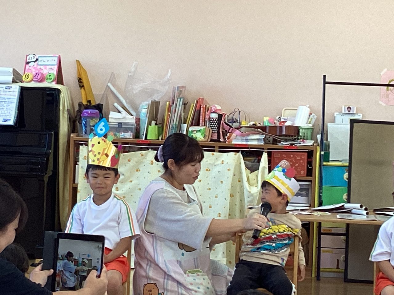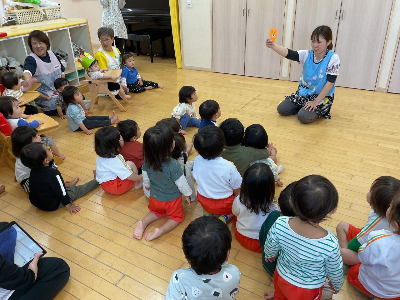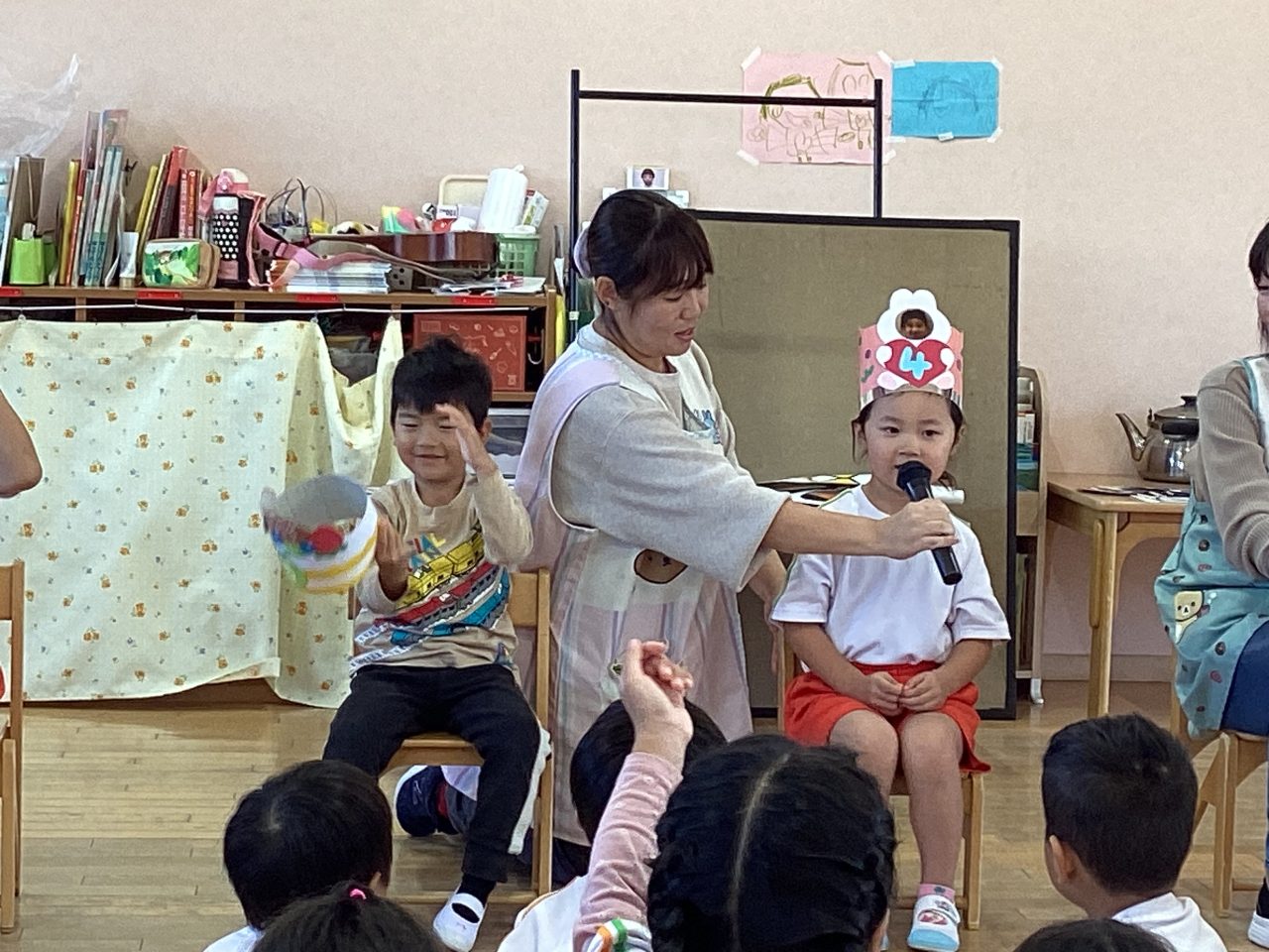 今日はお誕生会でした。運動会があったのでいつもより遅めのお誕生会です。