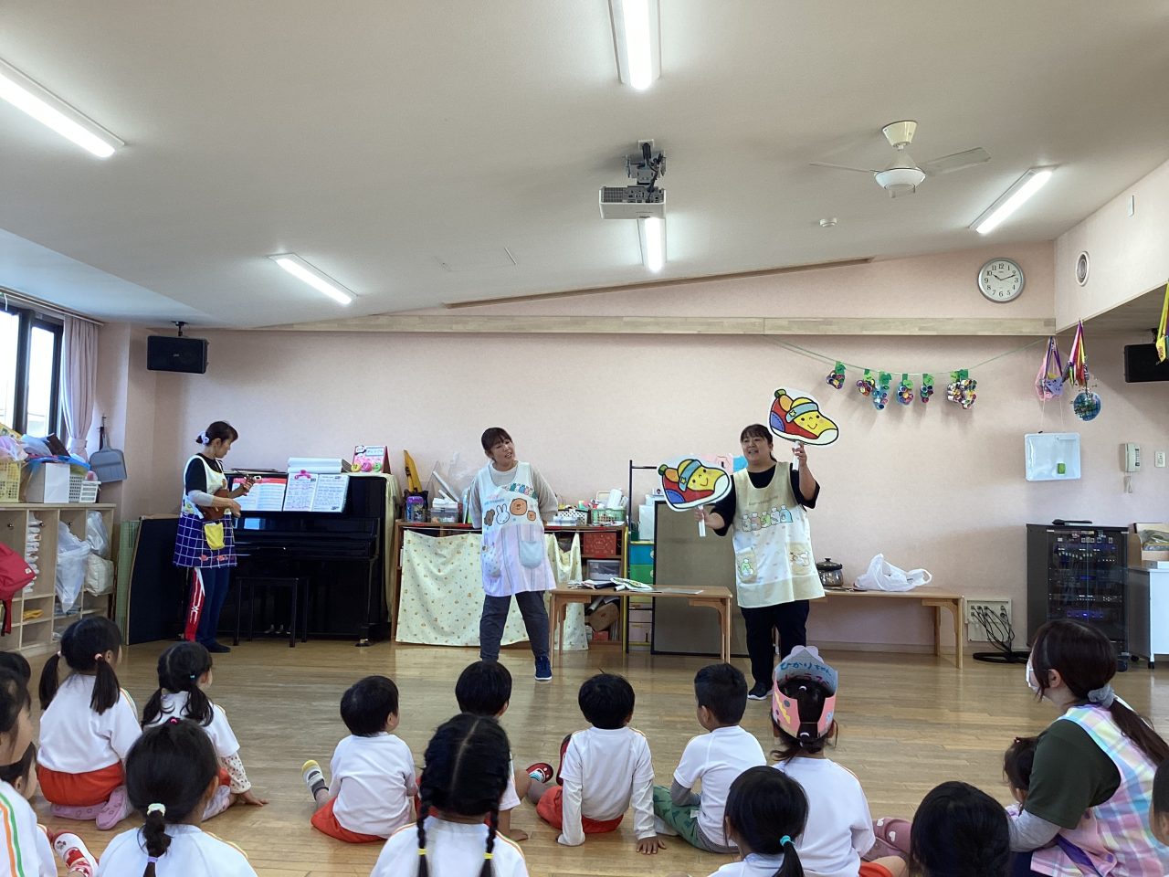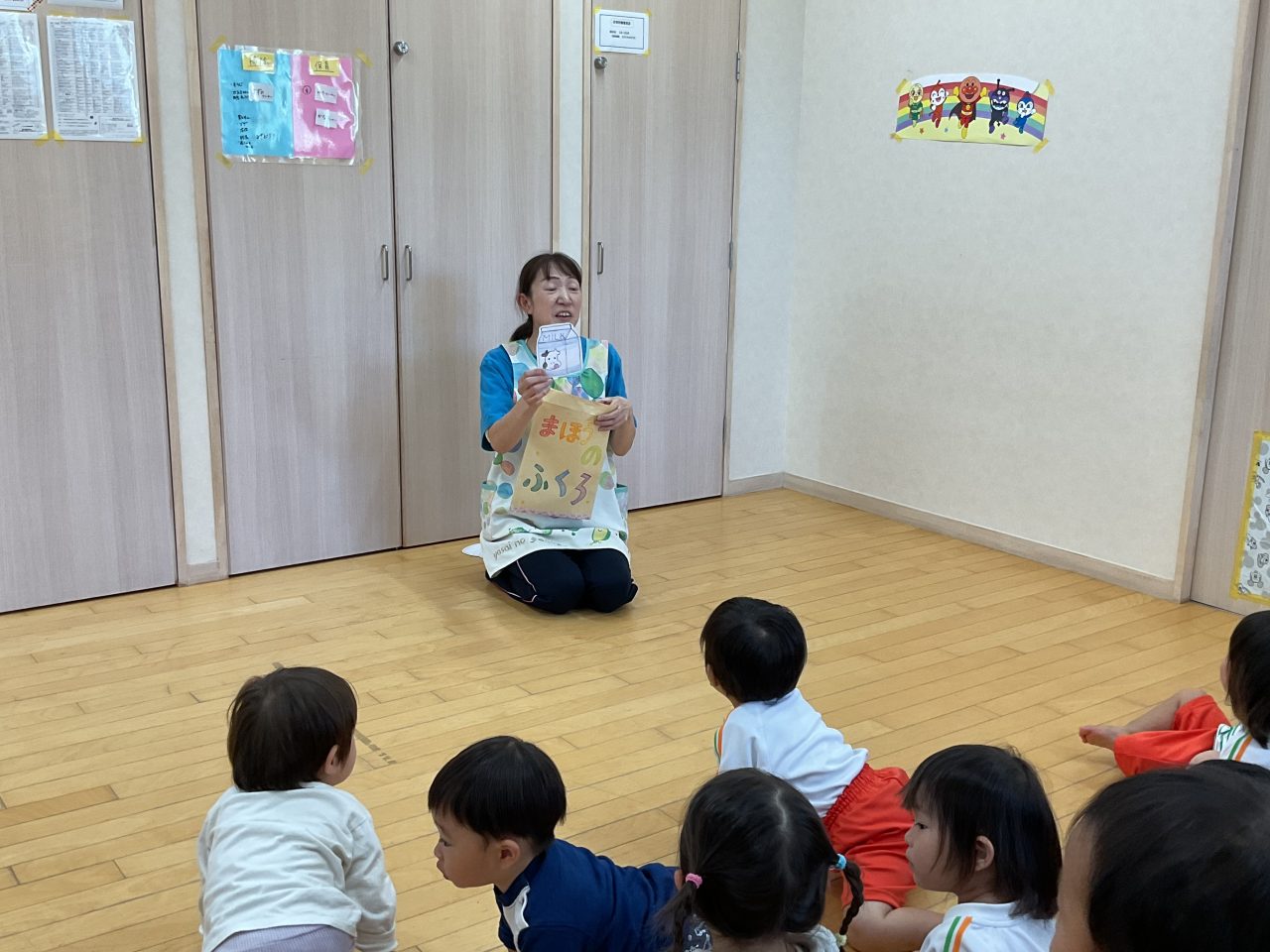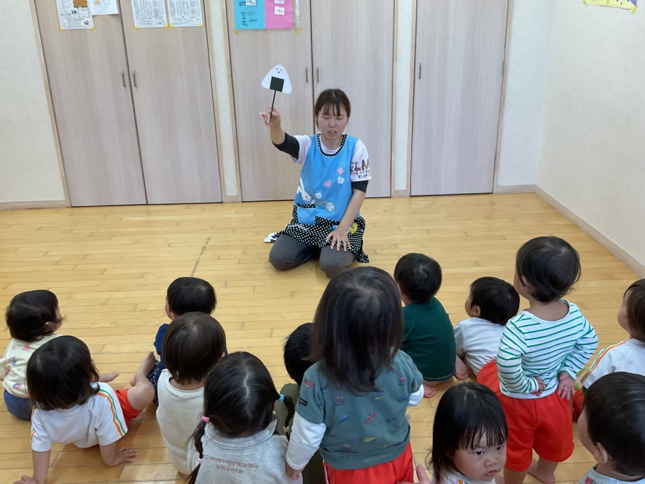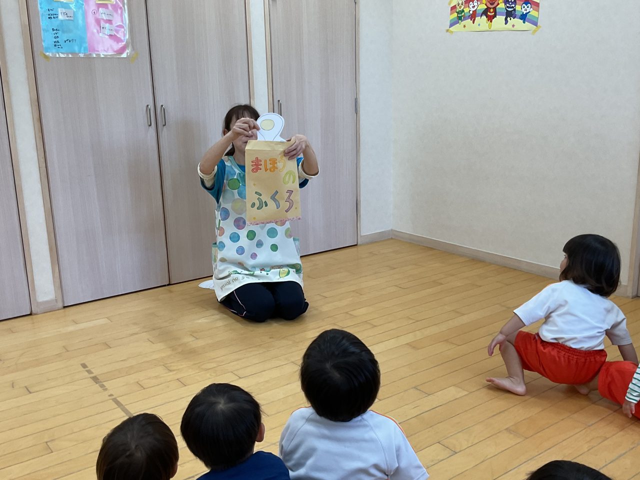 未満児のお楽しみは【ペープサート あいうえおにぎり】【ハロウィンクイズ】【袋シアター まほうのふくろ】
