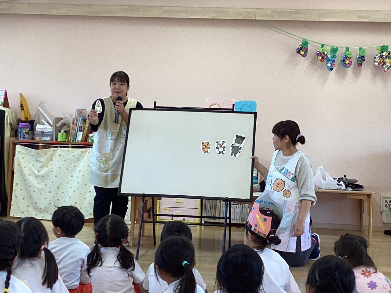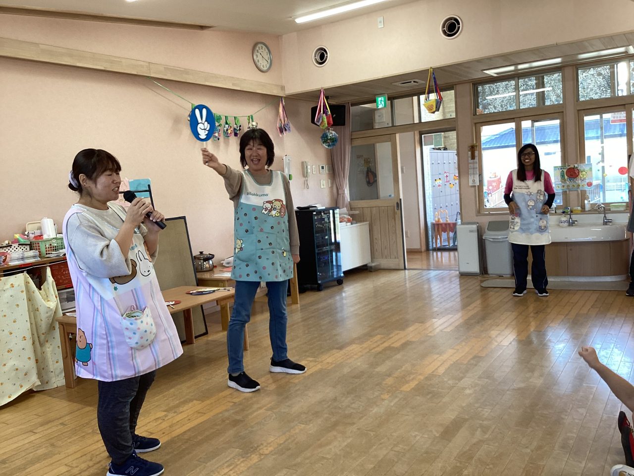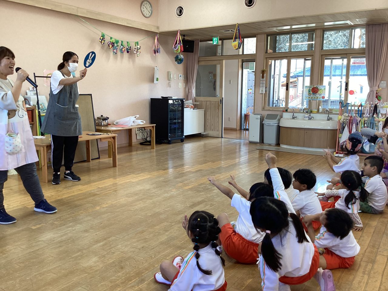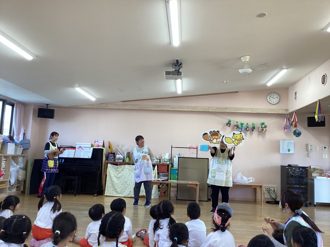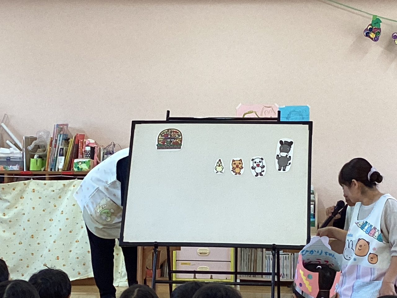 未満児のお楽しみは【ペープサート あいうえおにぎり】【ハロウィンクイズ】【袋シアター まほうのふくろ】
