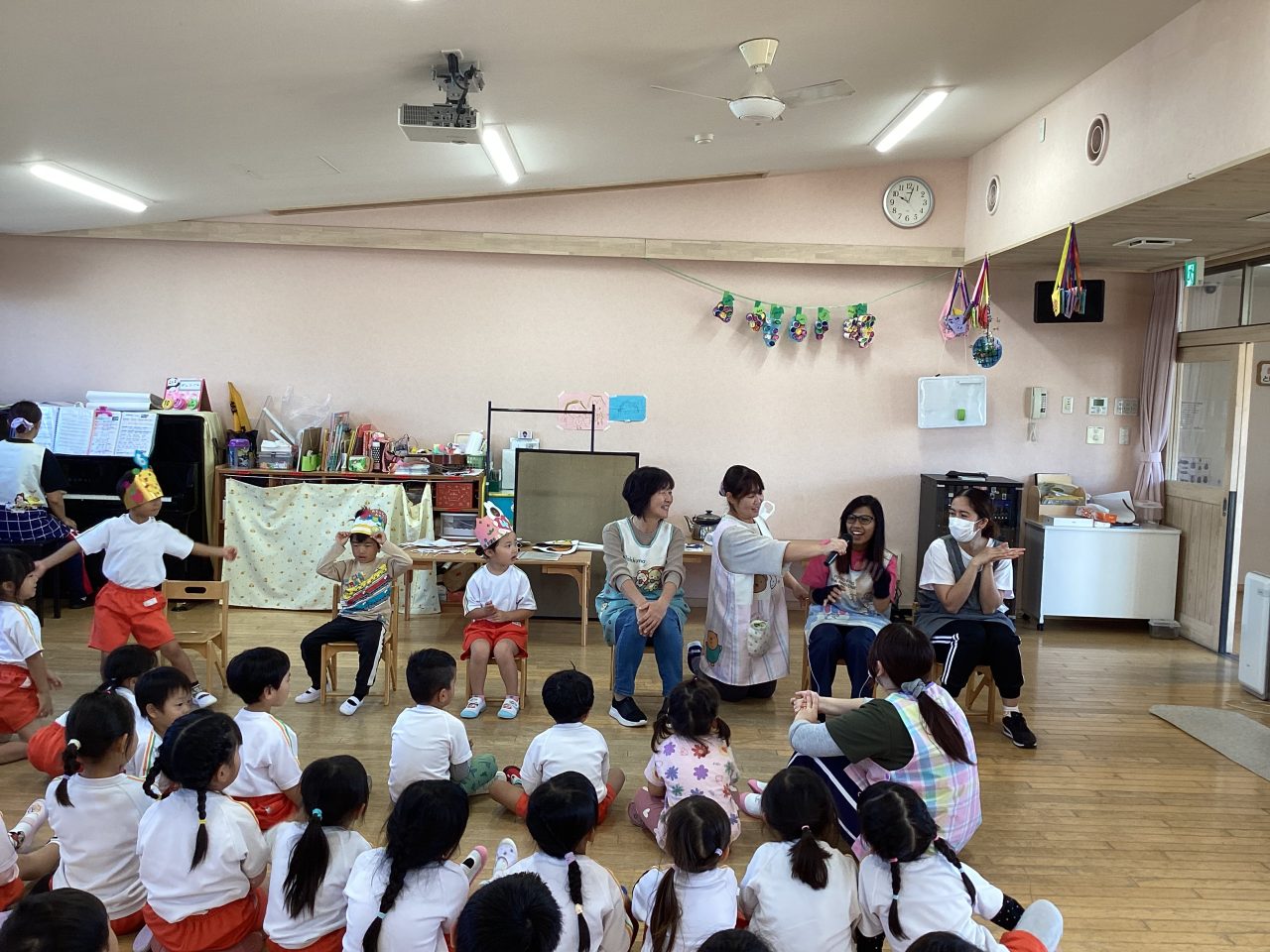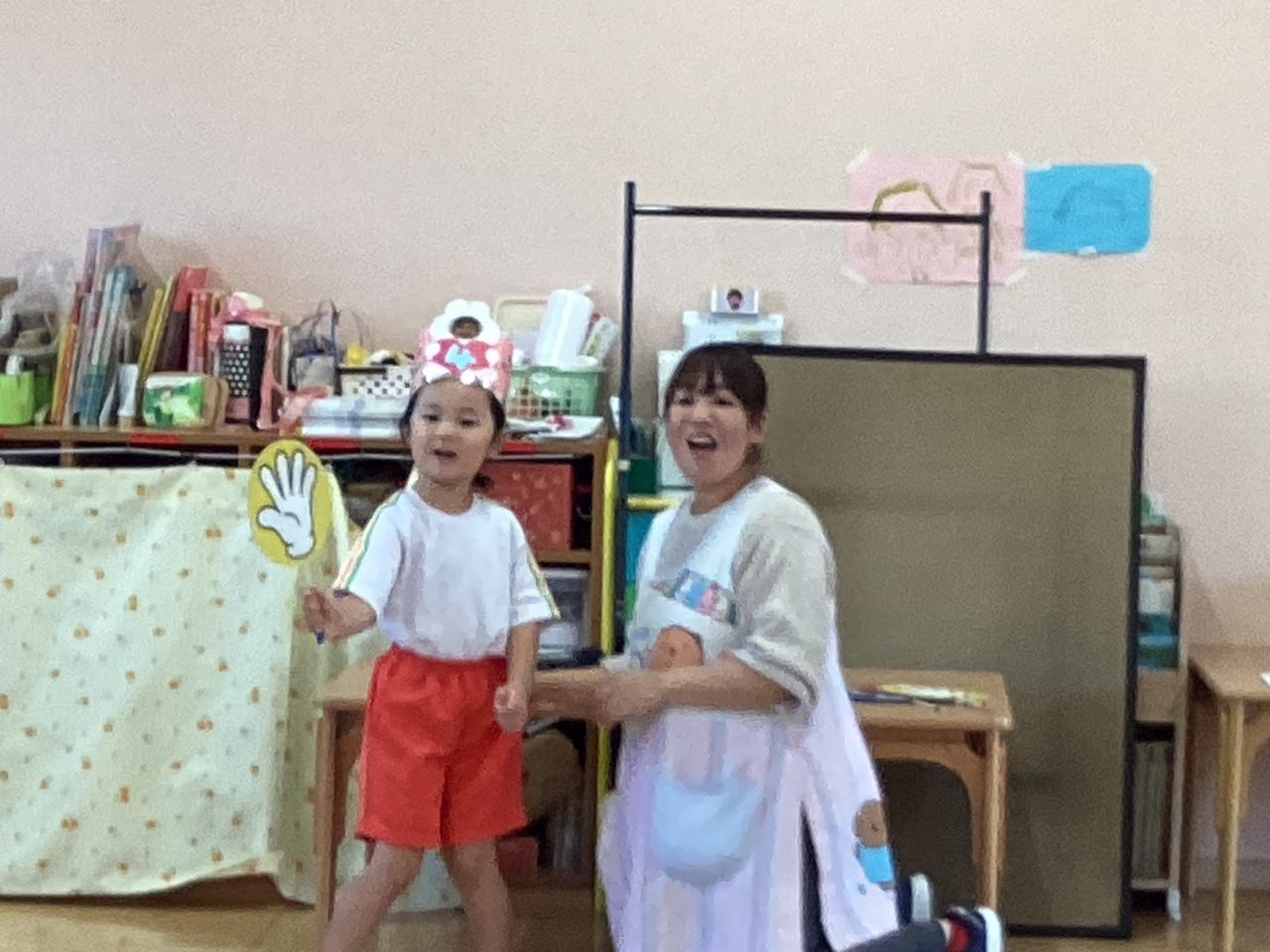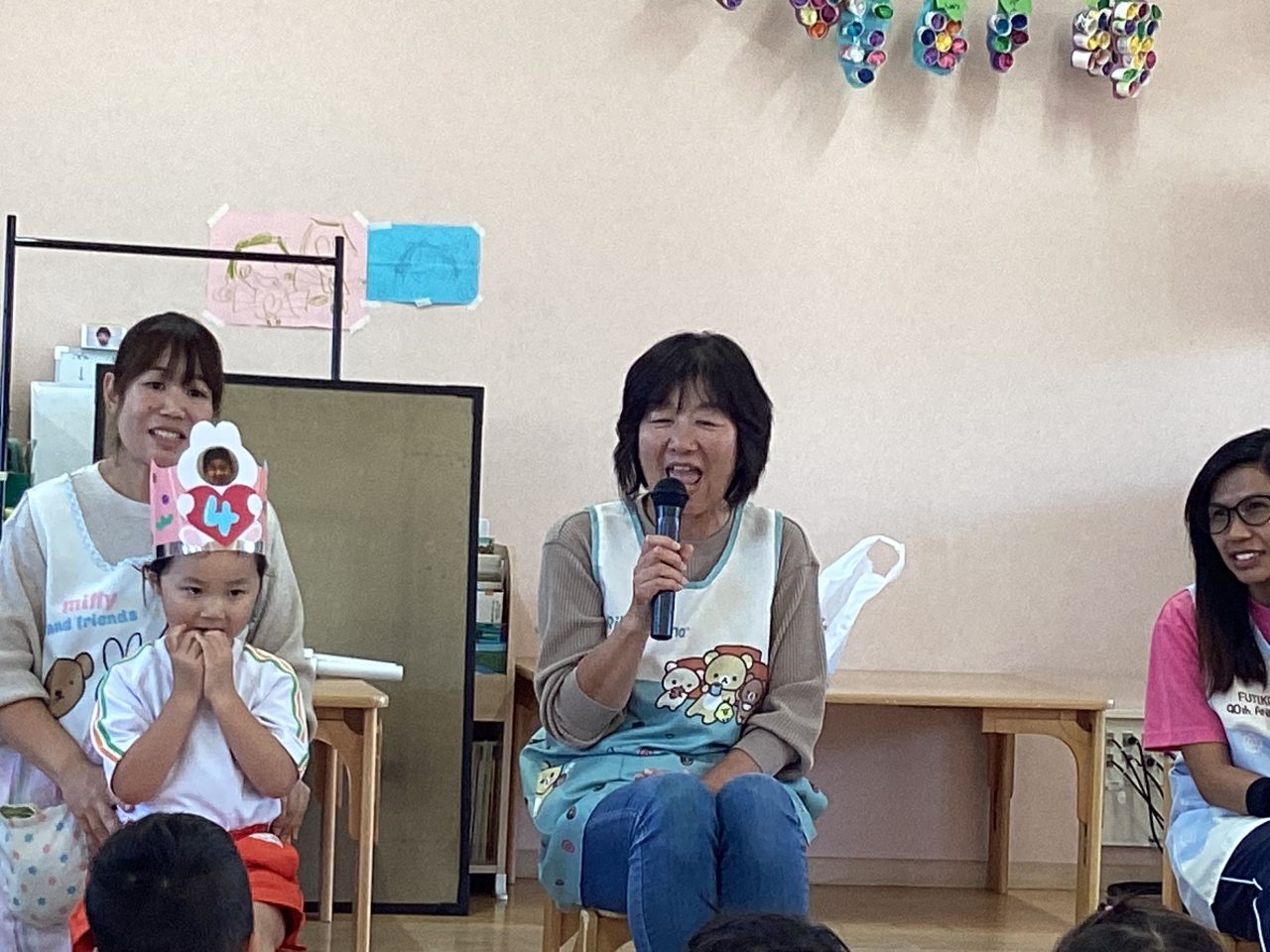 ふぁんぐりっしゅがあり、ラブリー先生とローズ先生は園で初めてのお誕生会でした。