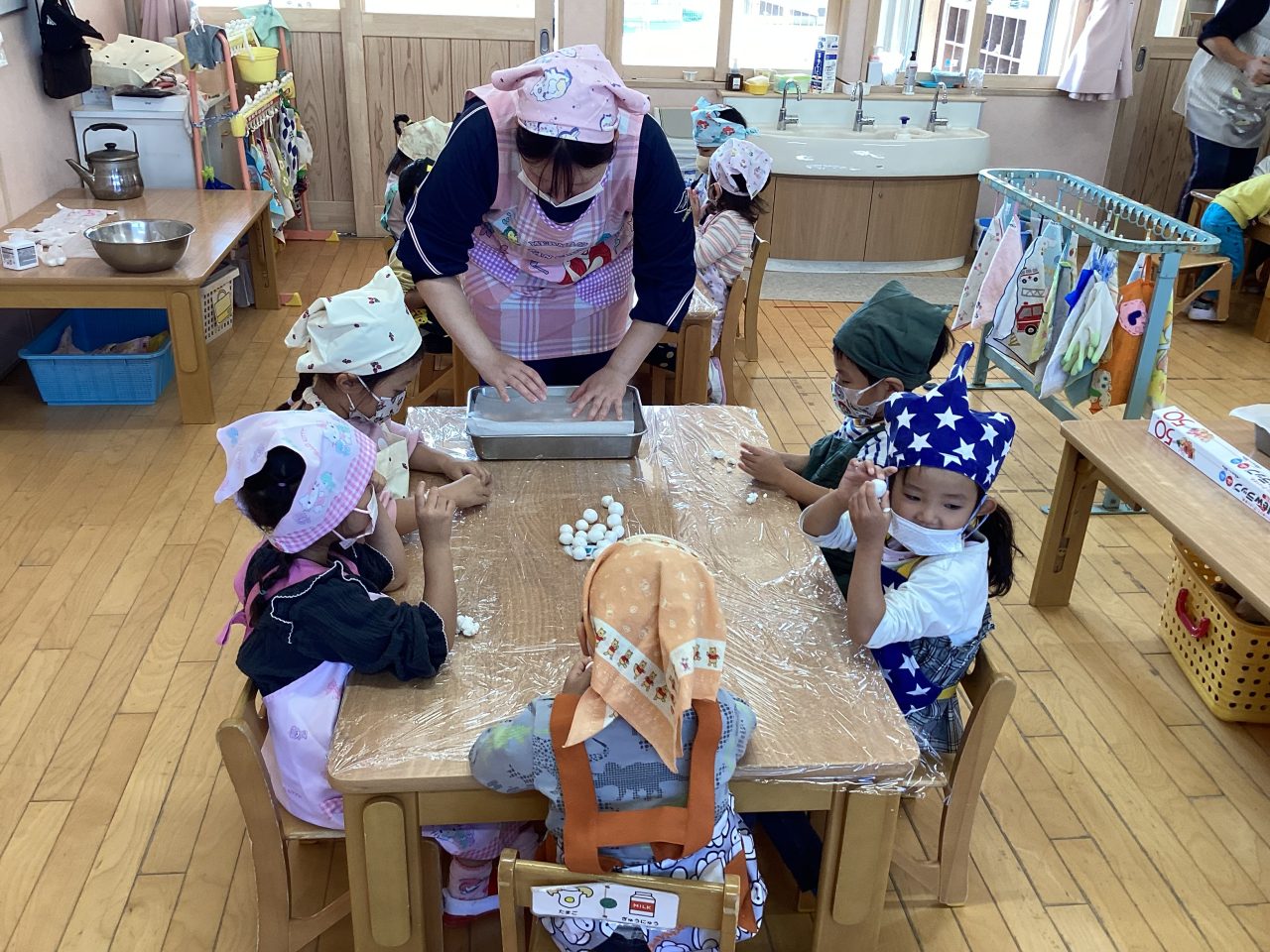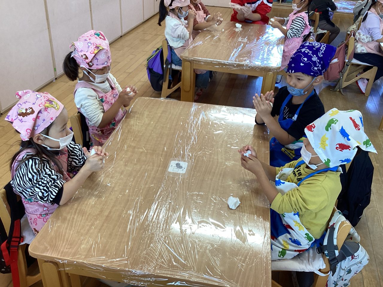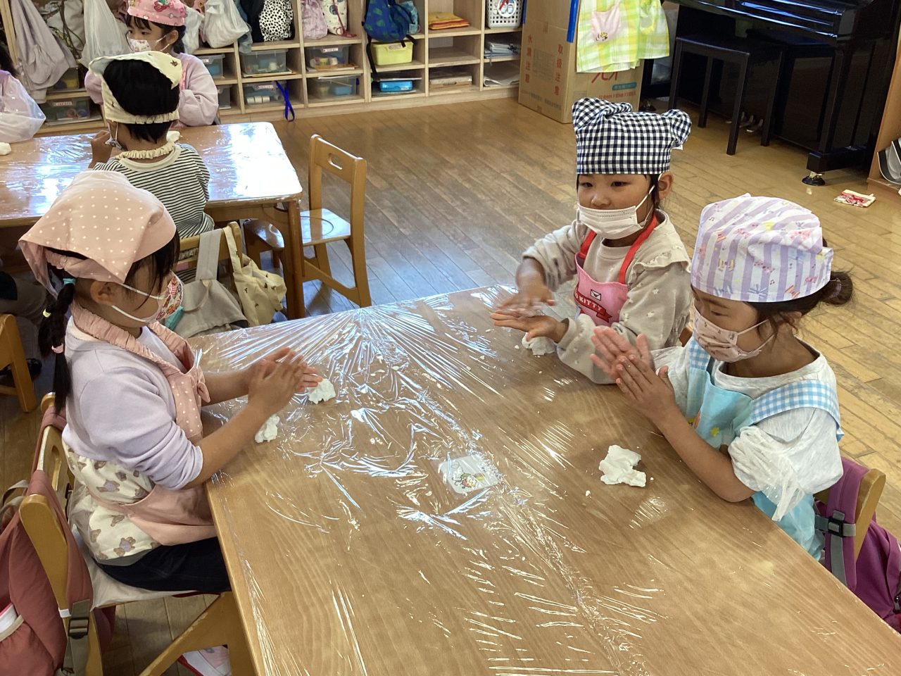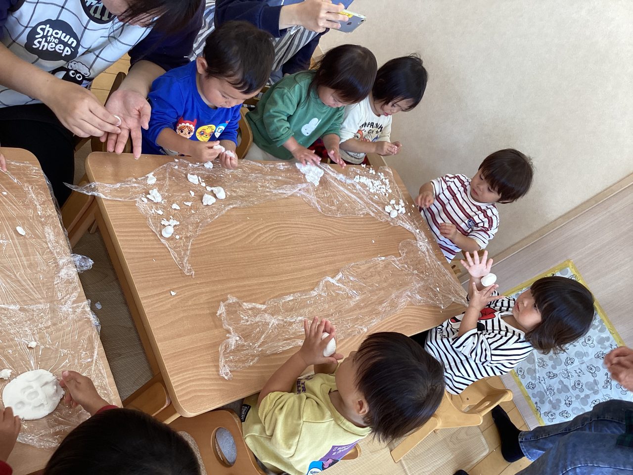 小さな手のひらで「まぁるくなあれ」とコロコロして、どのクラスも上手に出来ました。
