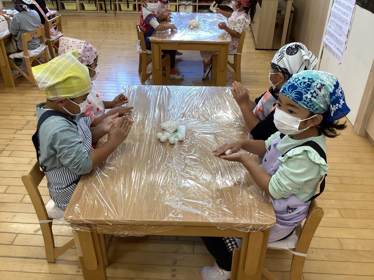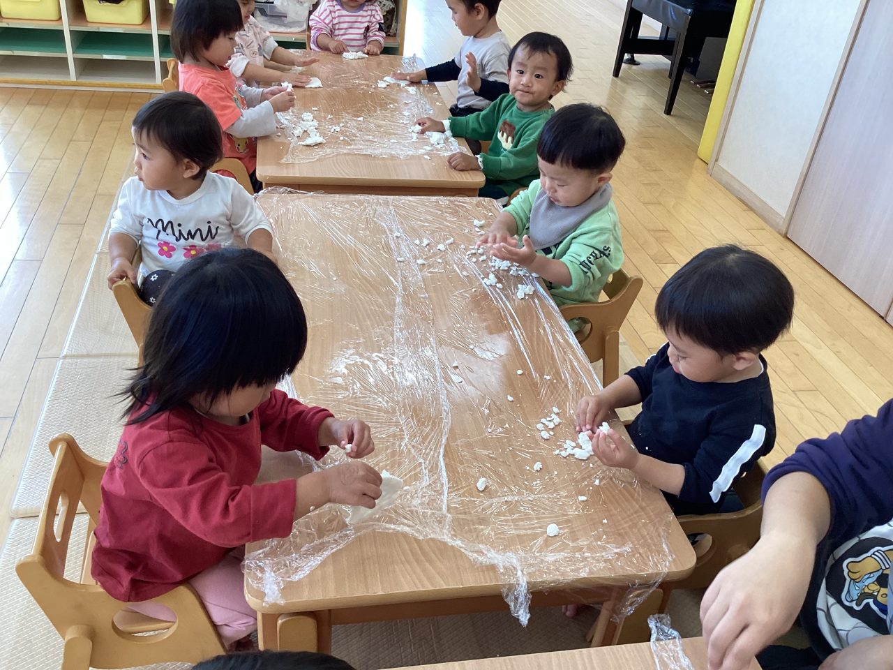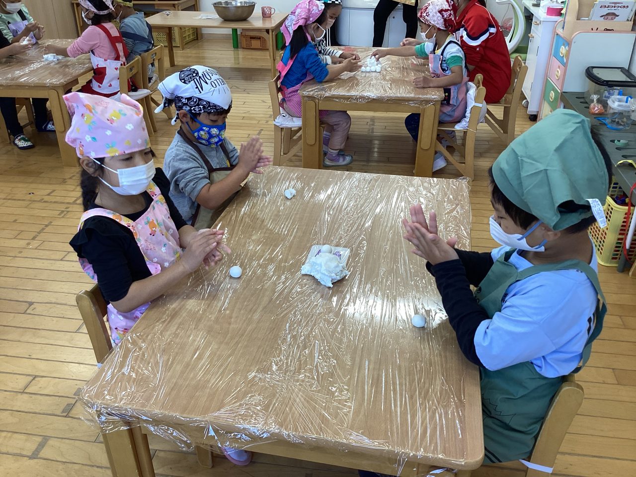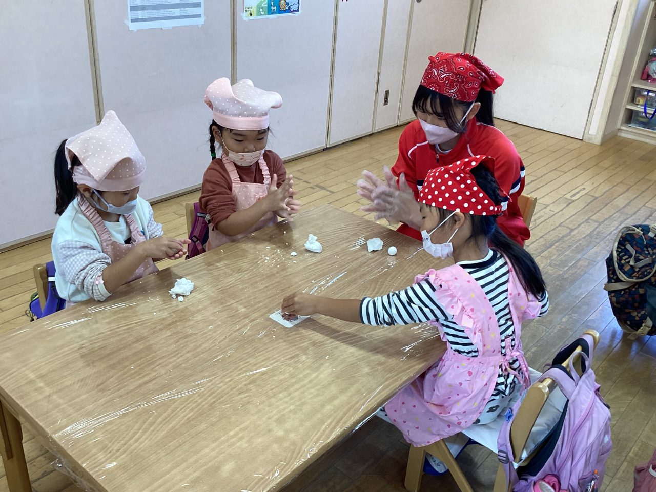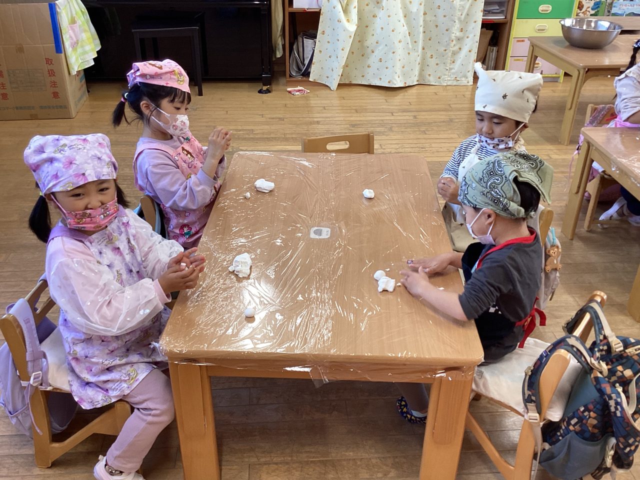 小さな手のひらで「まぁるくなあれ」とコロコロして、どのクラスも上手に出来ました。
