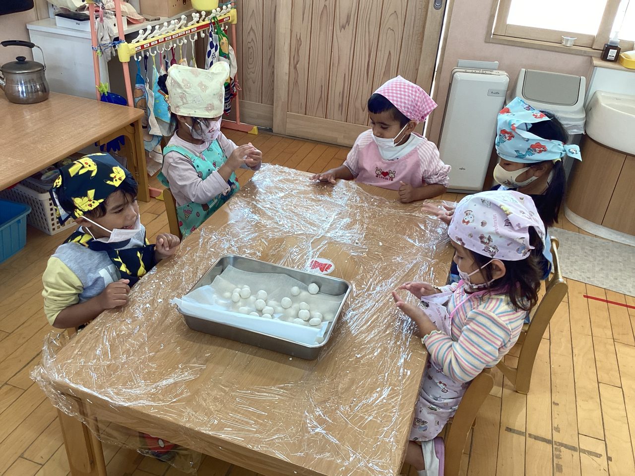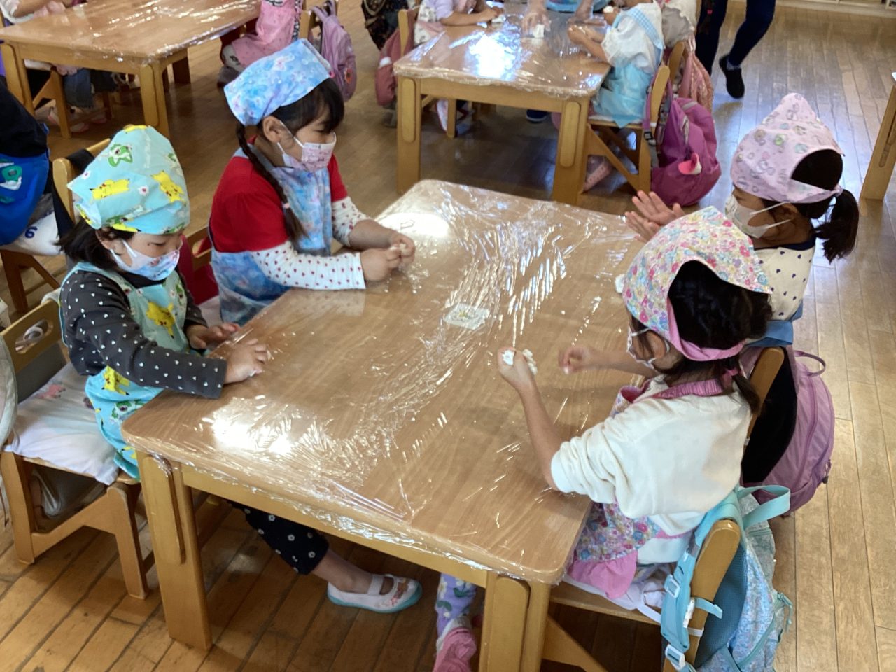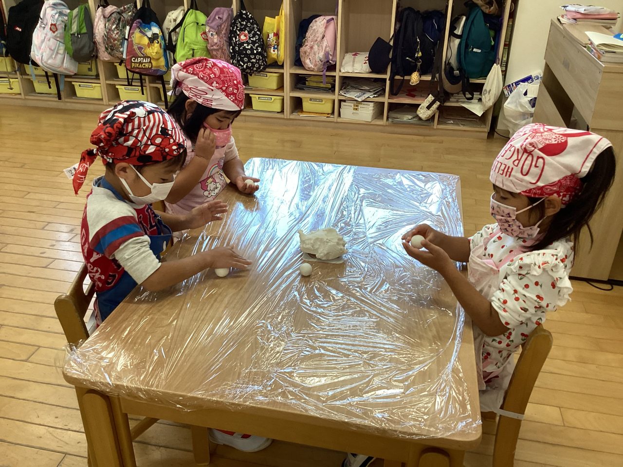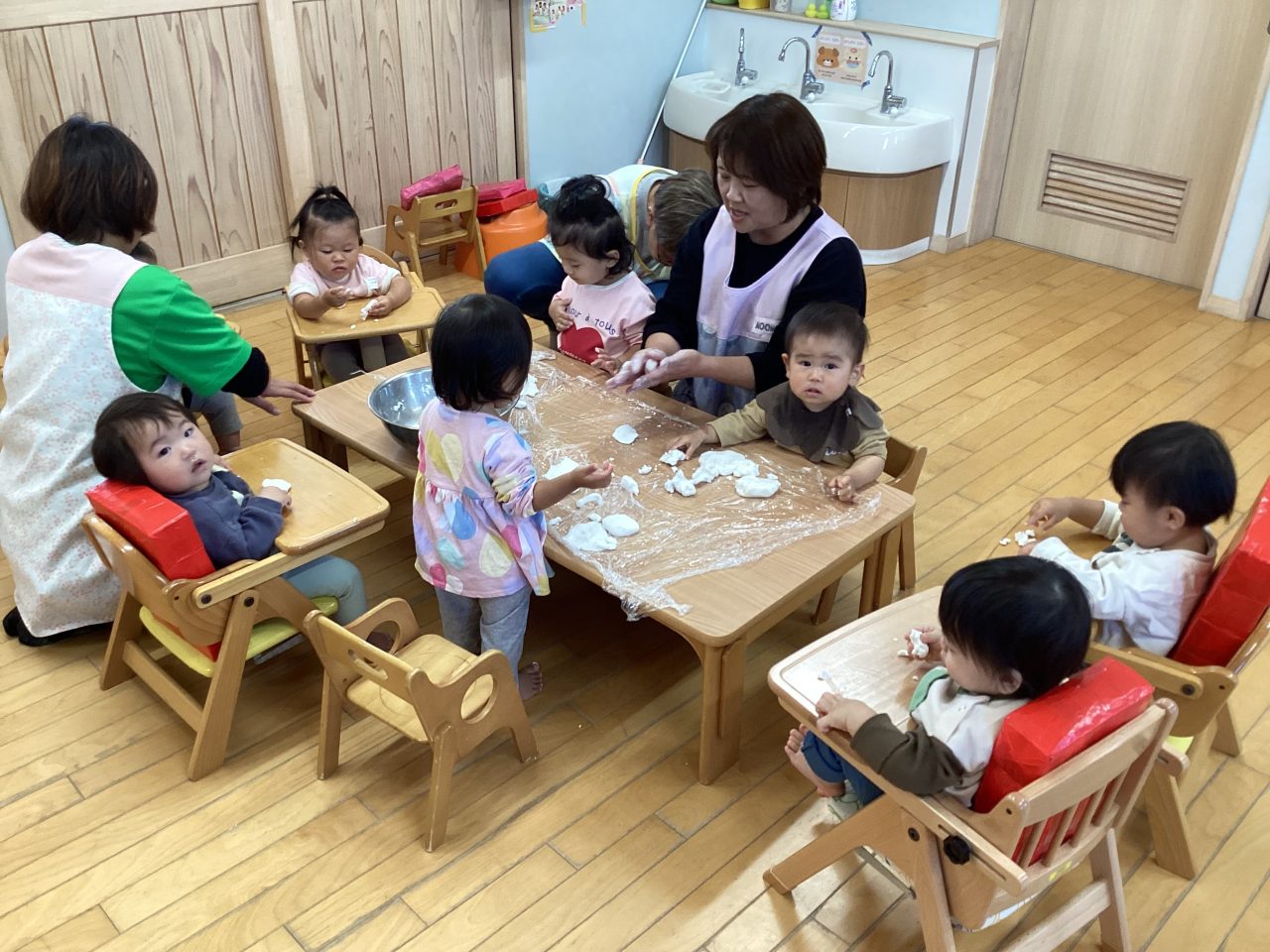 小さな手のひらで「まぁるくなあれ」とコロコロして、どのクラスも上手に出来ました。