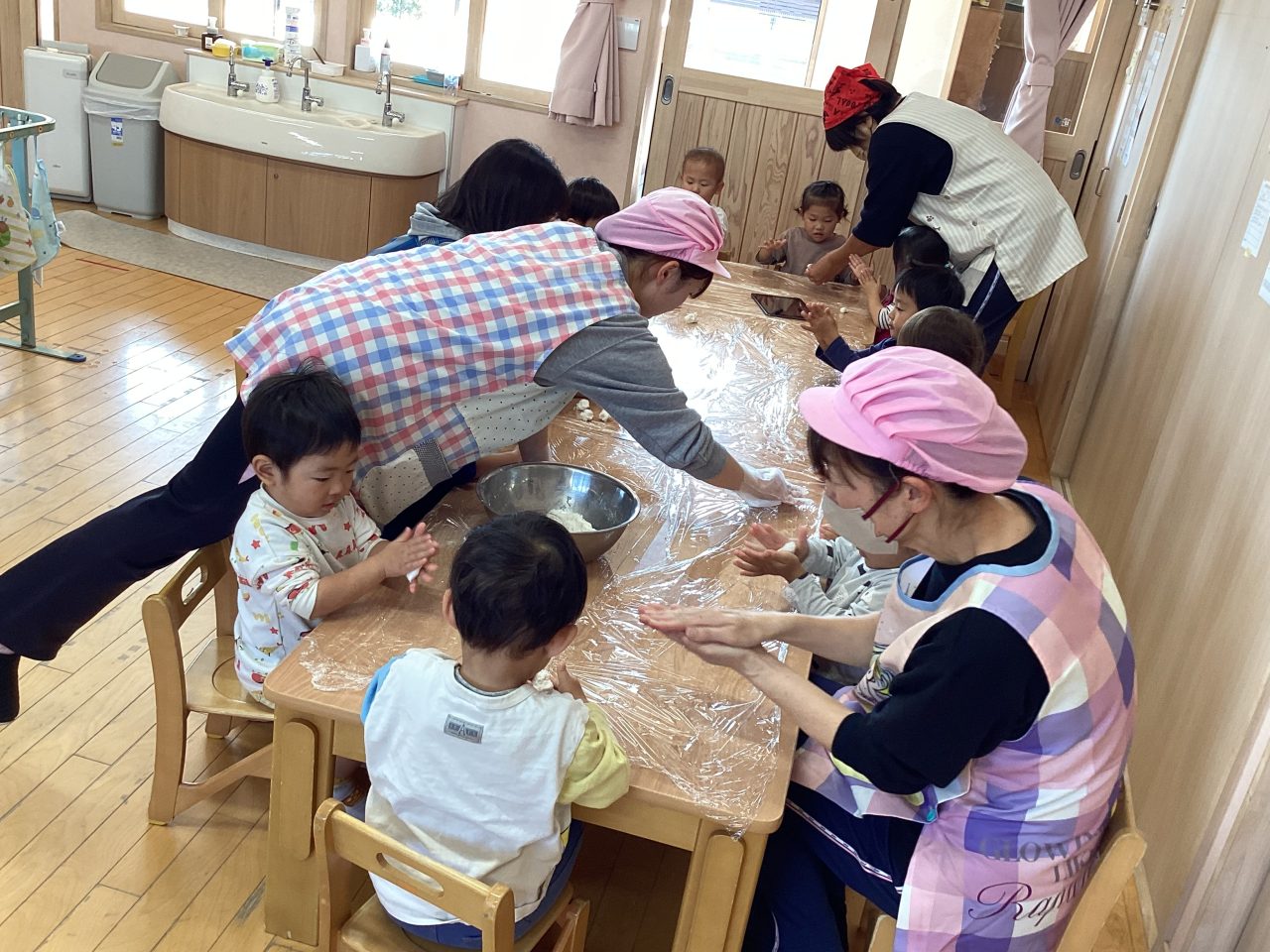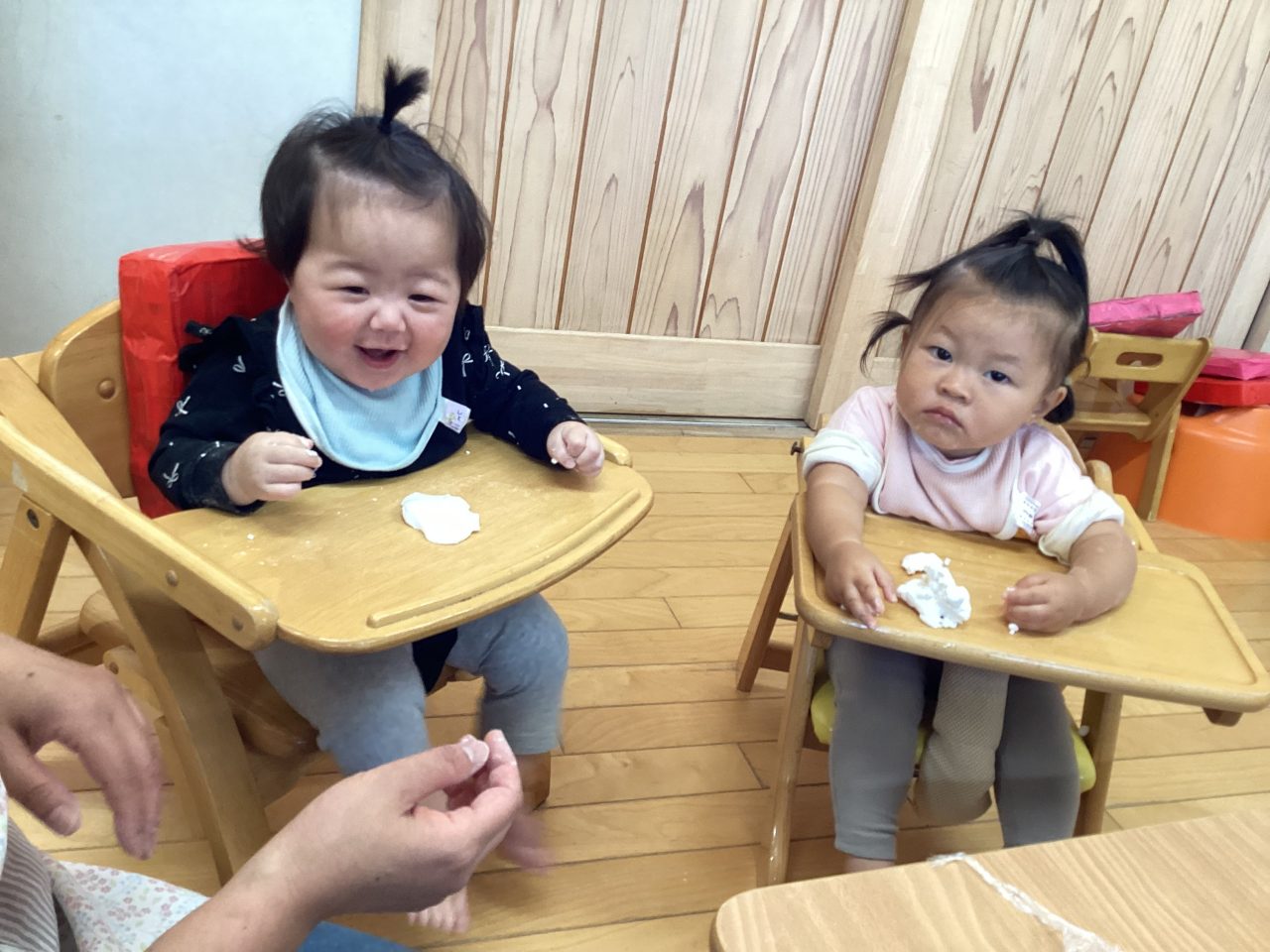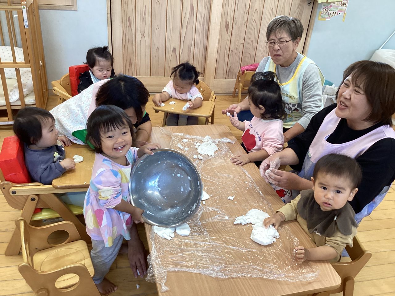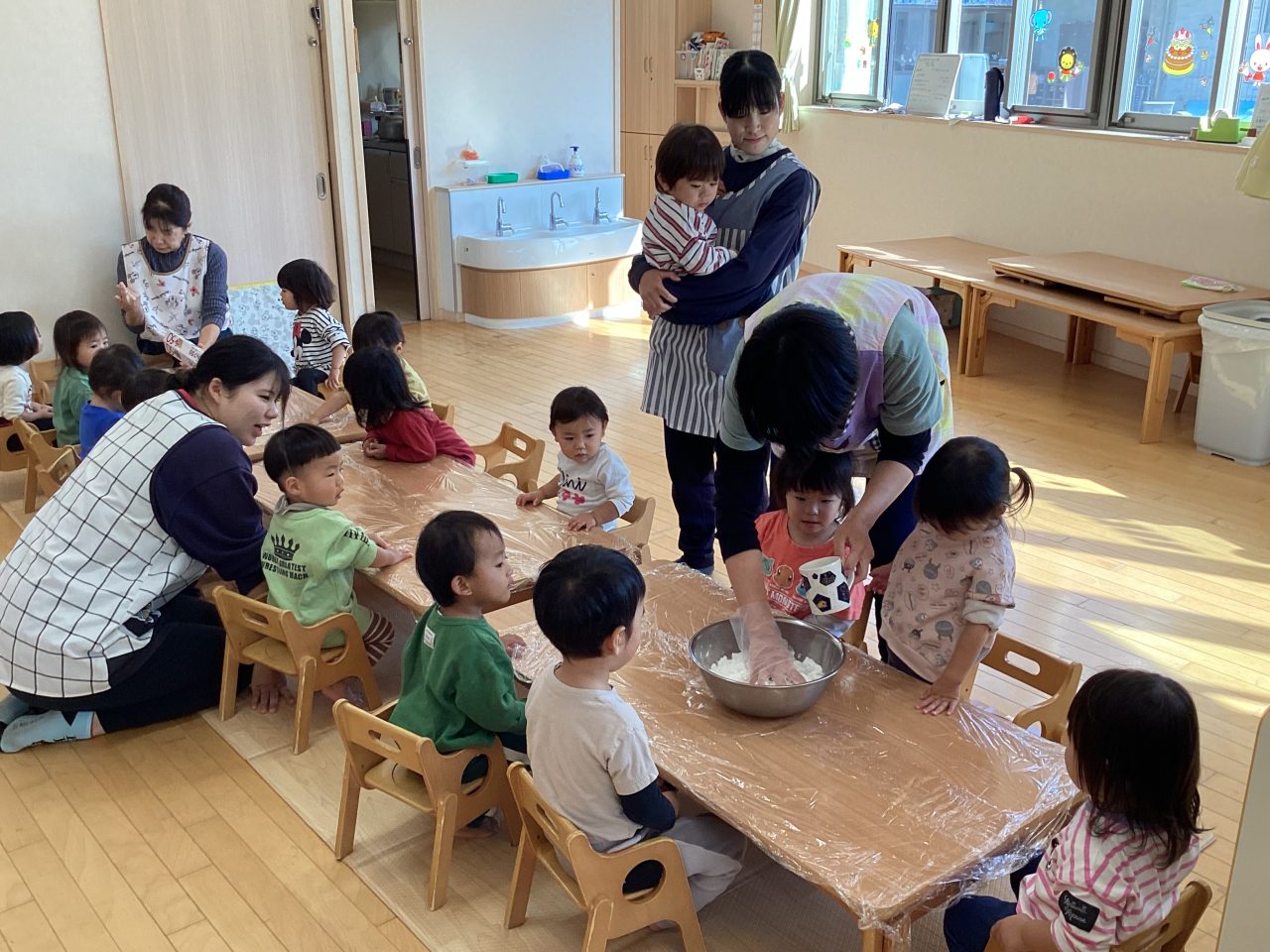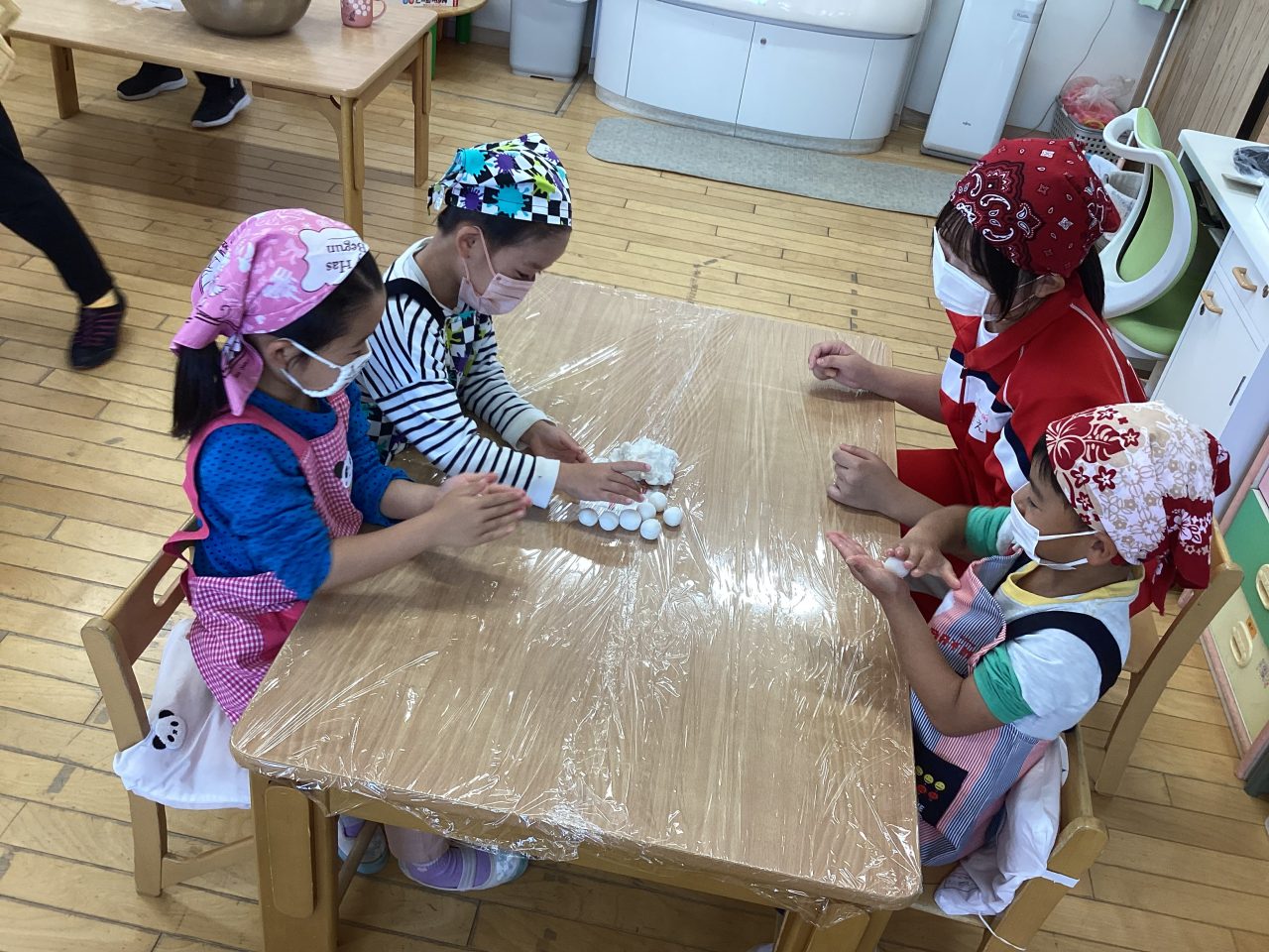 小さな手のひらで「まぁるくなあれ」とコロコロして、どのクラスも上手に出来ました。