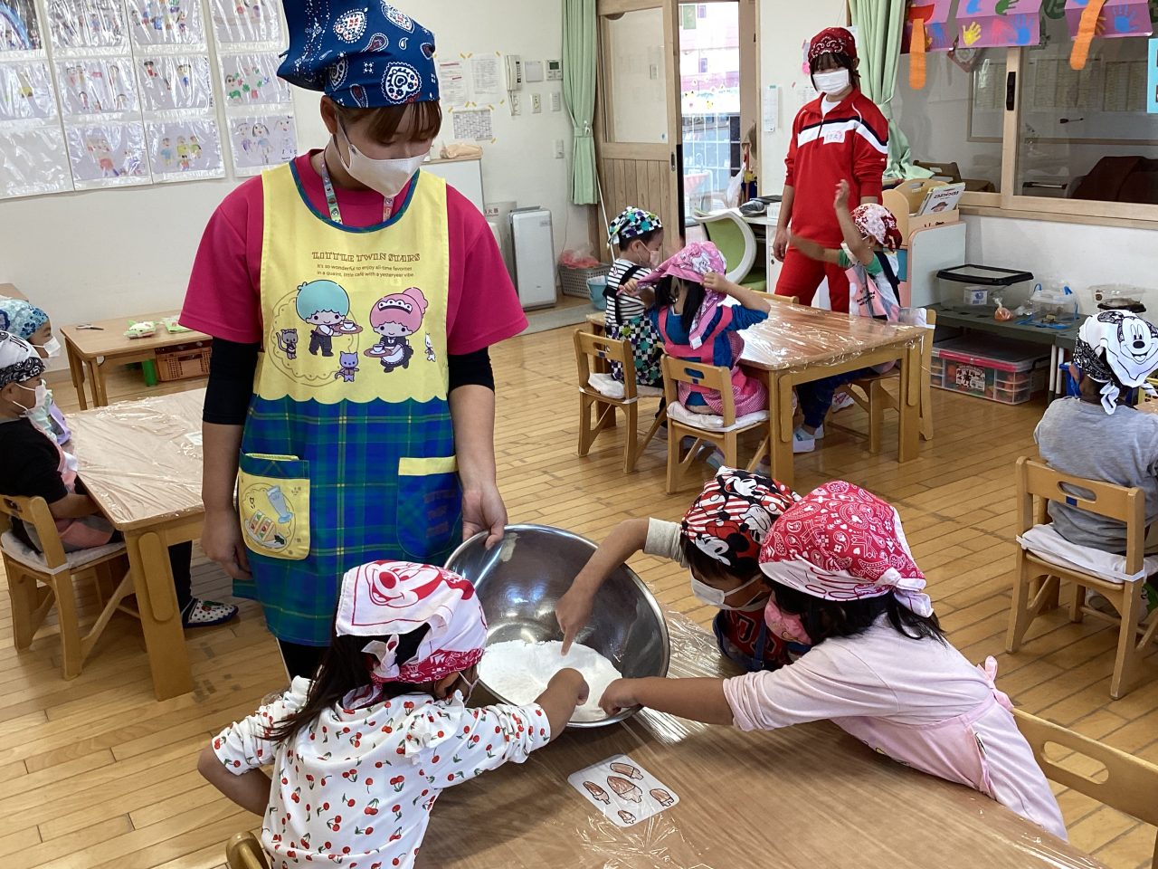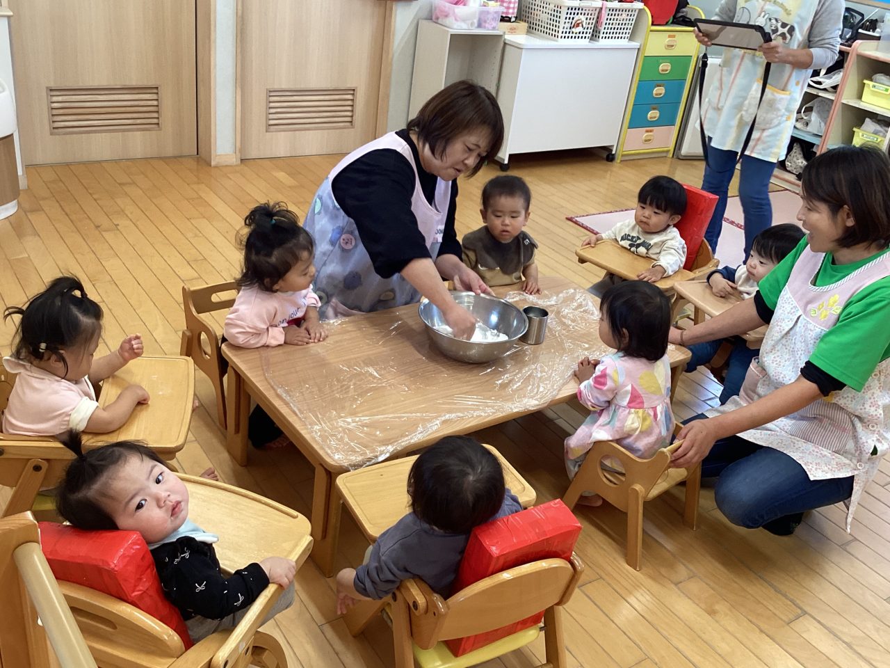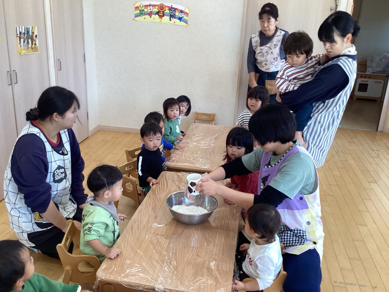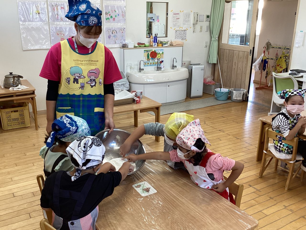 小さな手のひらで「まぁるくなあれ」とコロコロして、どのクラスも上手に出来ました。
