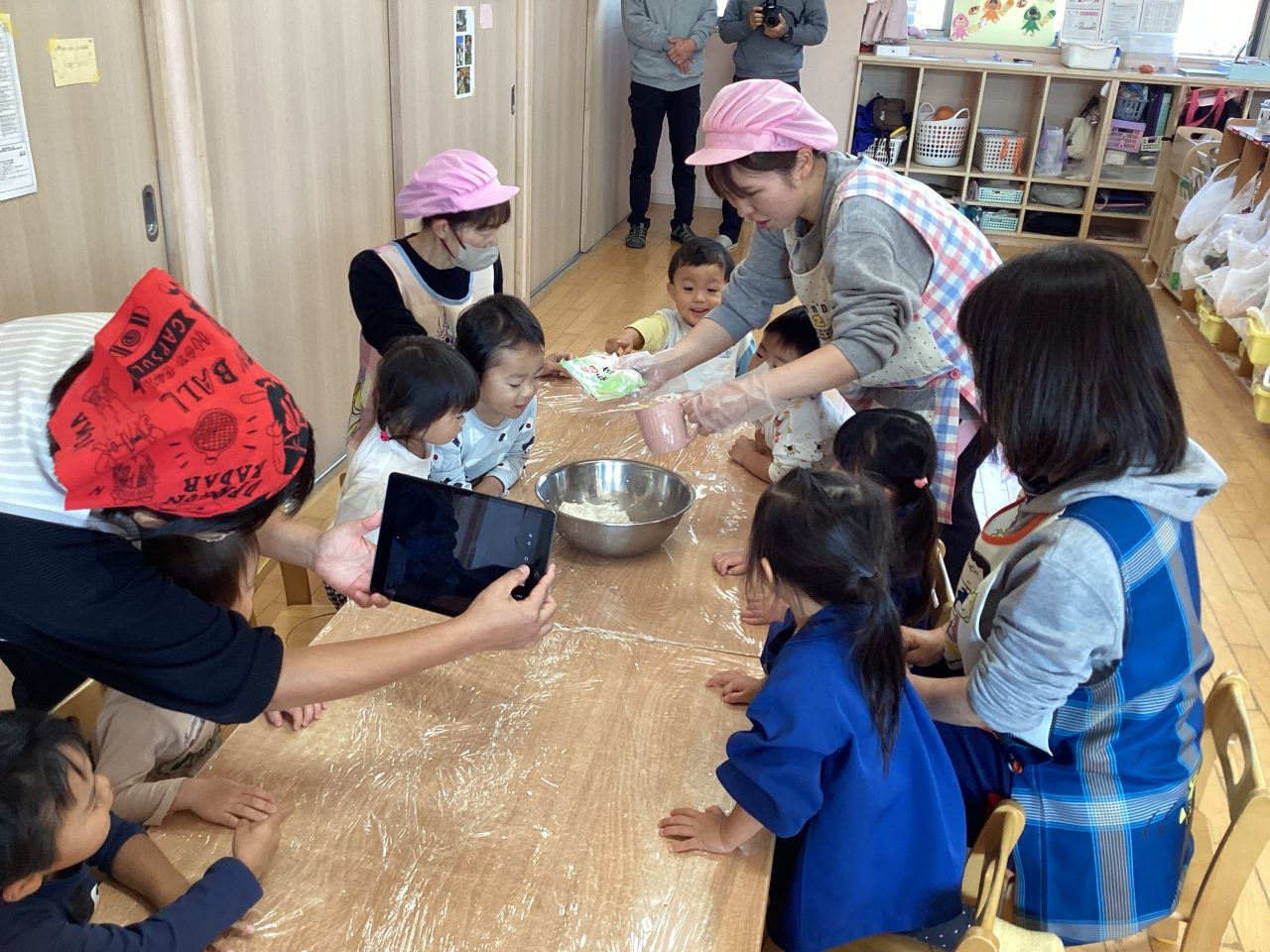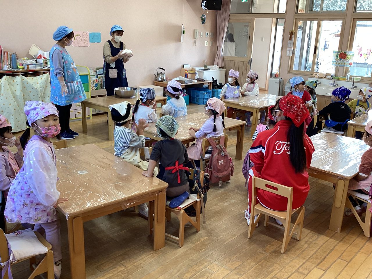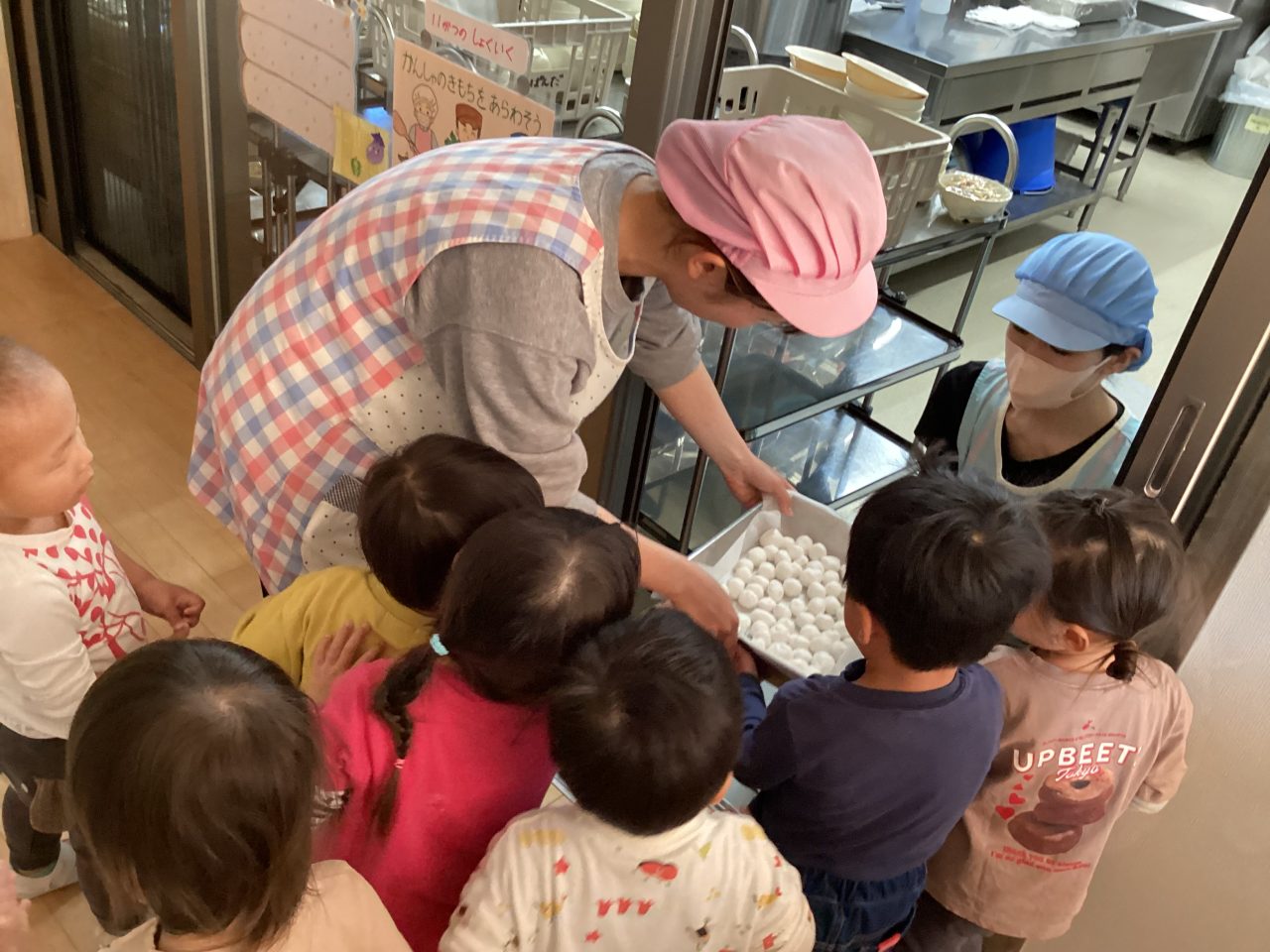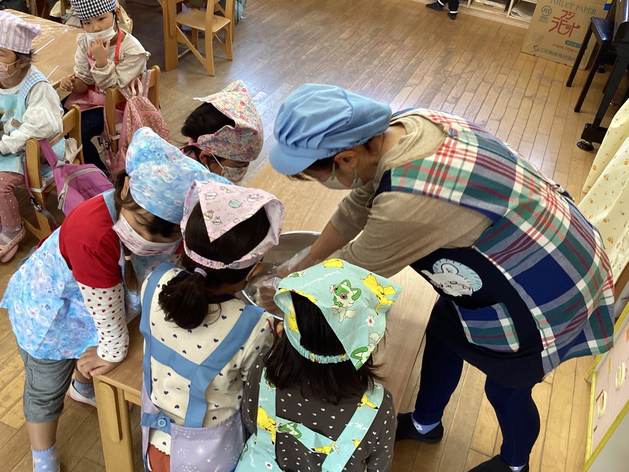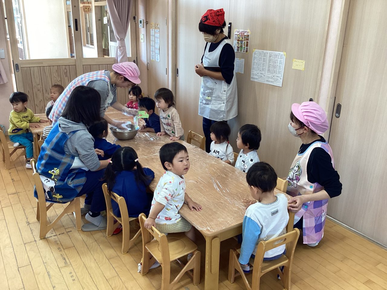 小さな手のひらで「まぁるくなあれ」とコロコロして、どのクラスも上手に出来ました。