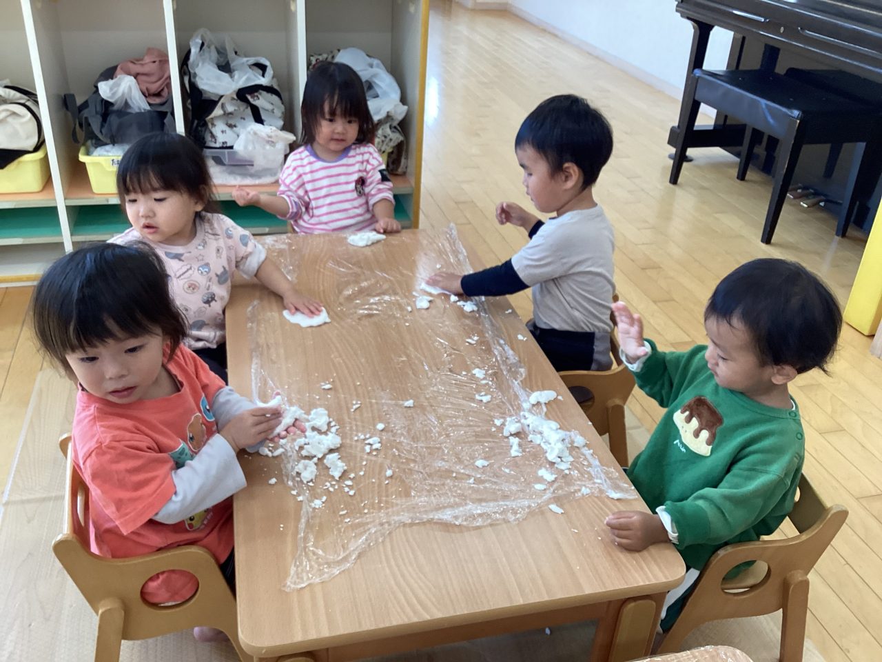 こねていくと一つにまとまっていく様子がとても子どもたちは不思議なようです。