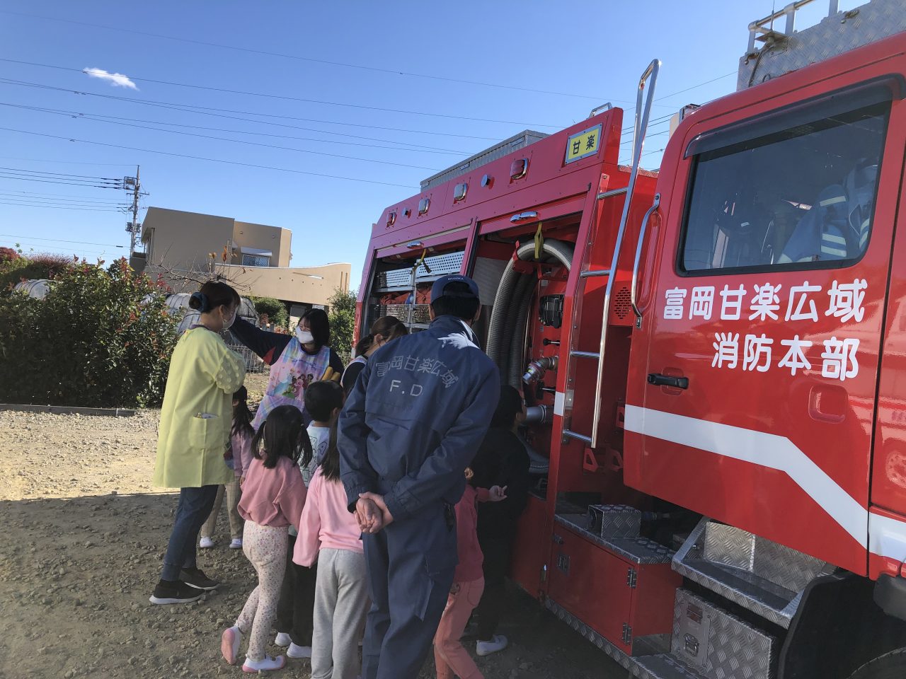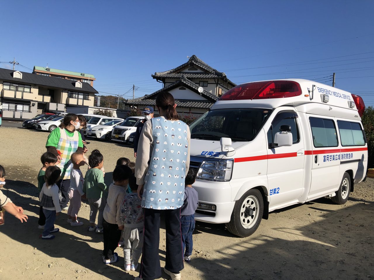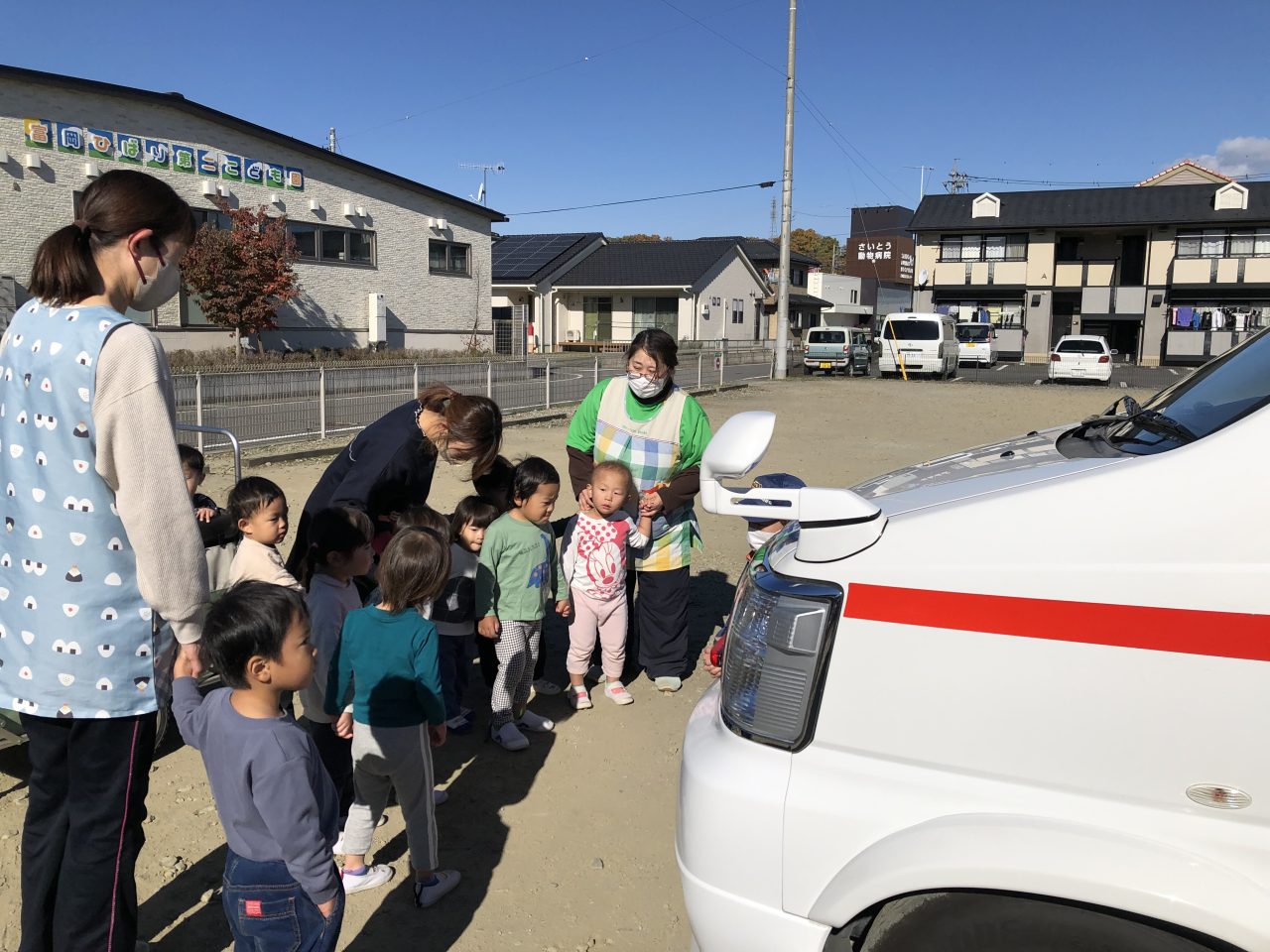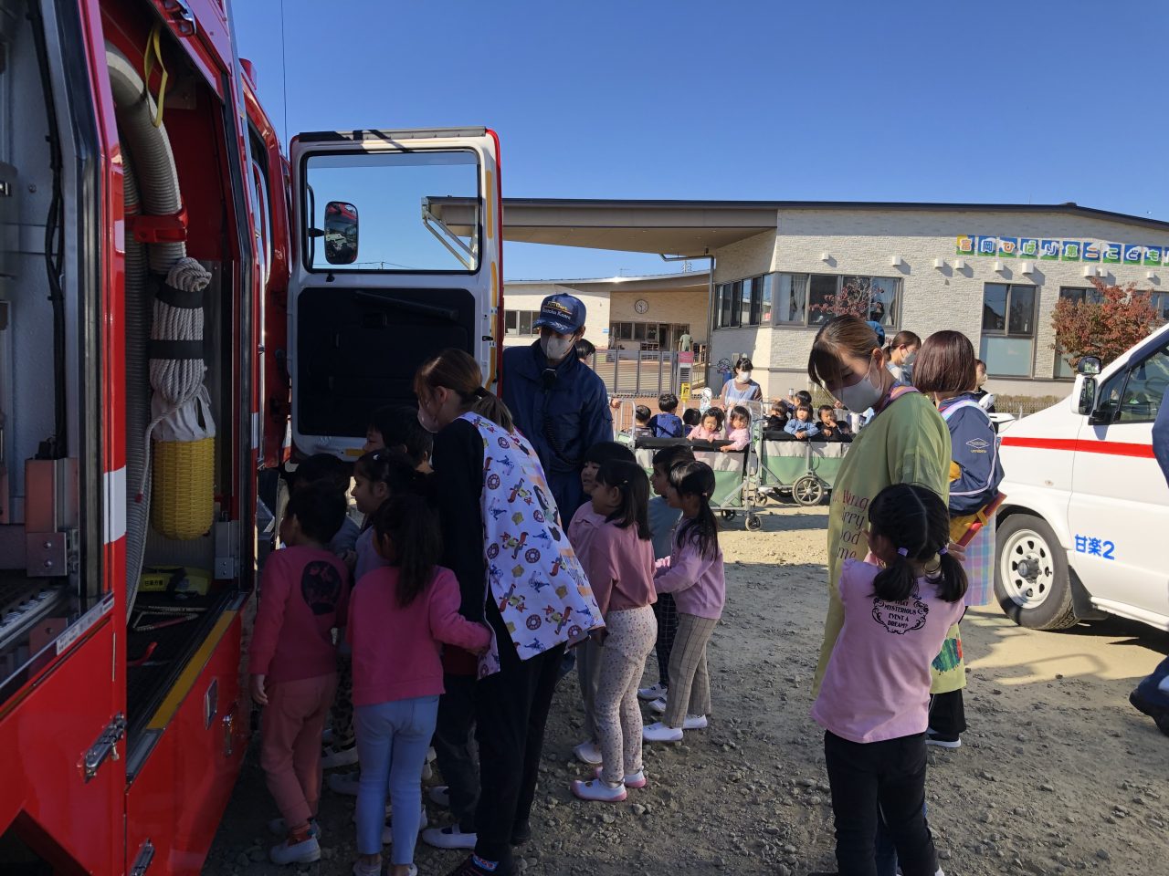その後、消防車と救急車の見学をさせてもらい、とても喜んでいた子どもたちです。