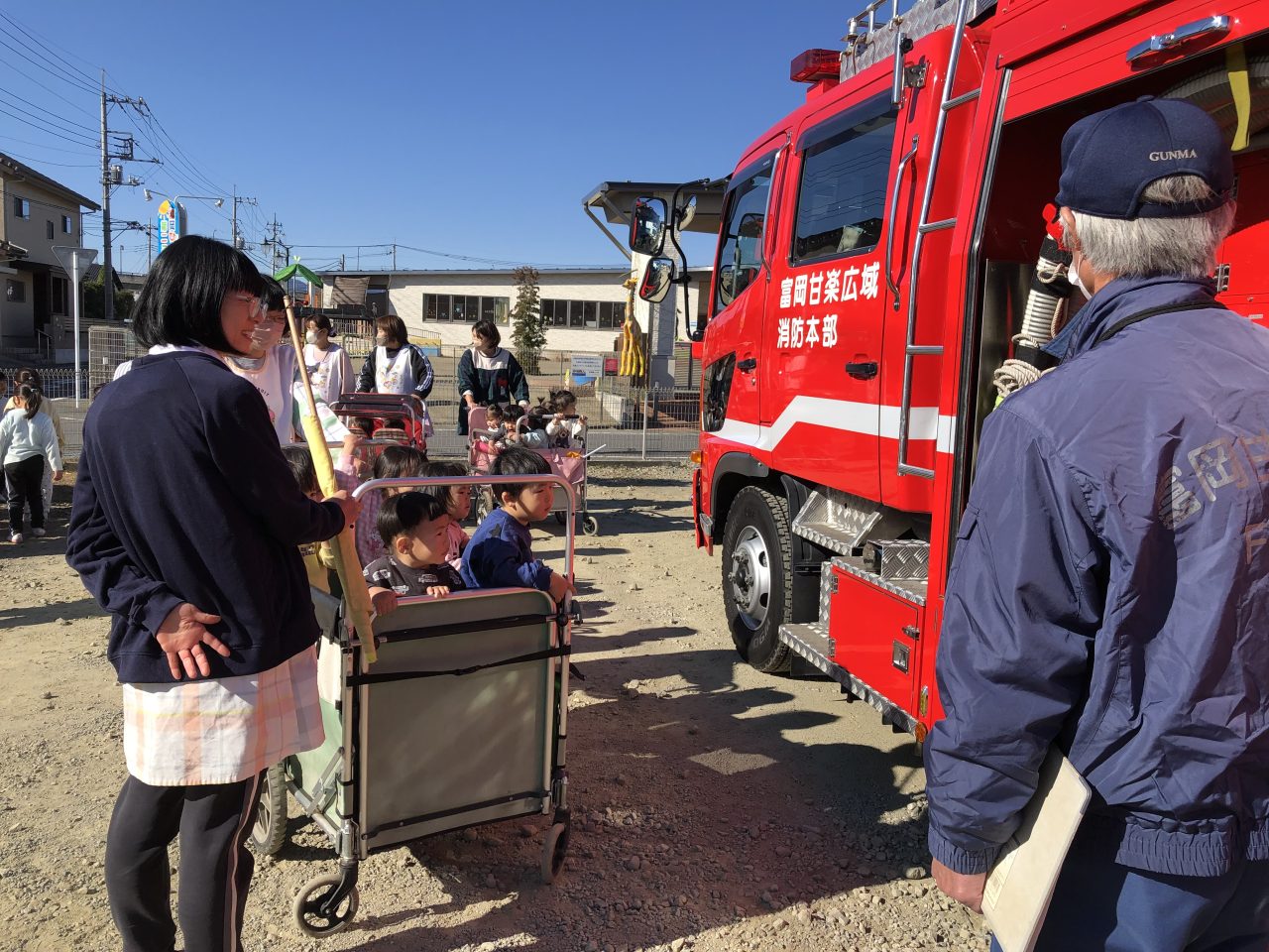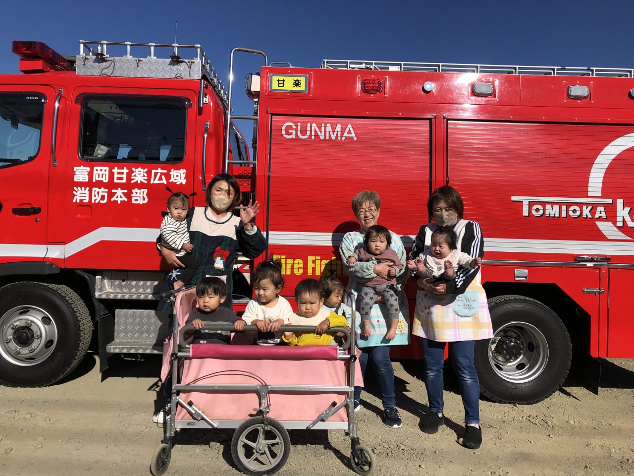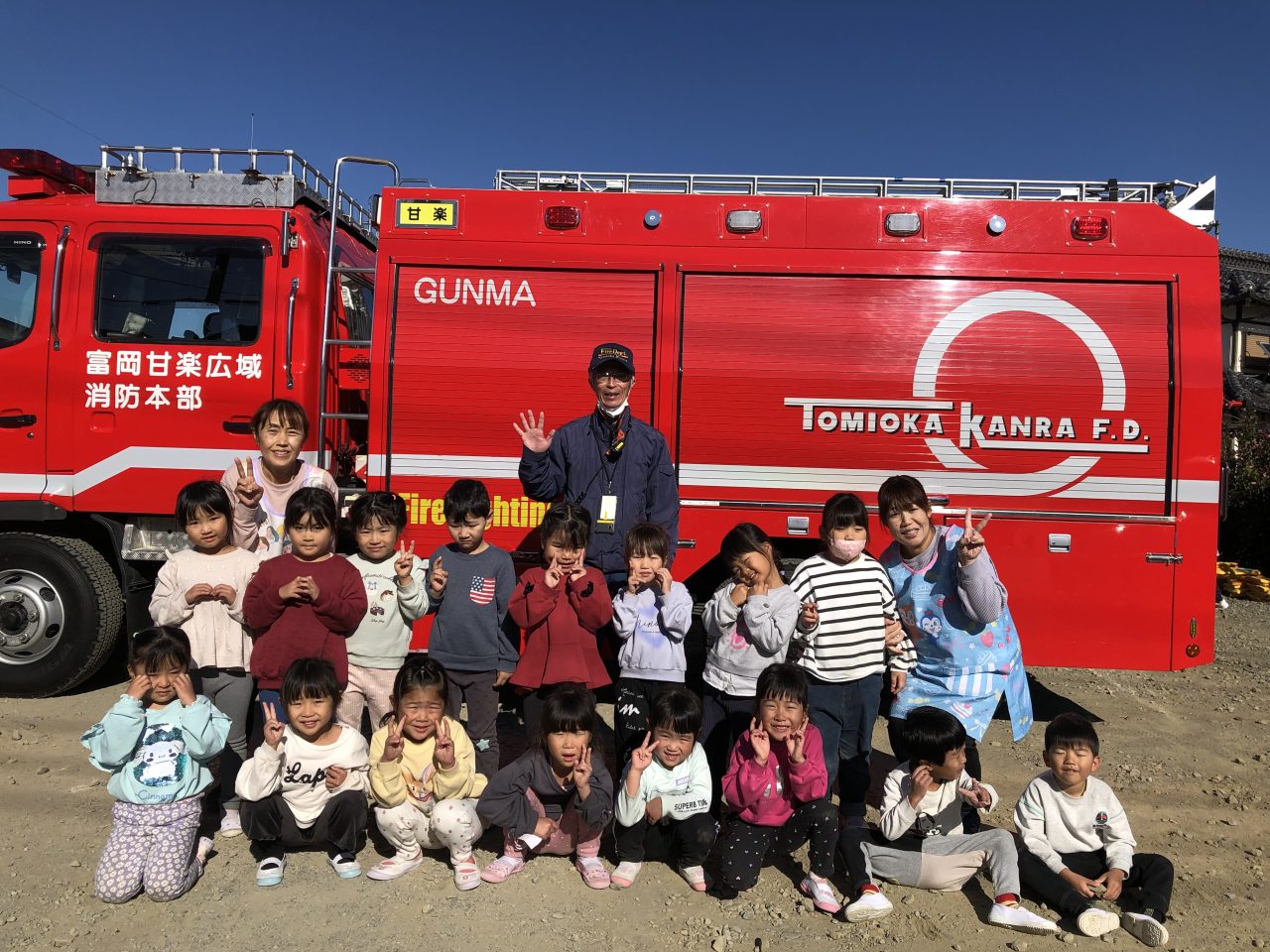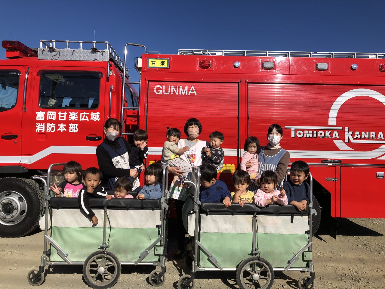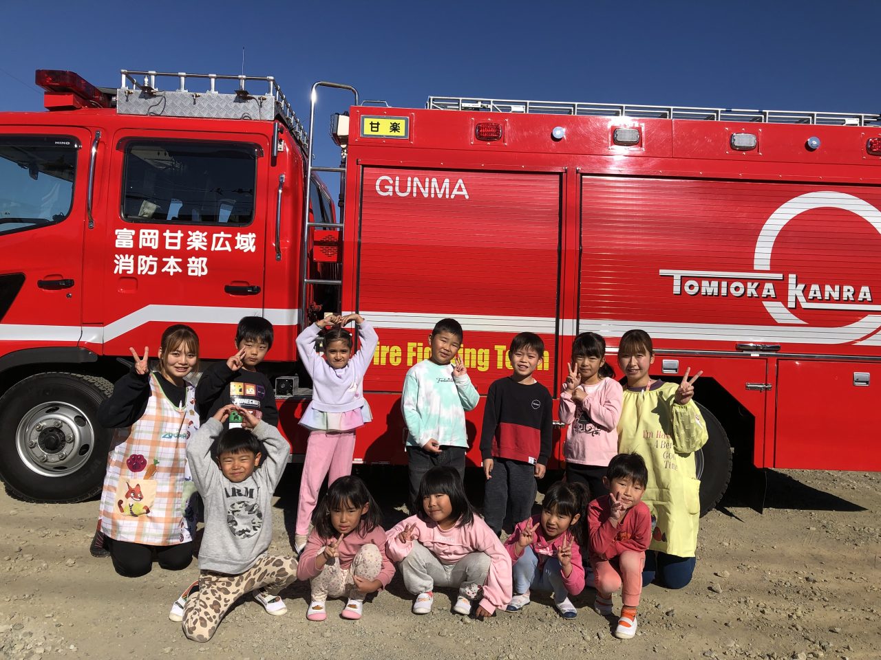 その後、消防車と救急車の見学をさせてもらい、とても喜んでいた子どもたちです。