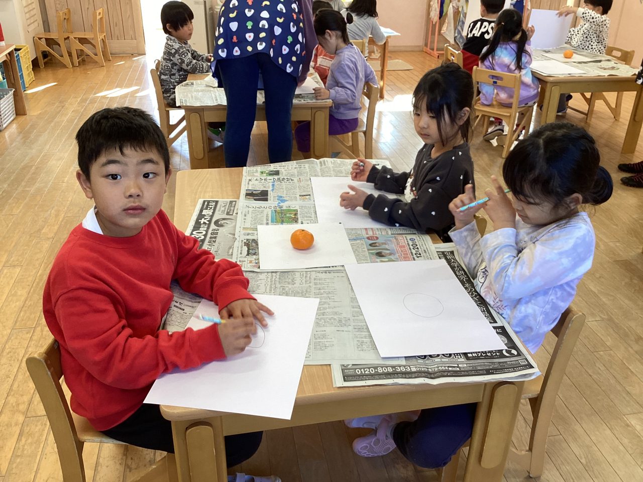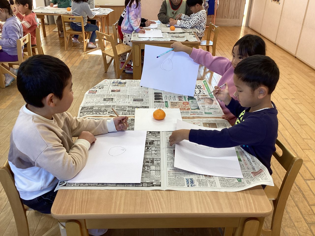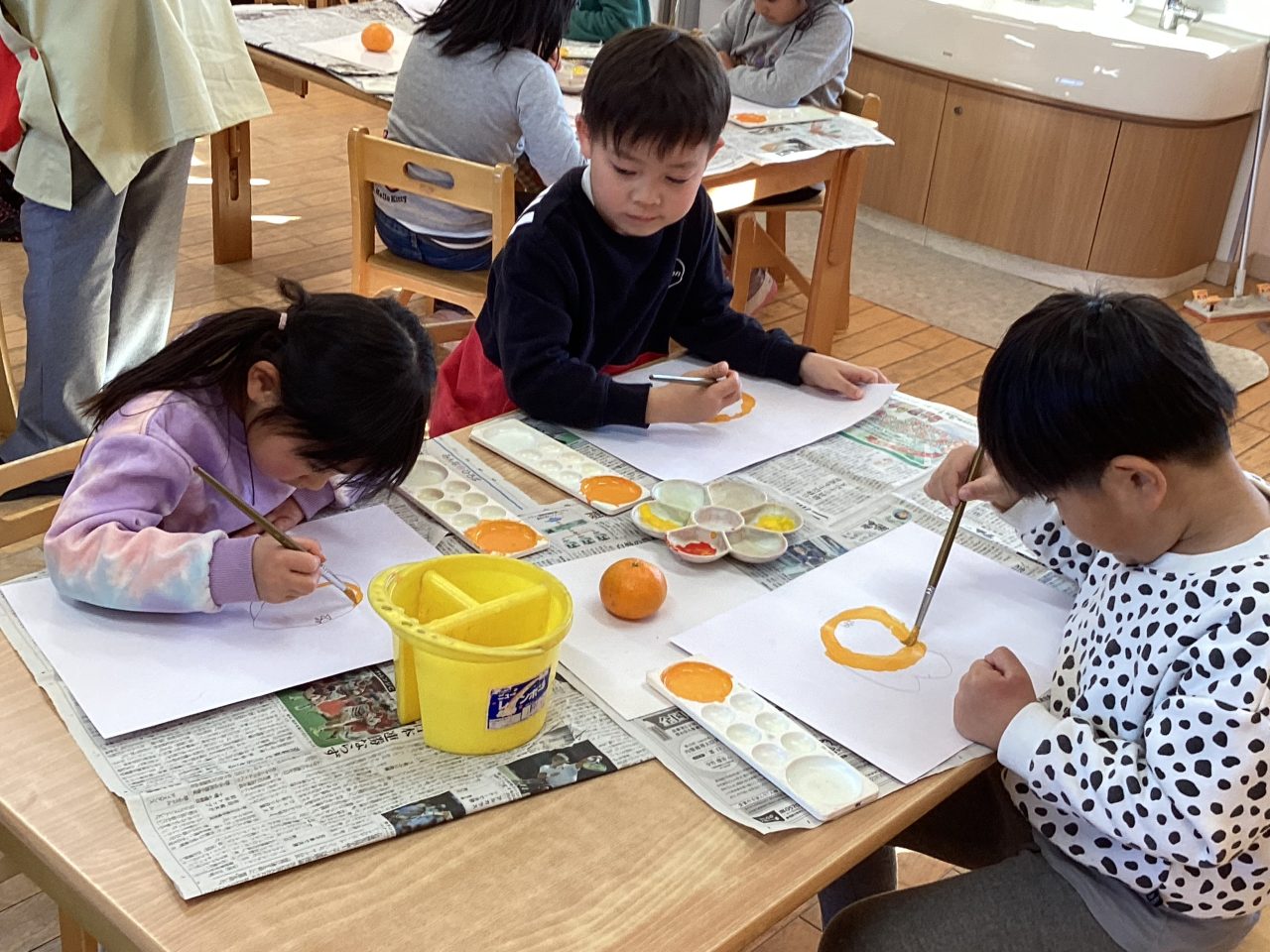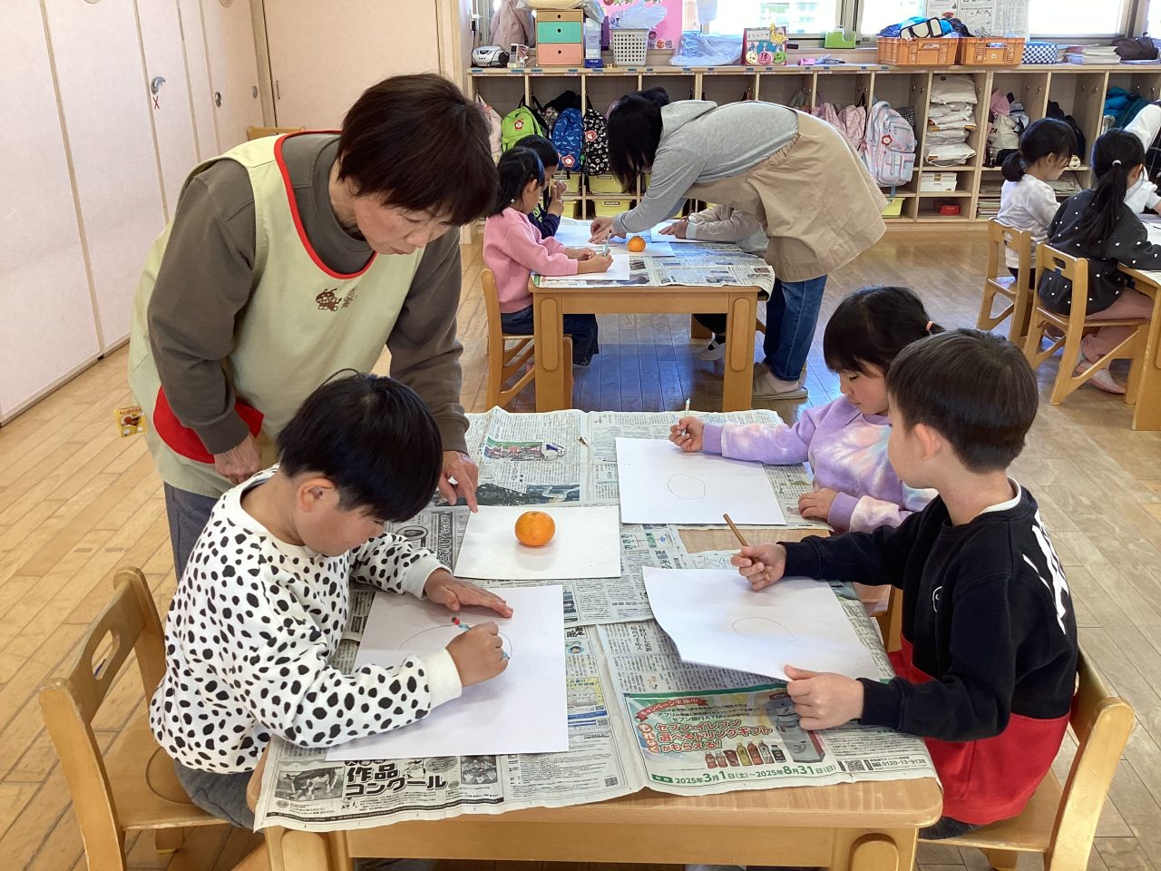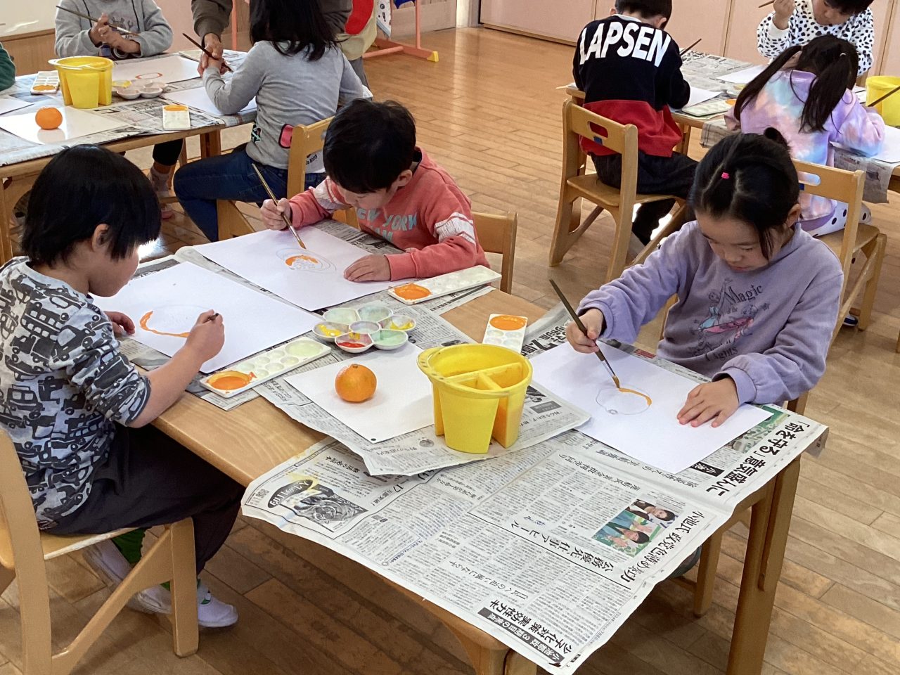 美味しそうなみかんを描きました。新井先生が上手に描き方のポイントを