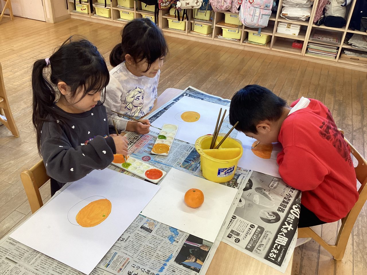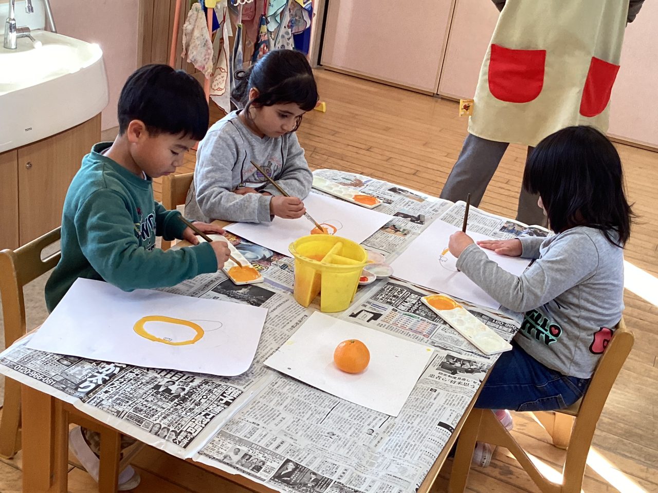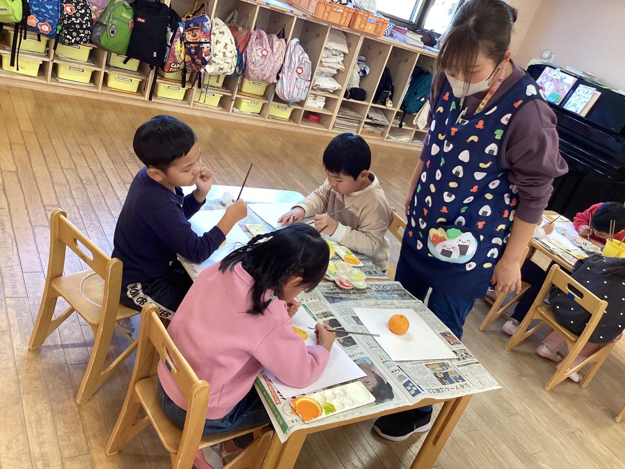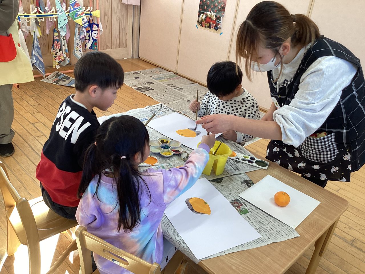 美味しそうなみかんを描きました。新井先生が上手に描き方のポイントを
