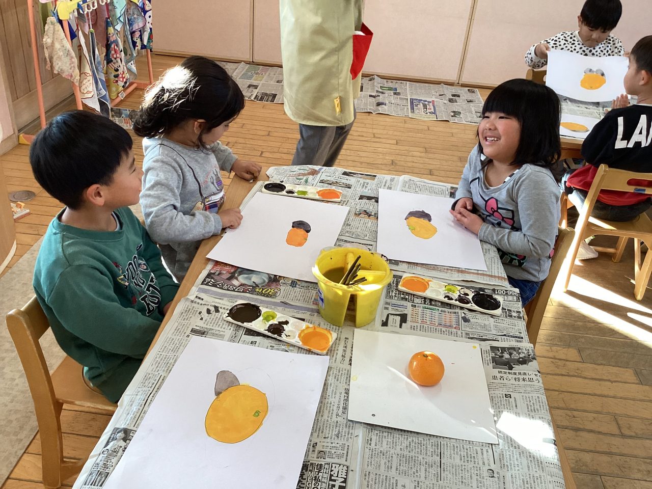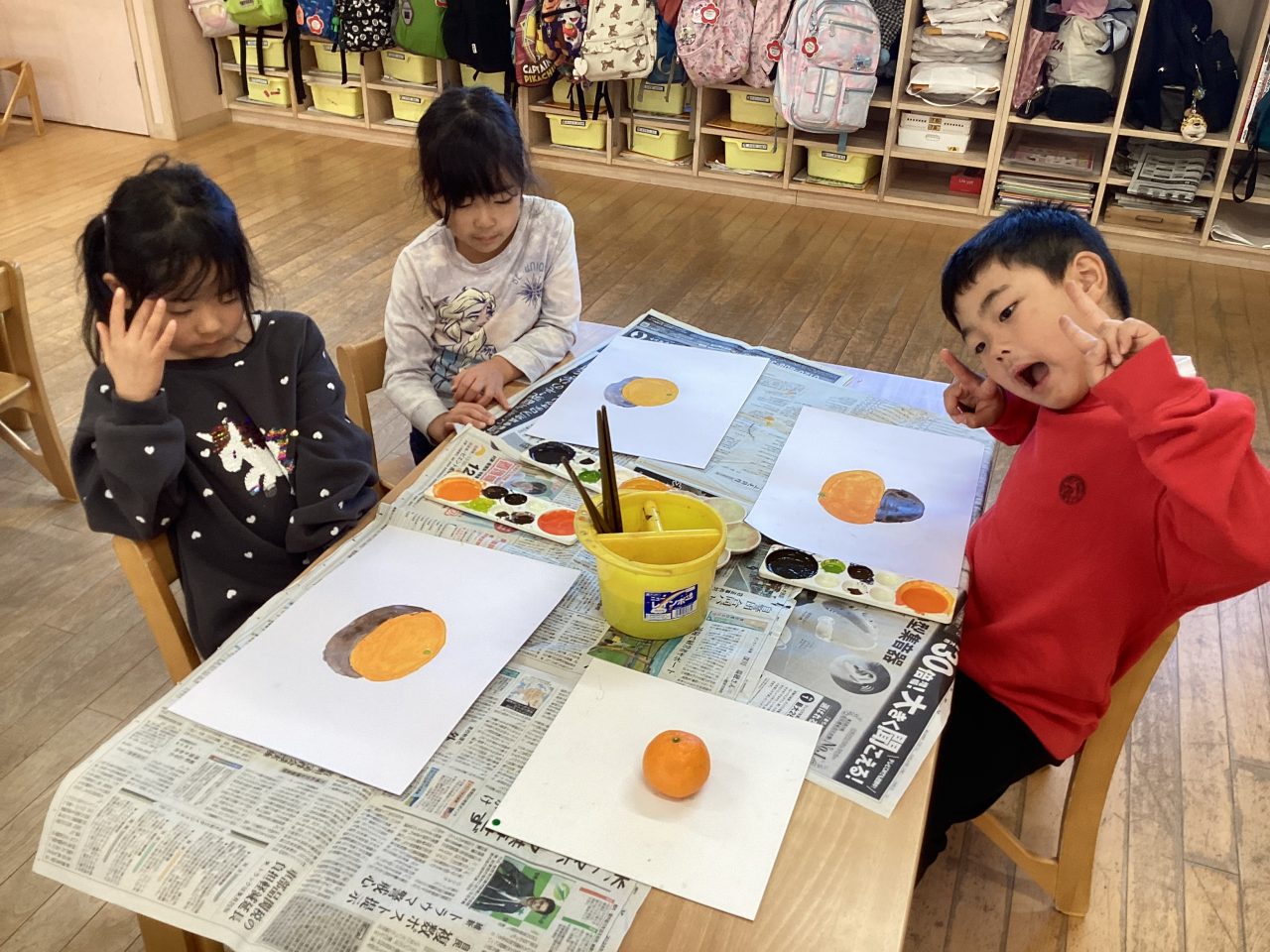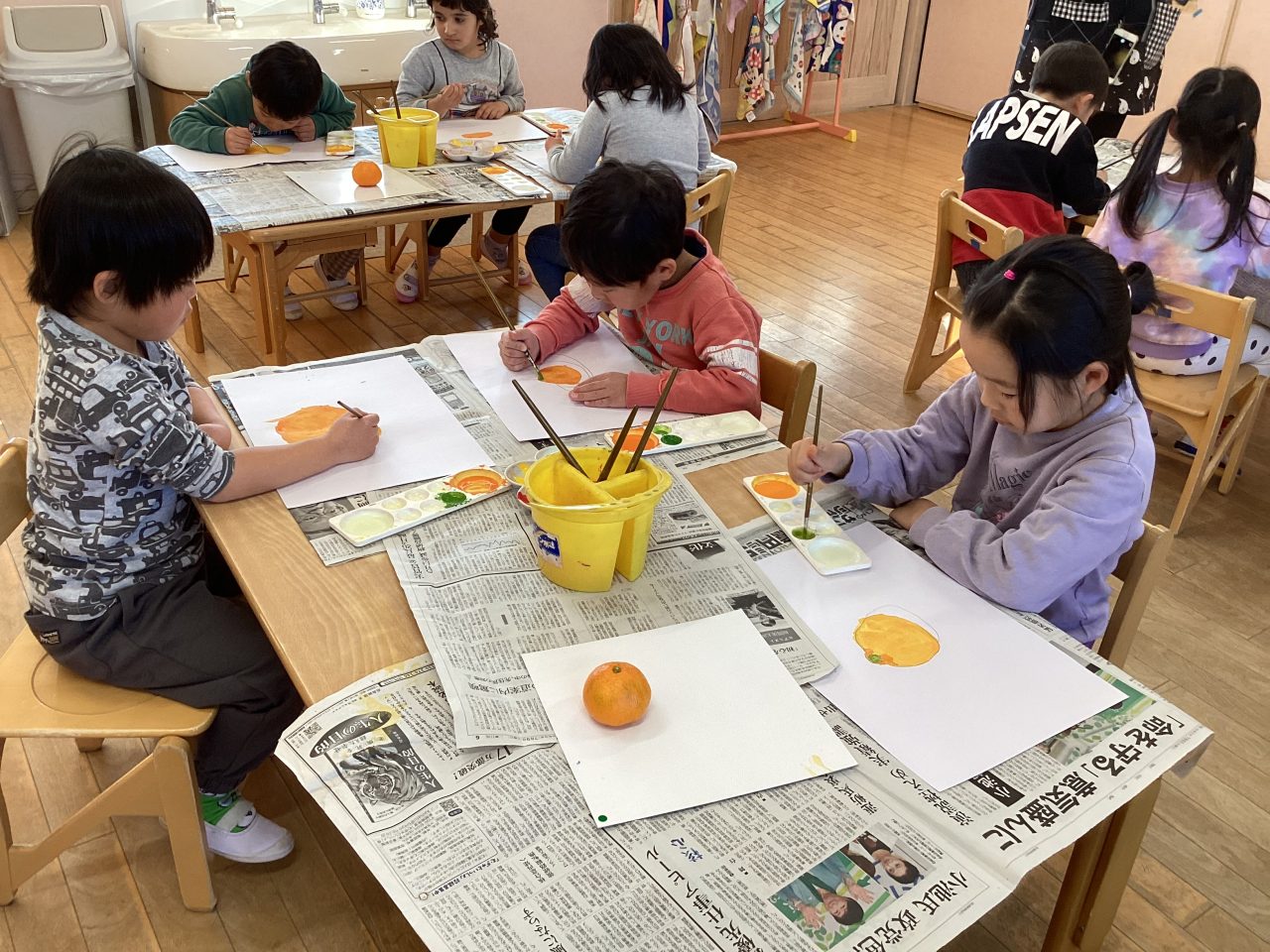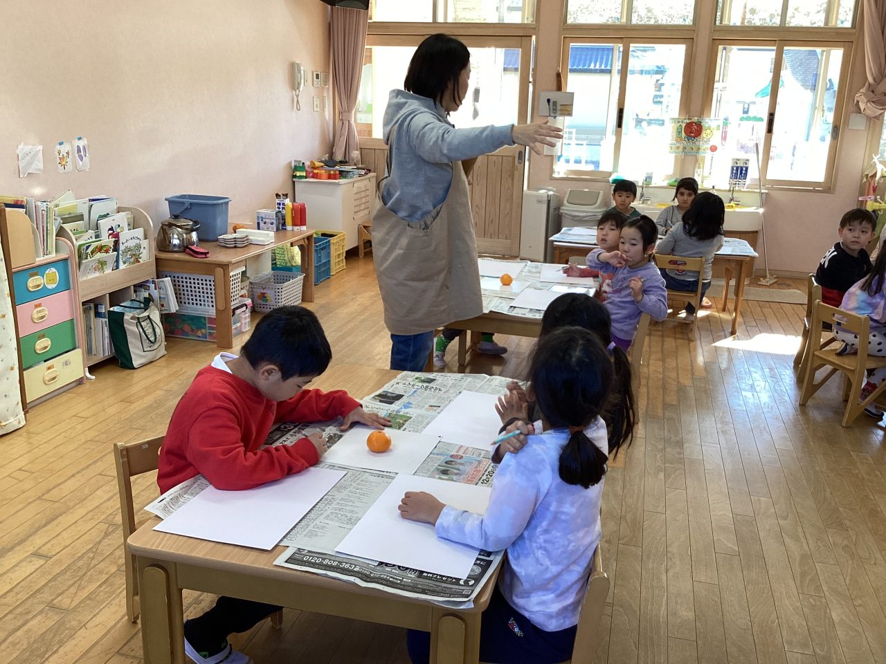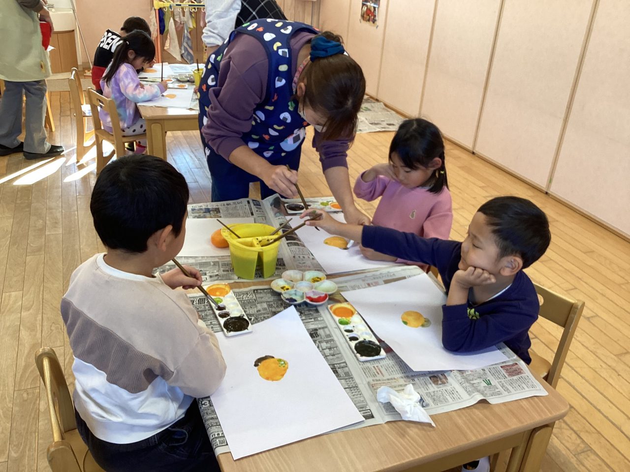 美味しそうなみかんを描きました。新井先生が上手に描き方のポイントを