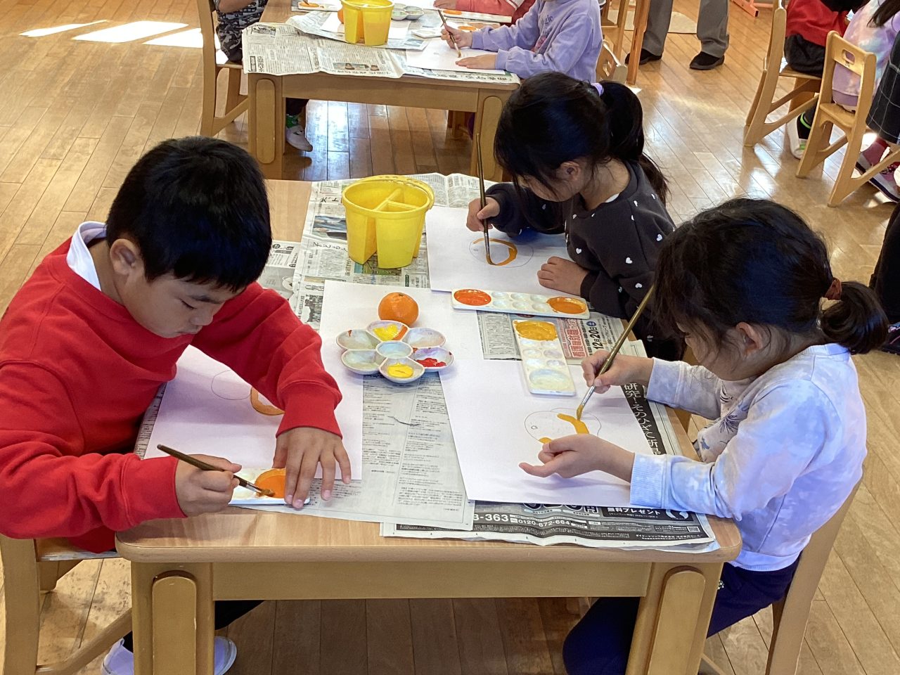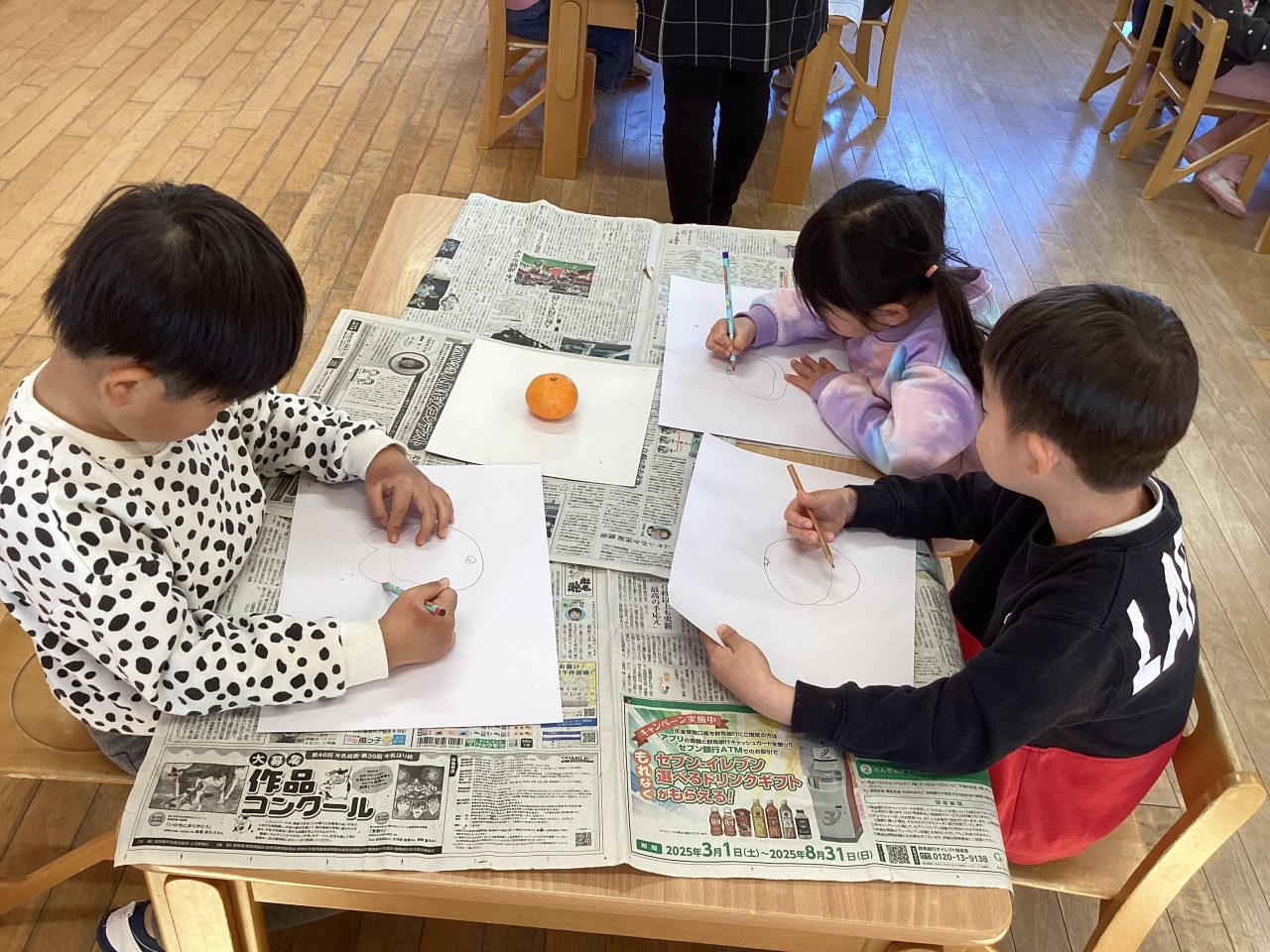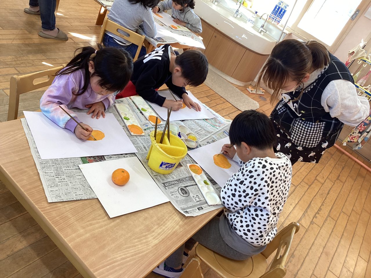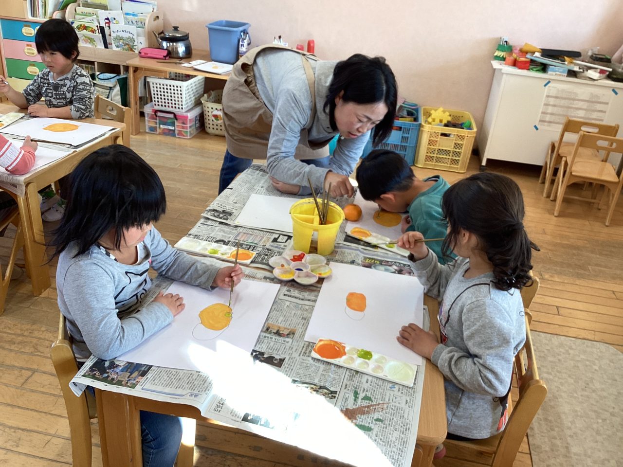 美味しそうなみかんを描きました。新井先生が上手に描き方のポイントを