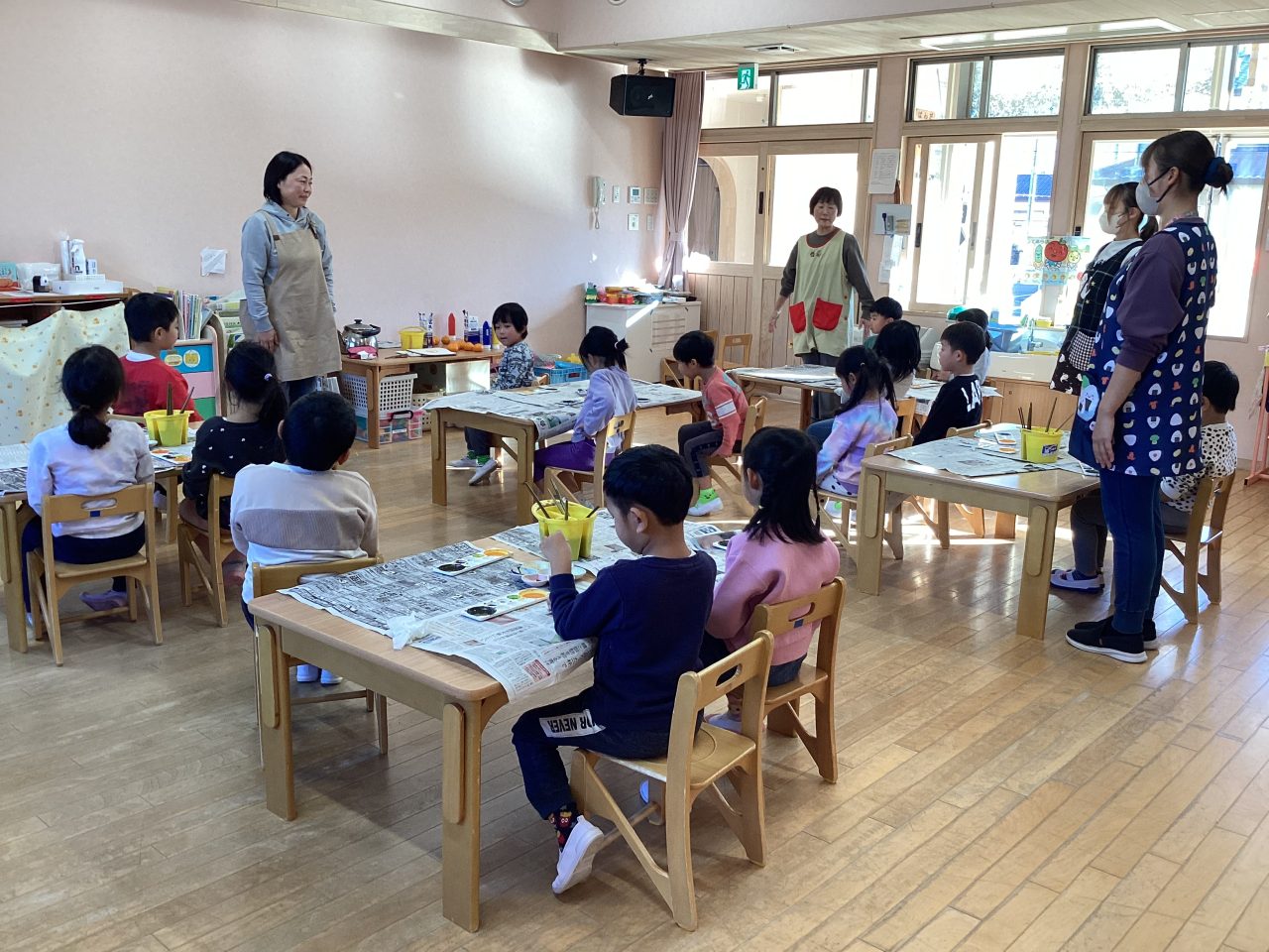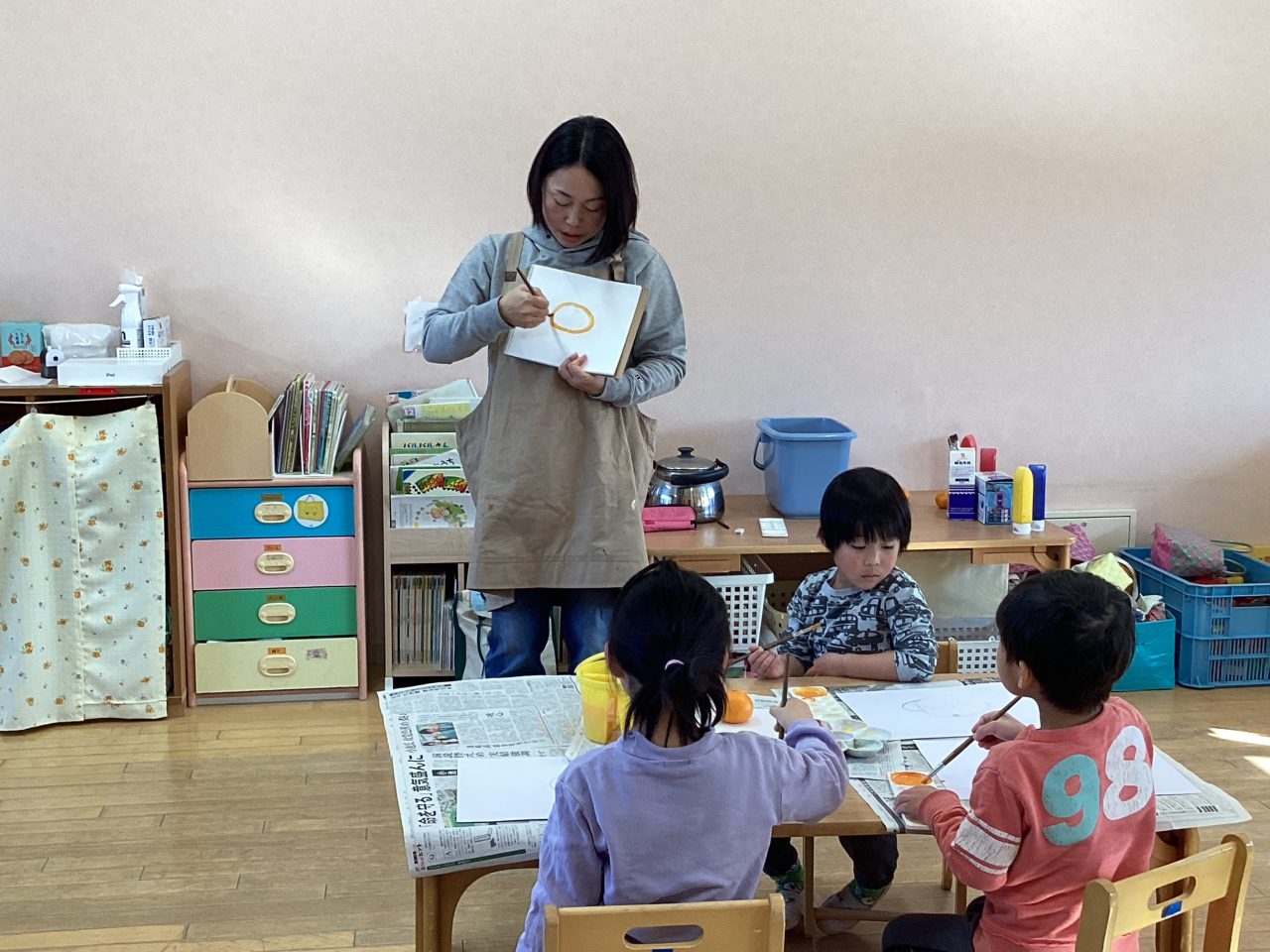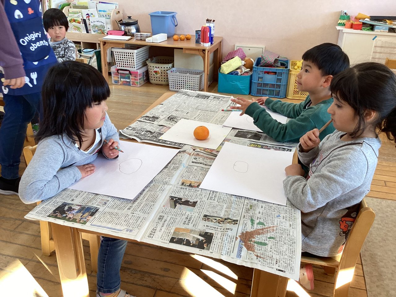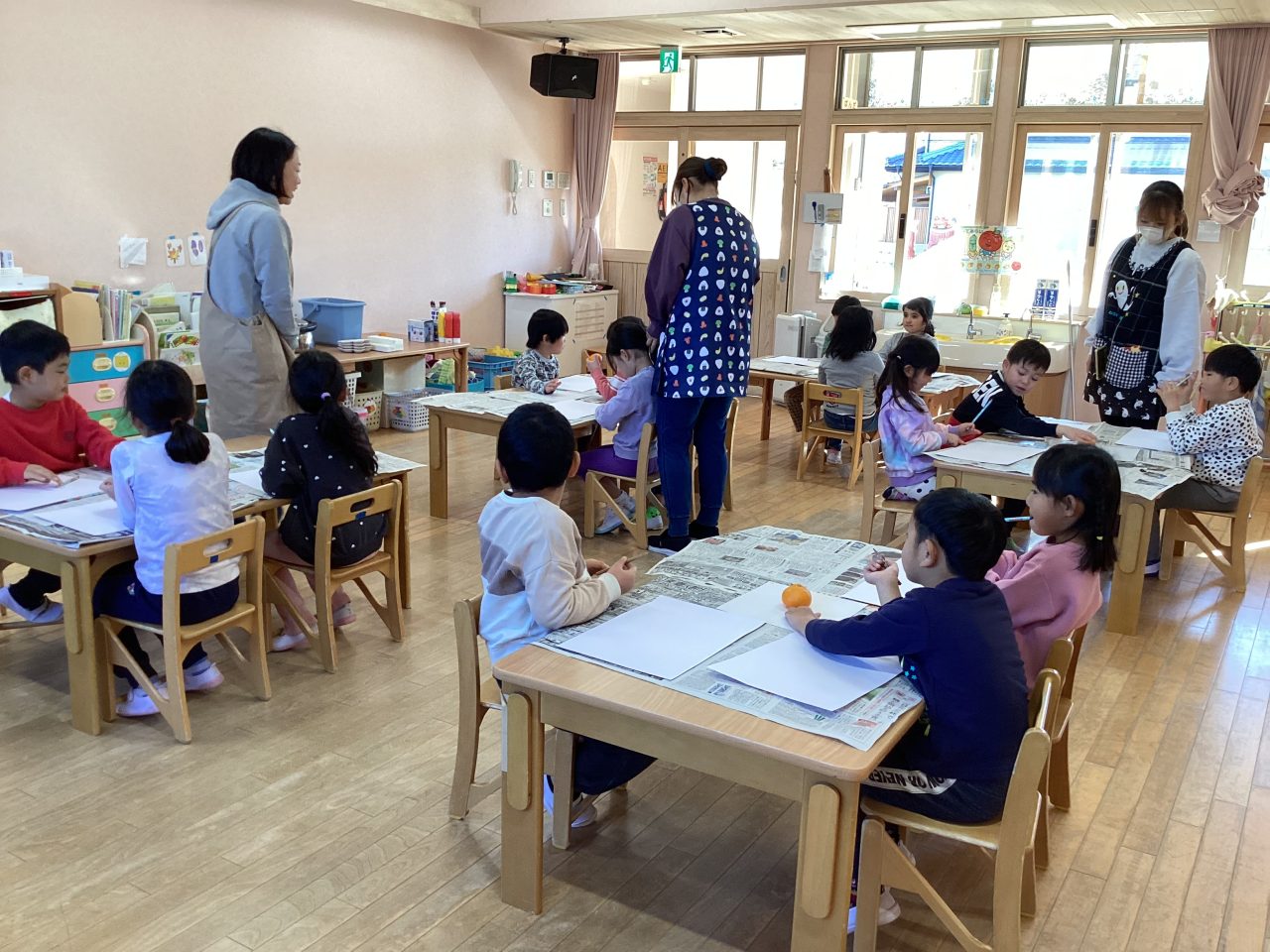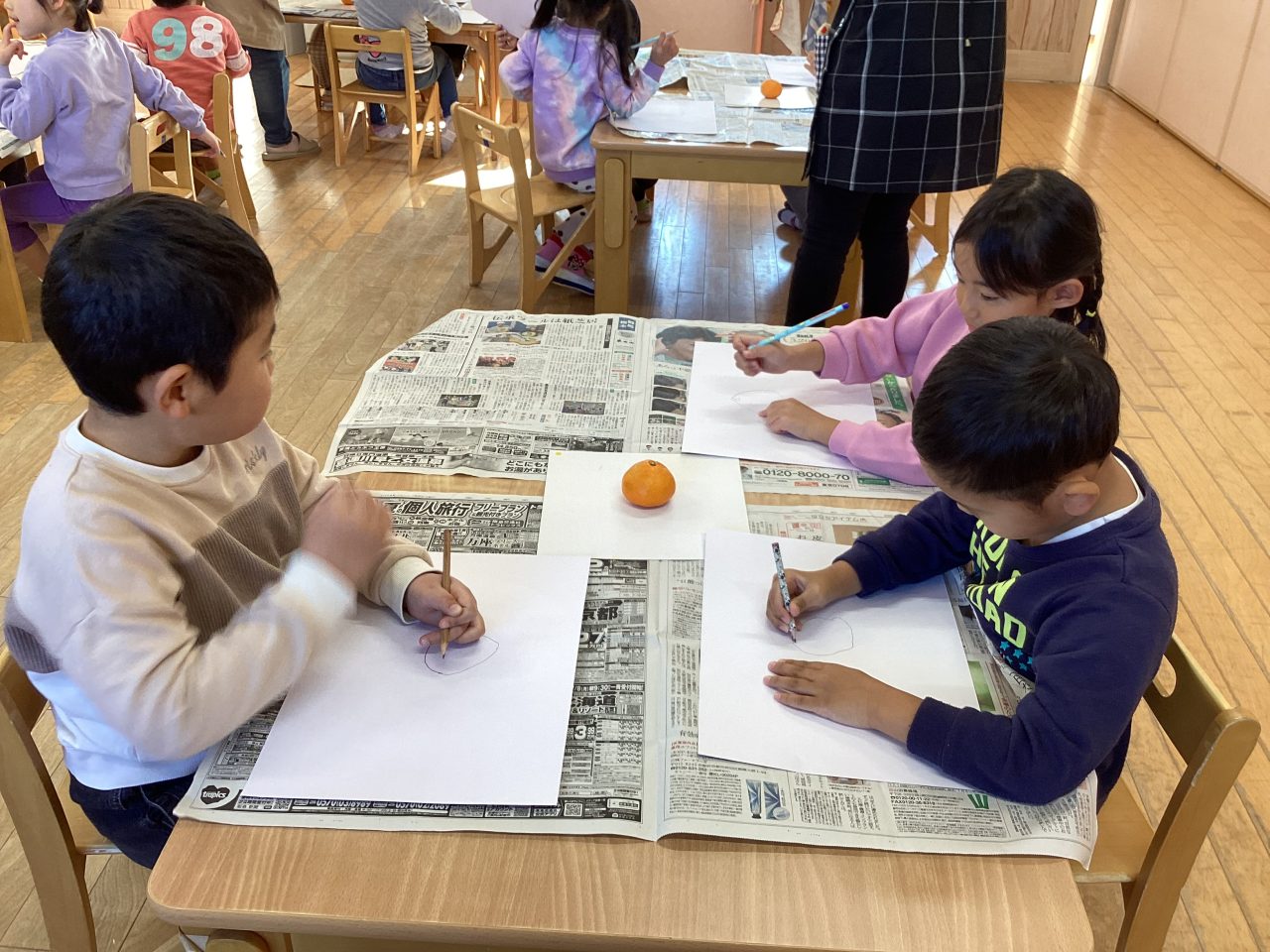 美味しそうなみかんを描きました。新井先生が上手に描き方のポイントを