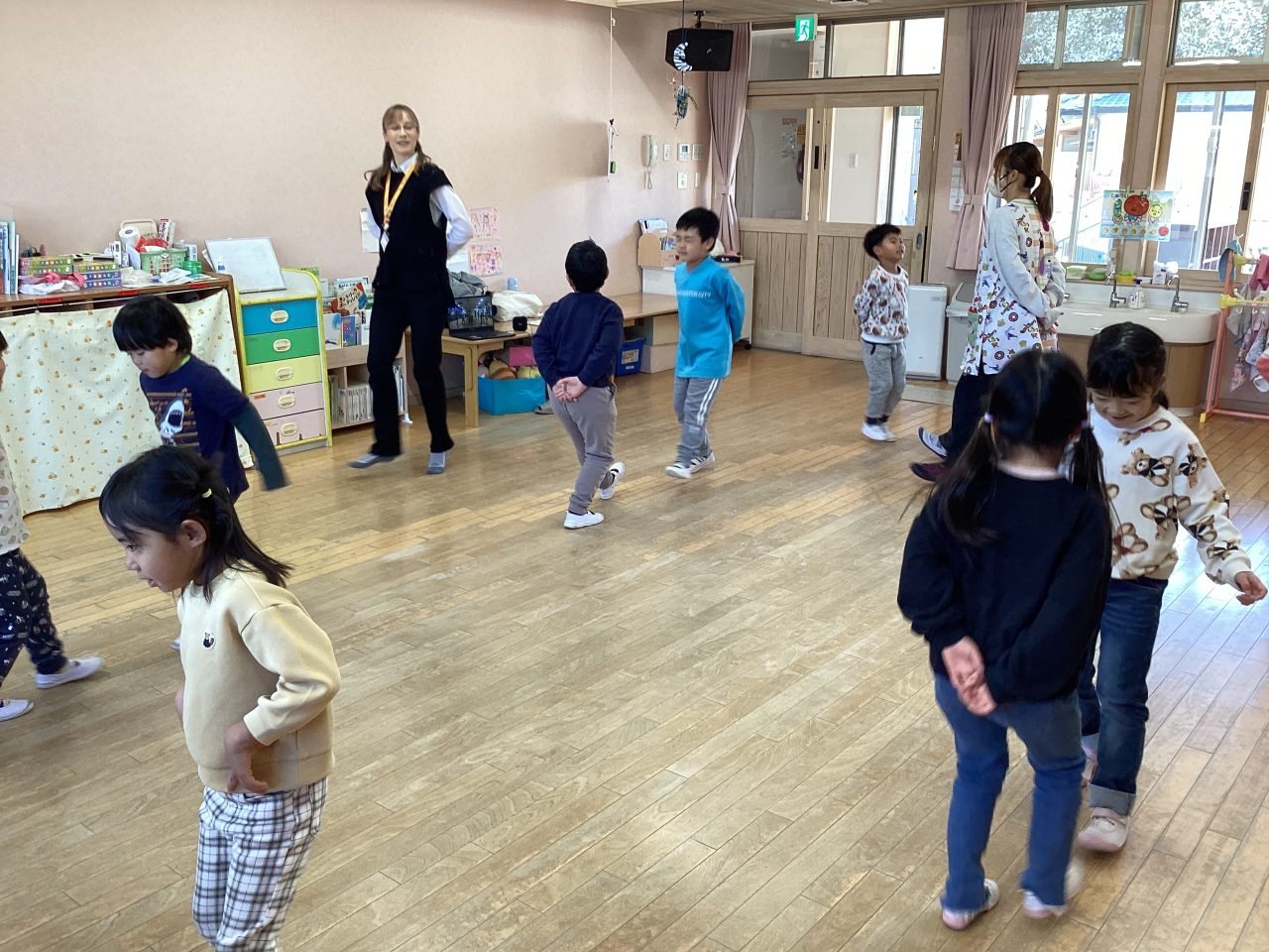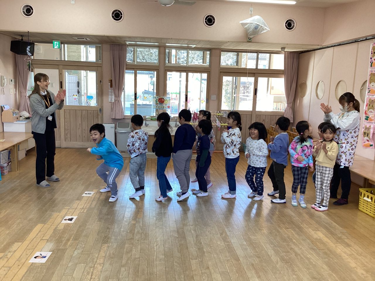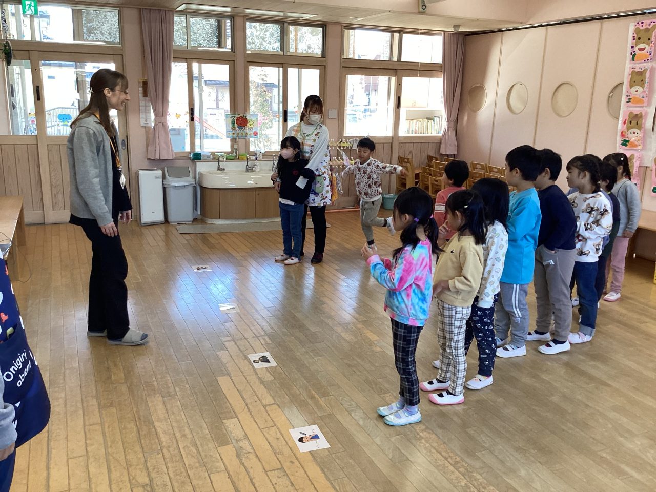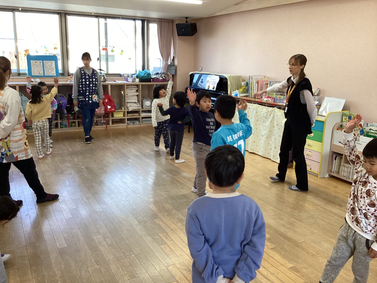 楽器は子どもたちはよくわかって正解を出していました。ダンスはステップを教えてもらい、みんなで