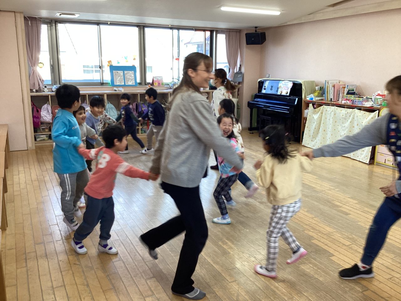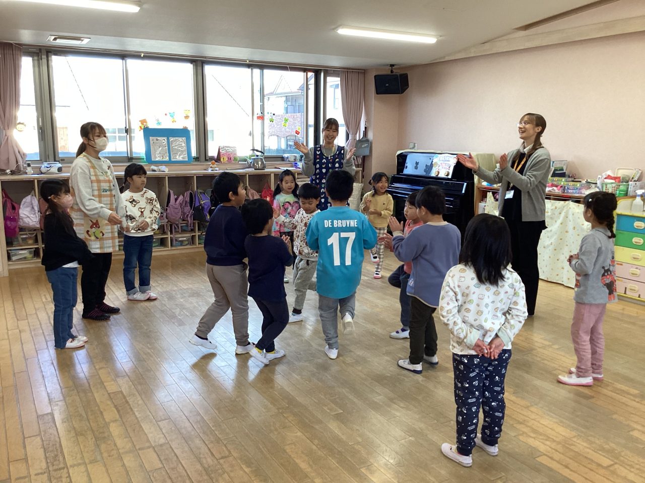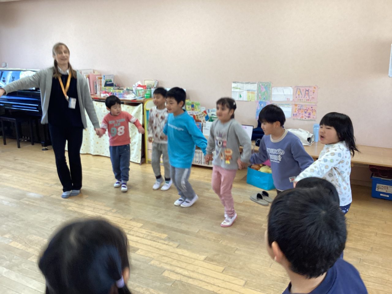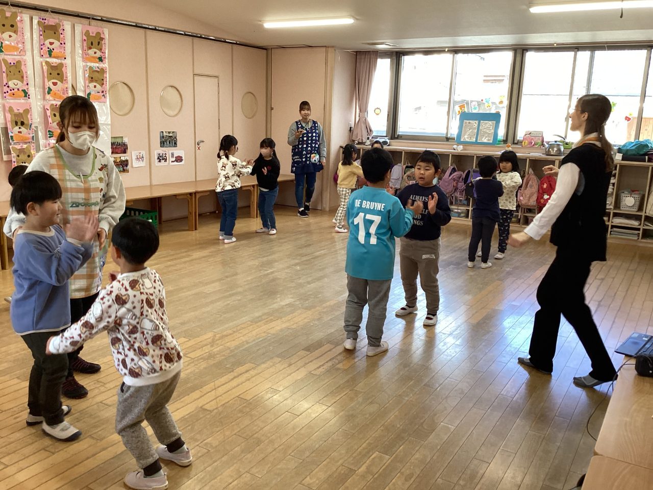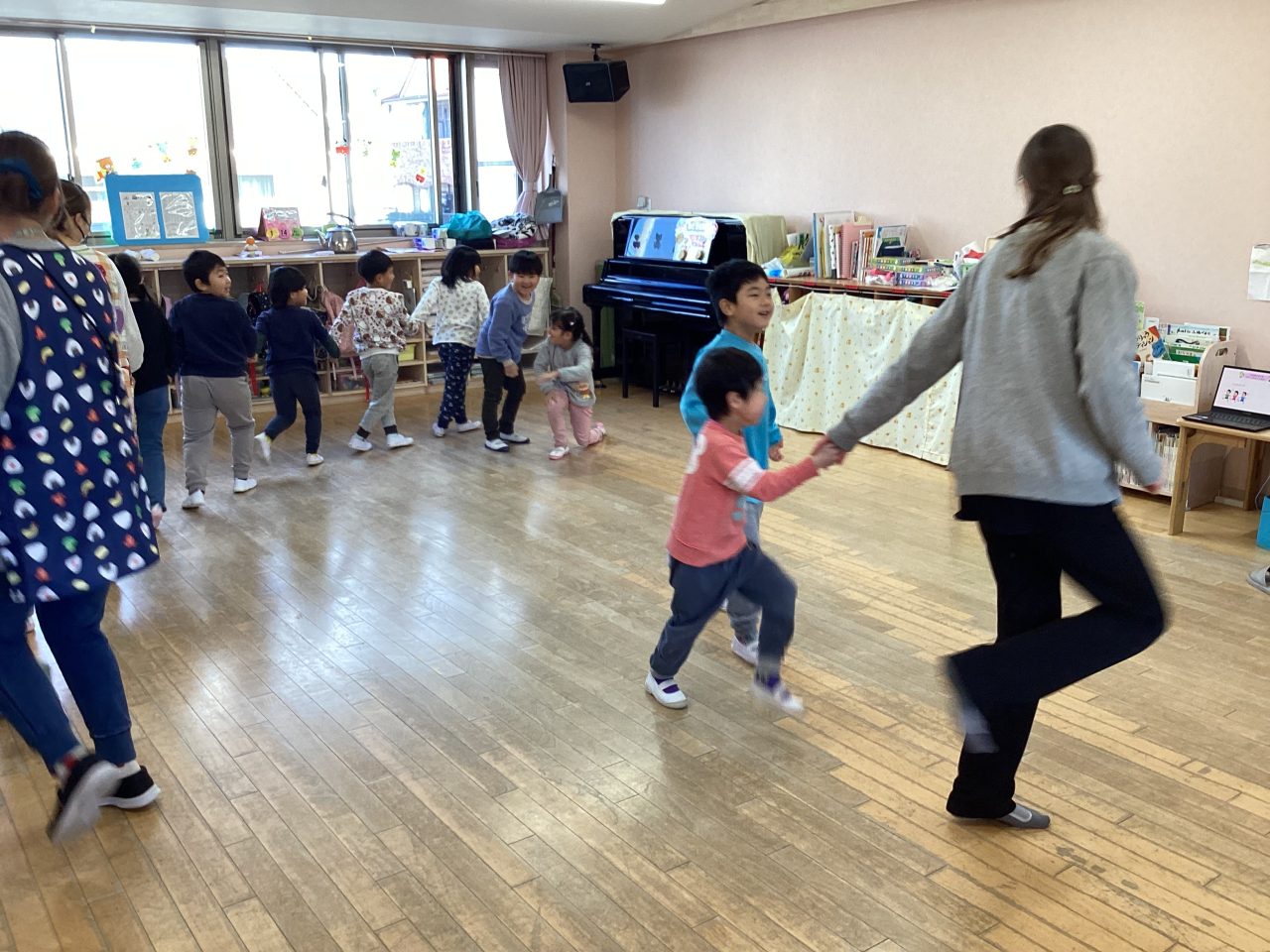 楽器は子どもたちはよくわかって正解を出していました。ダンスはステップを教えてもらい、みんなで