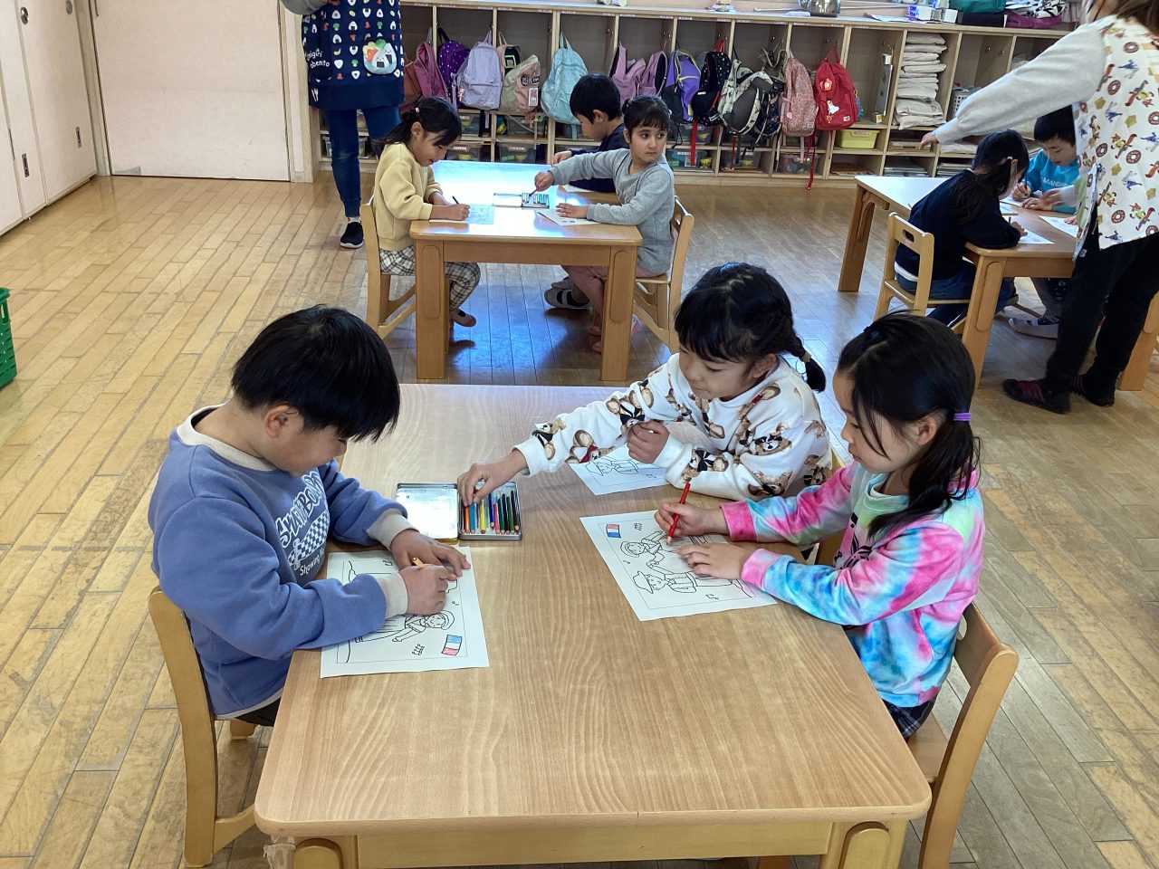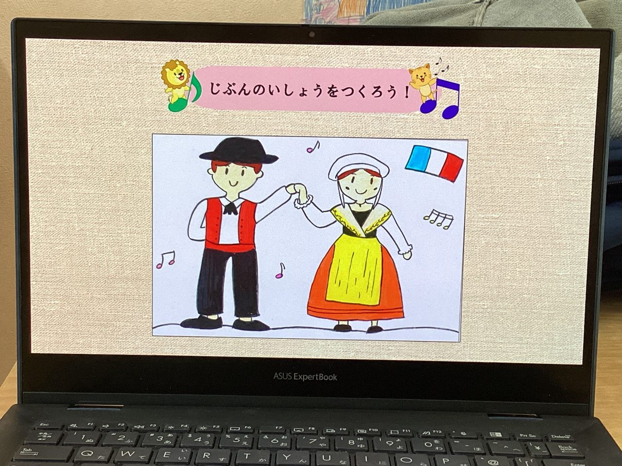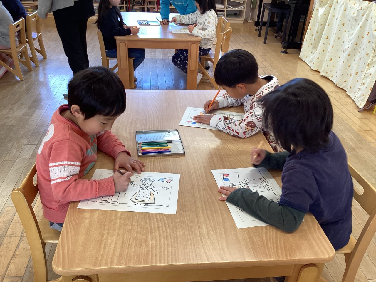 ・フランスの楽器の音当てゲーム ・ダンスステップに挑戦 ・ダンスの衣装に色塗りをしよう