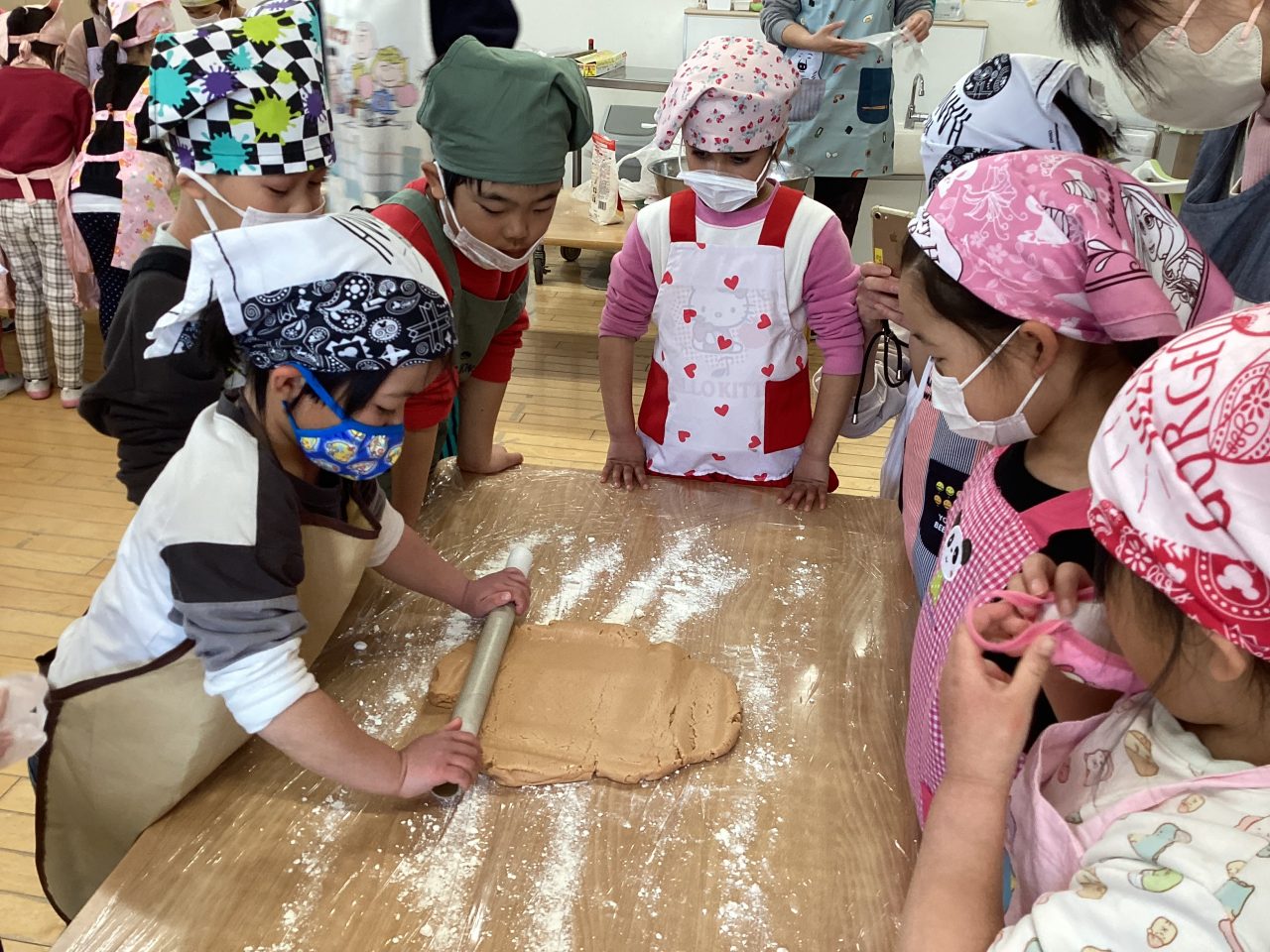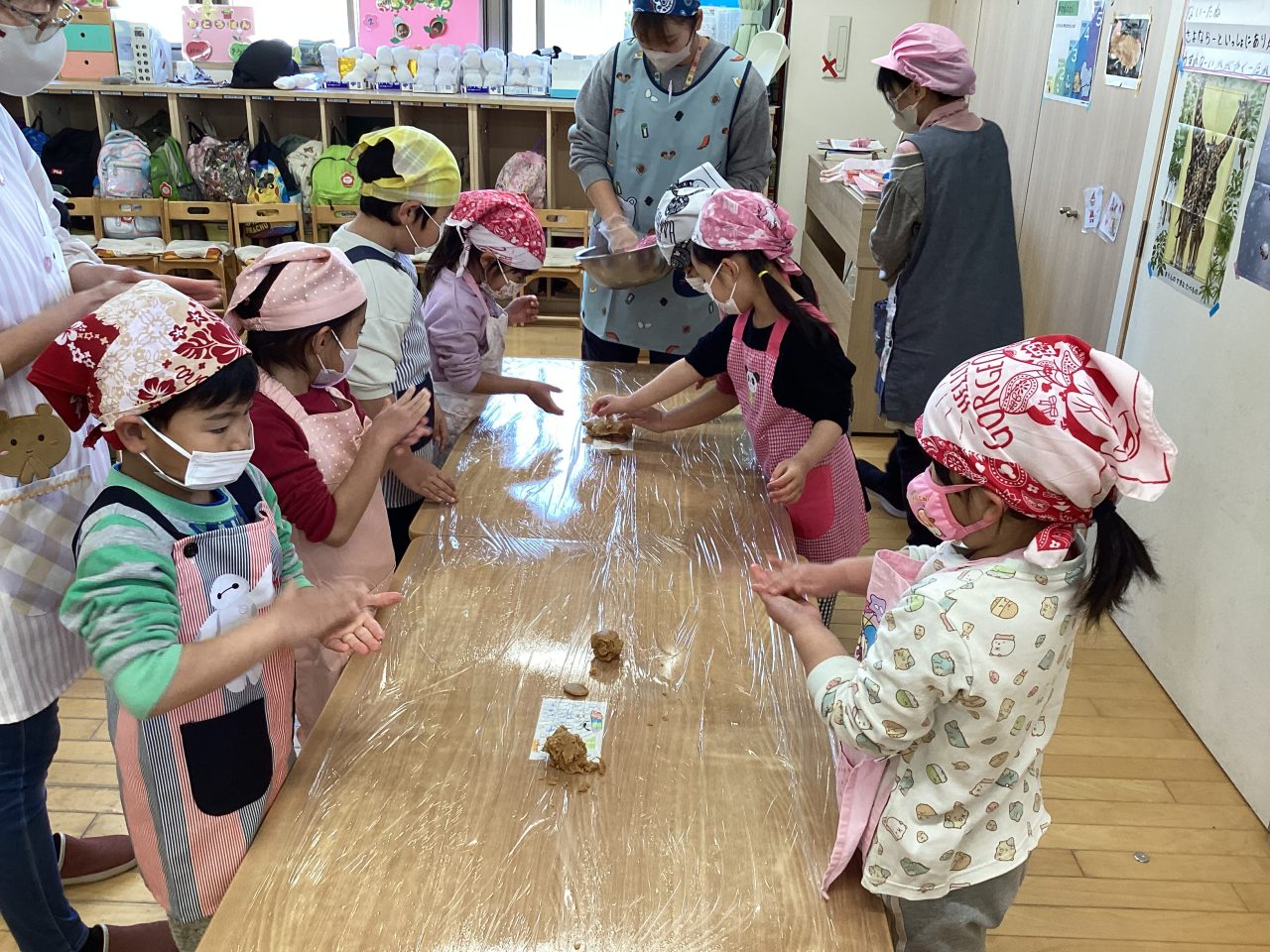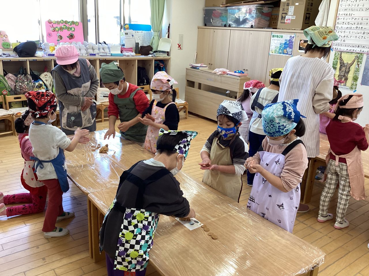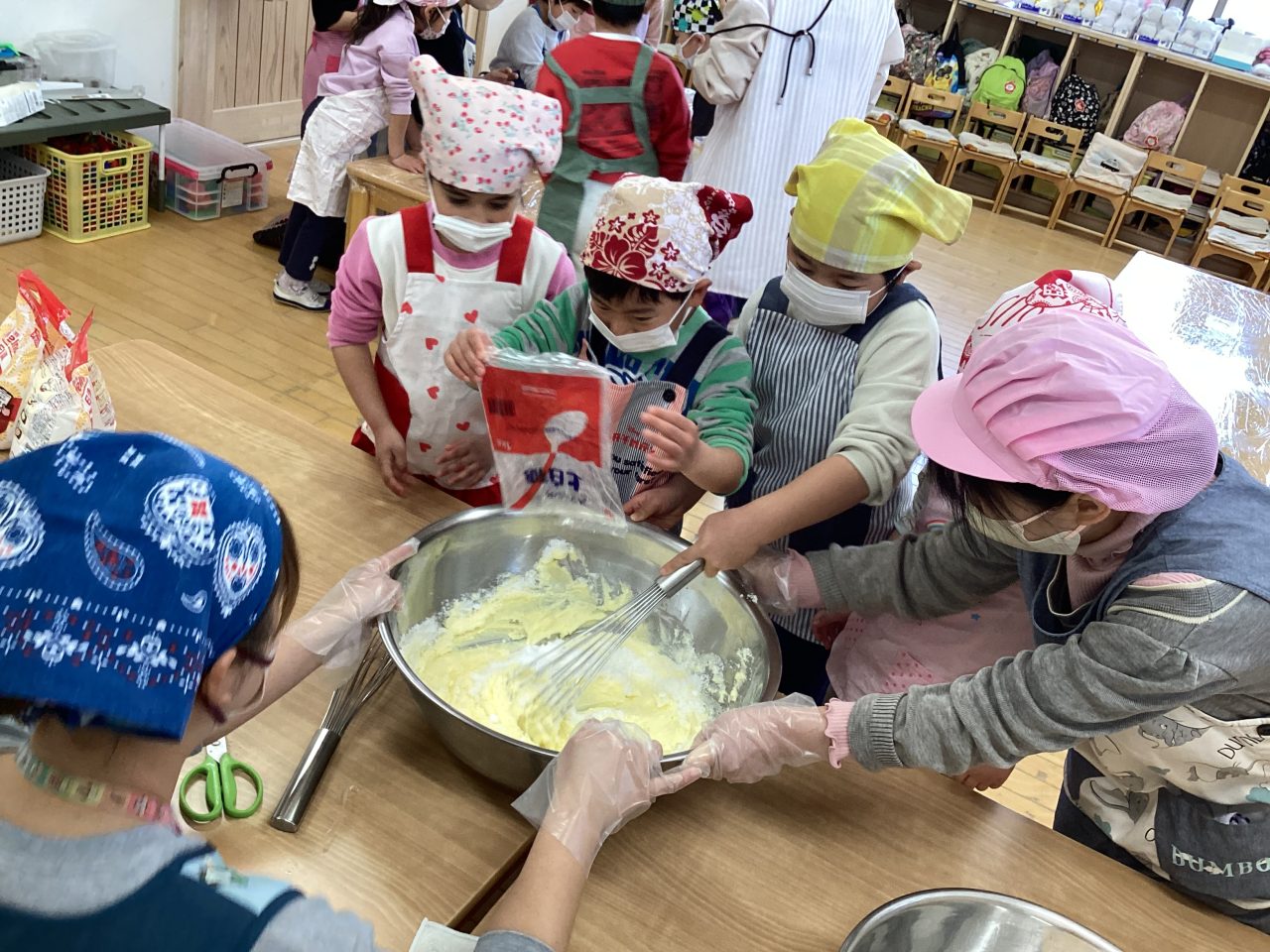 今日は年長児の子どもたちが、クッキーに挑戦しました。