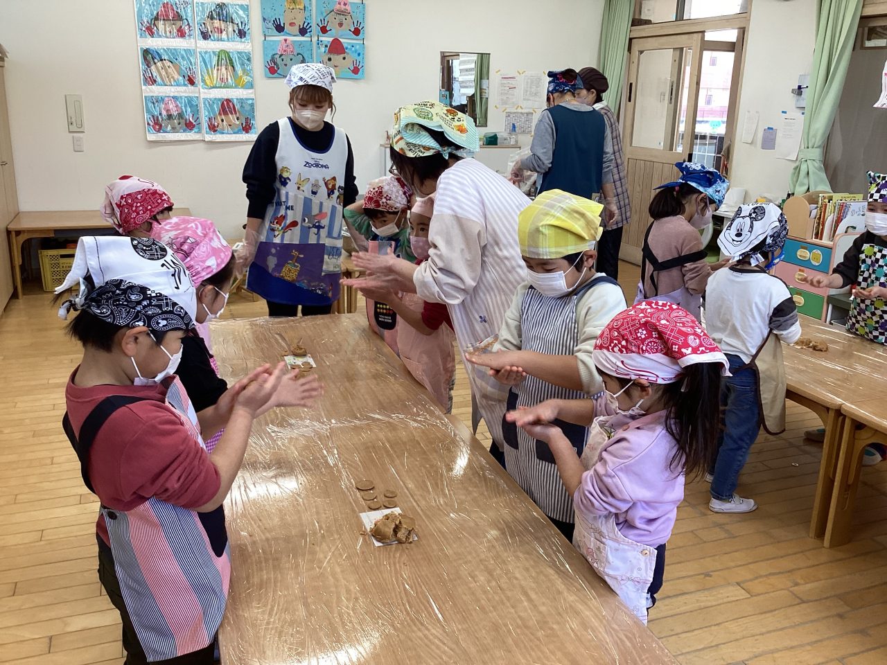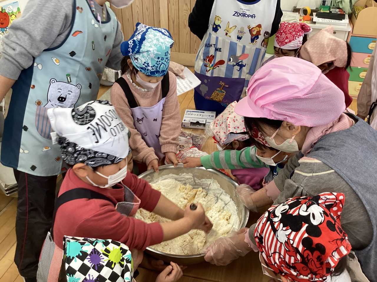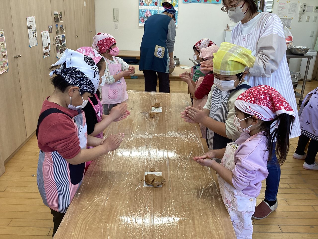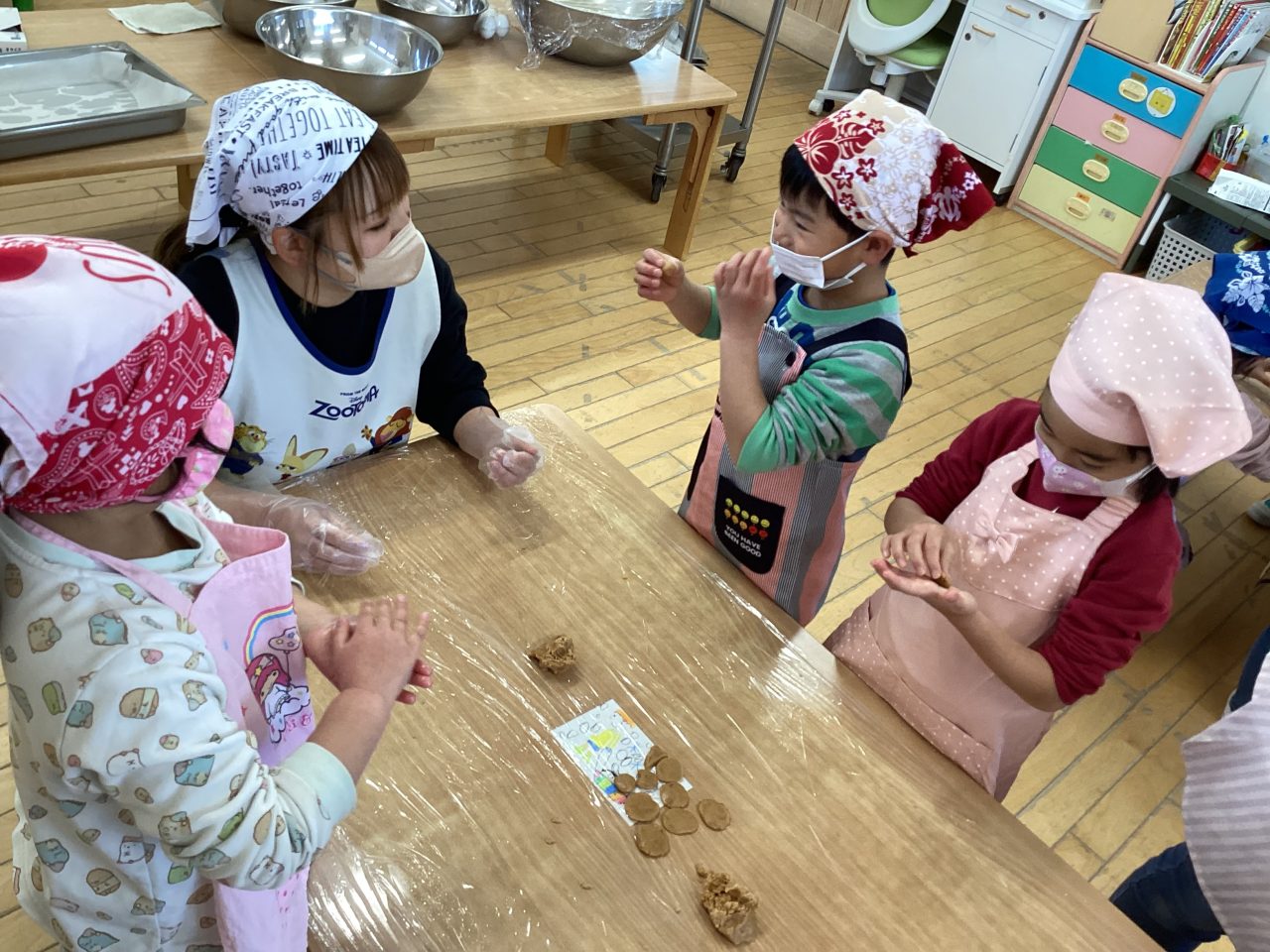 今日は年長児の子どもたちが、クッキーに挑戦しました。