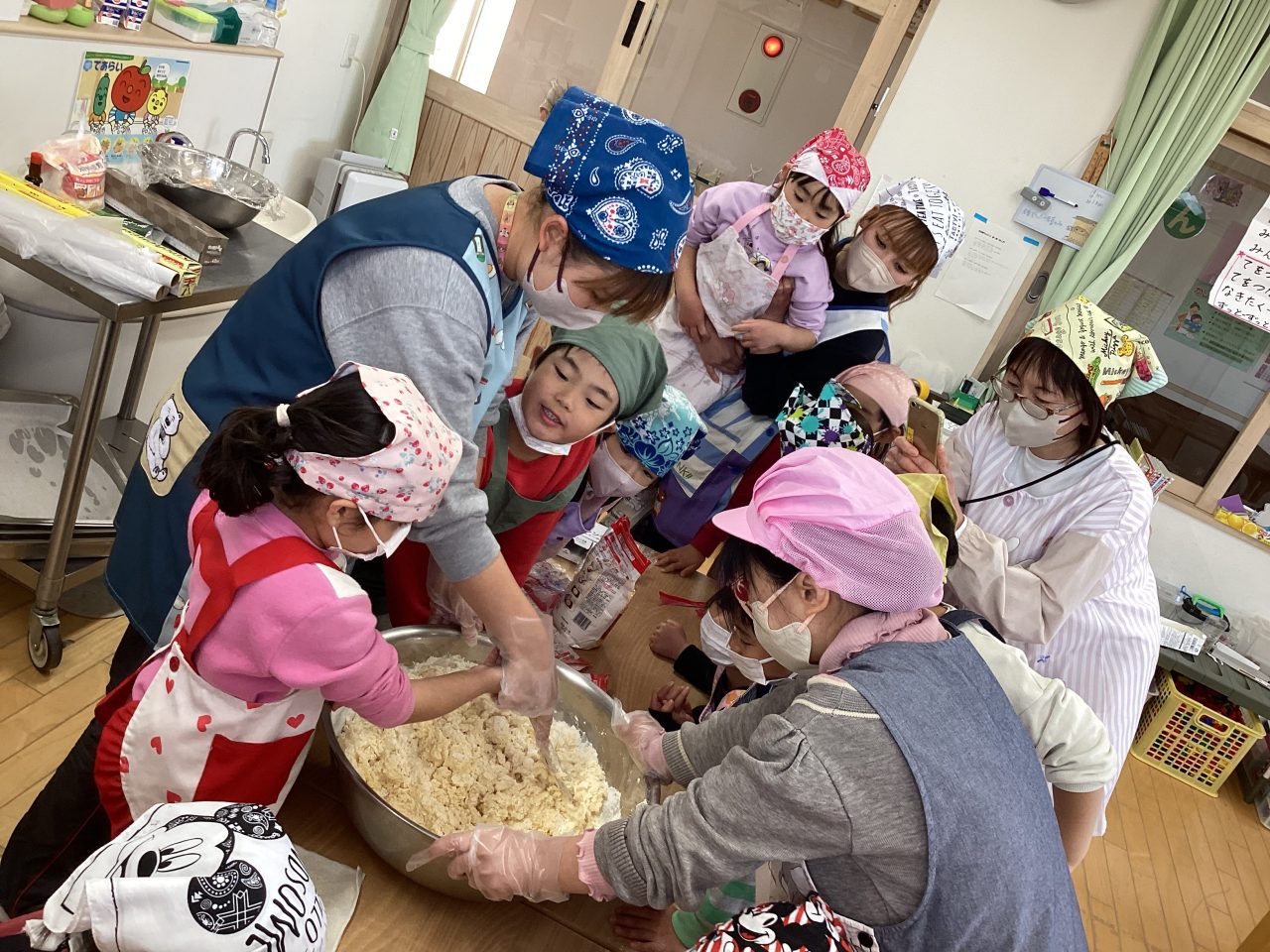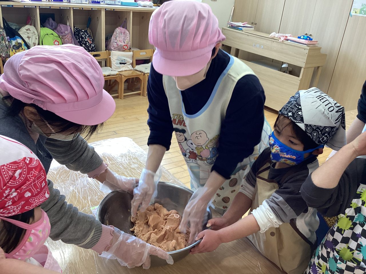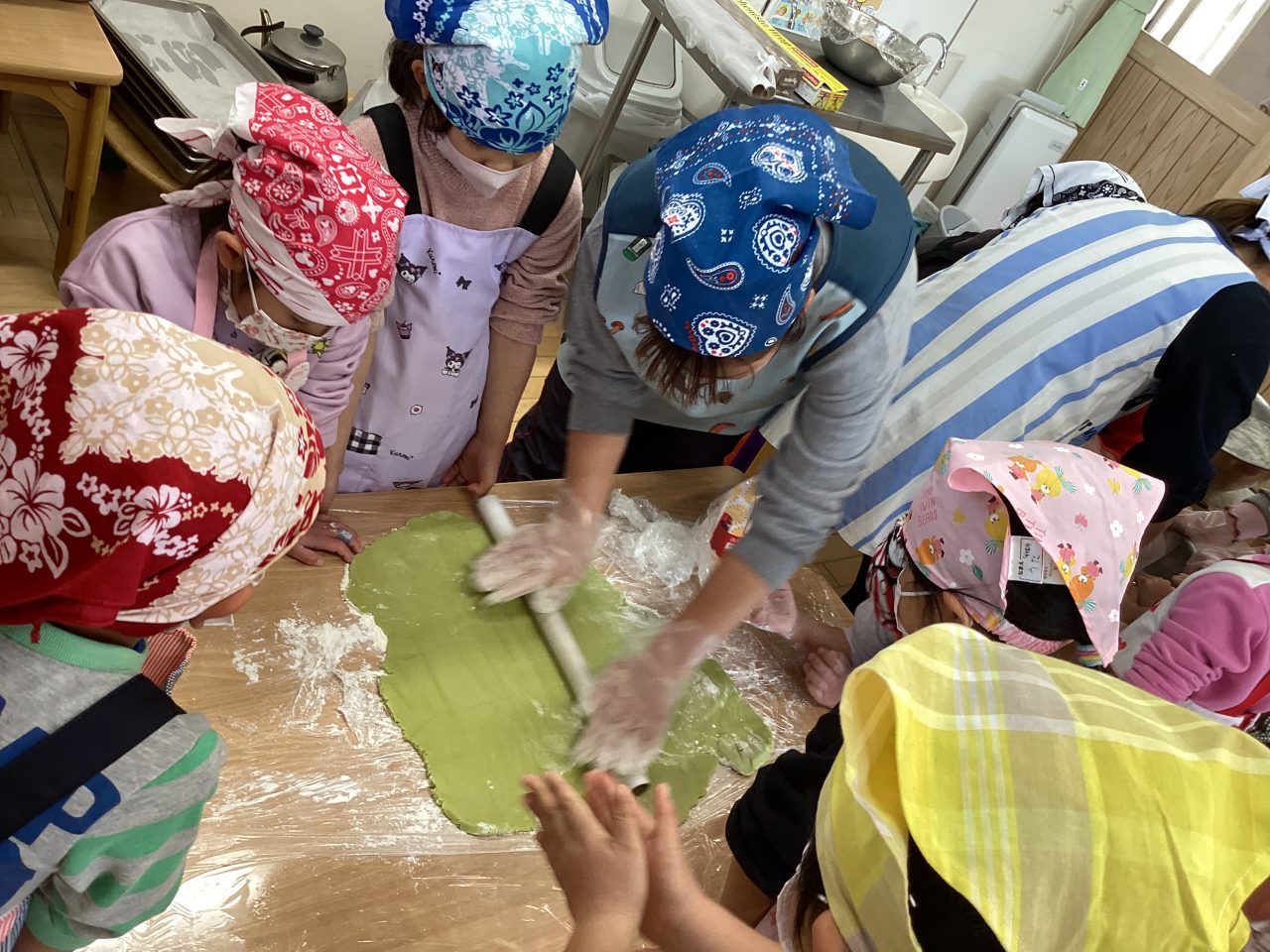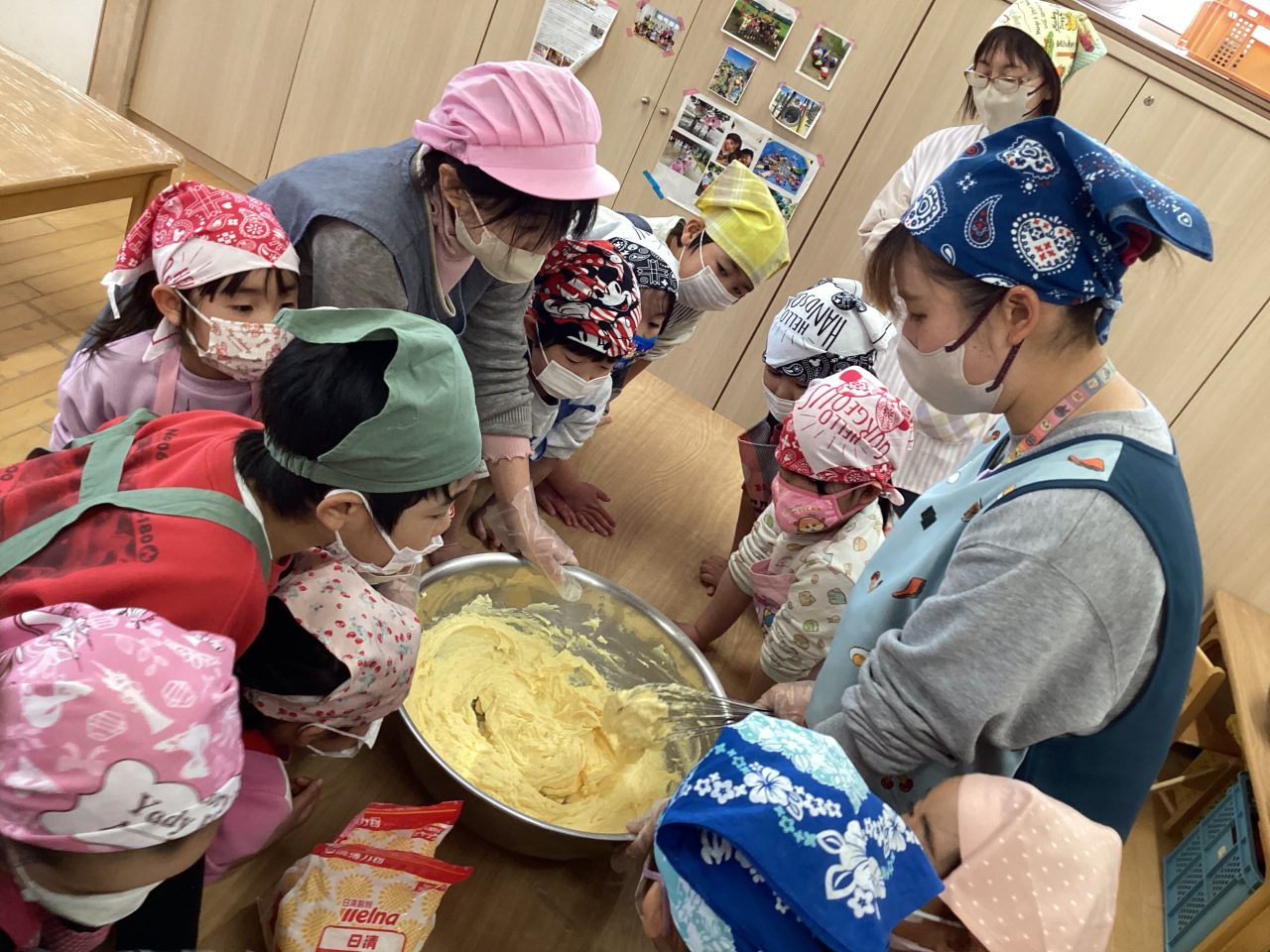 今日は年長児の子どもたちが、クッキーに挑戦しました。