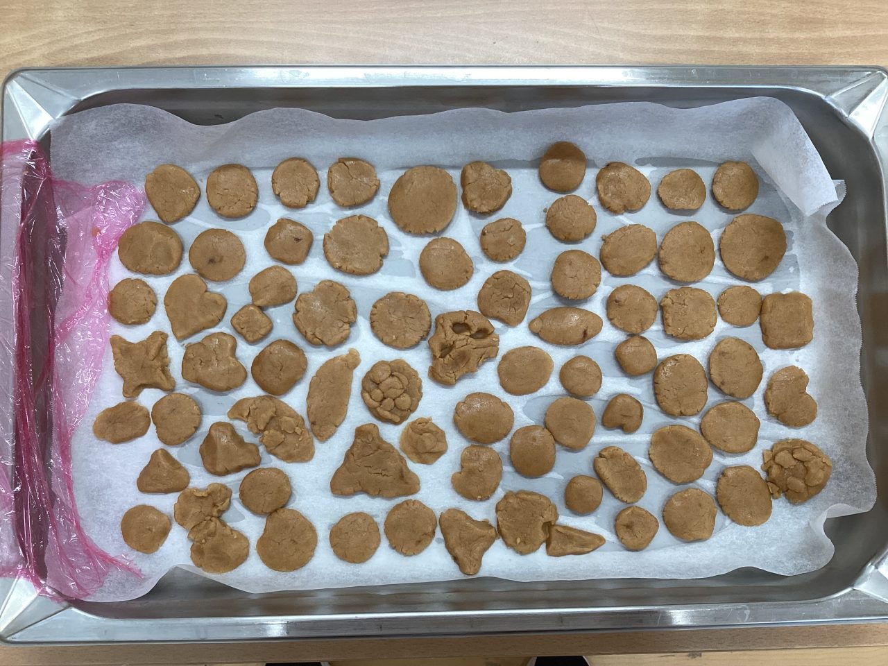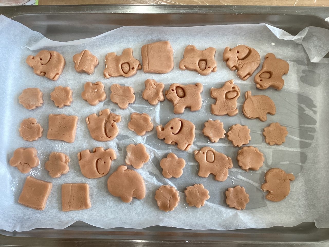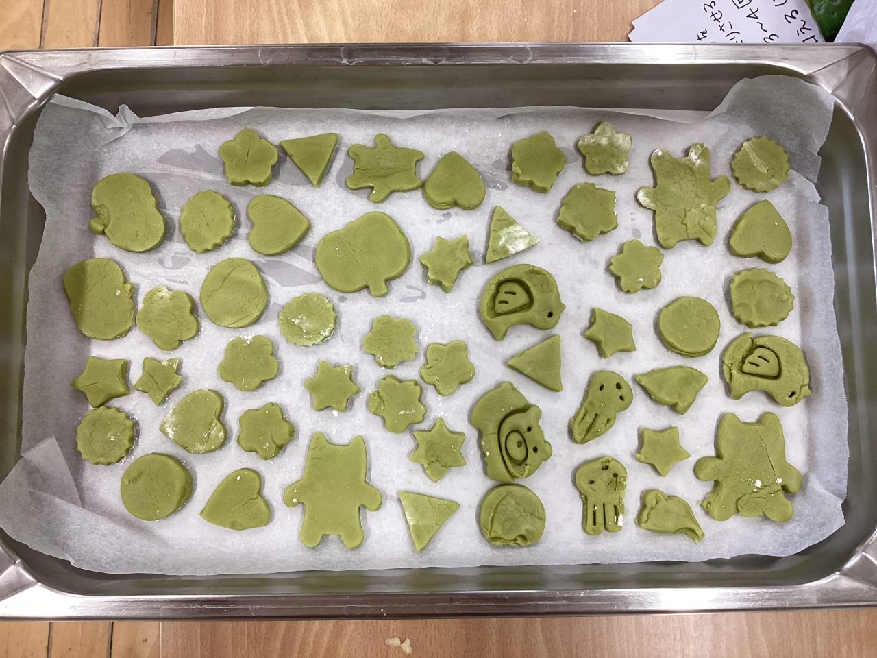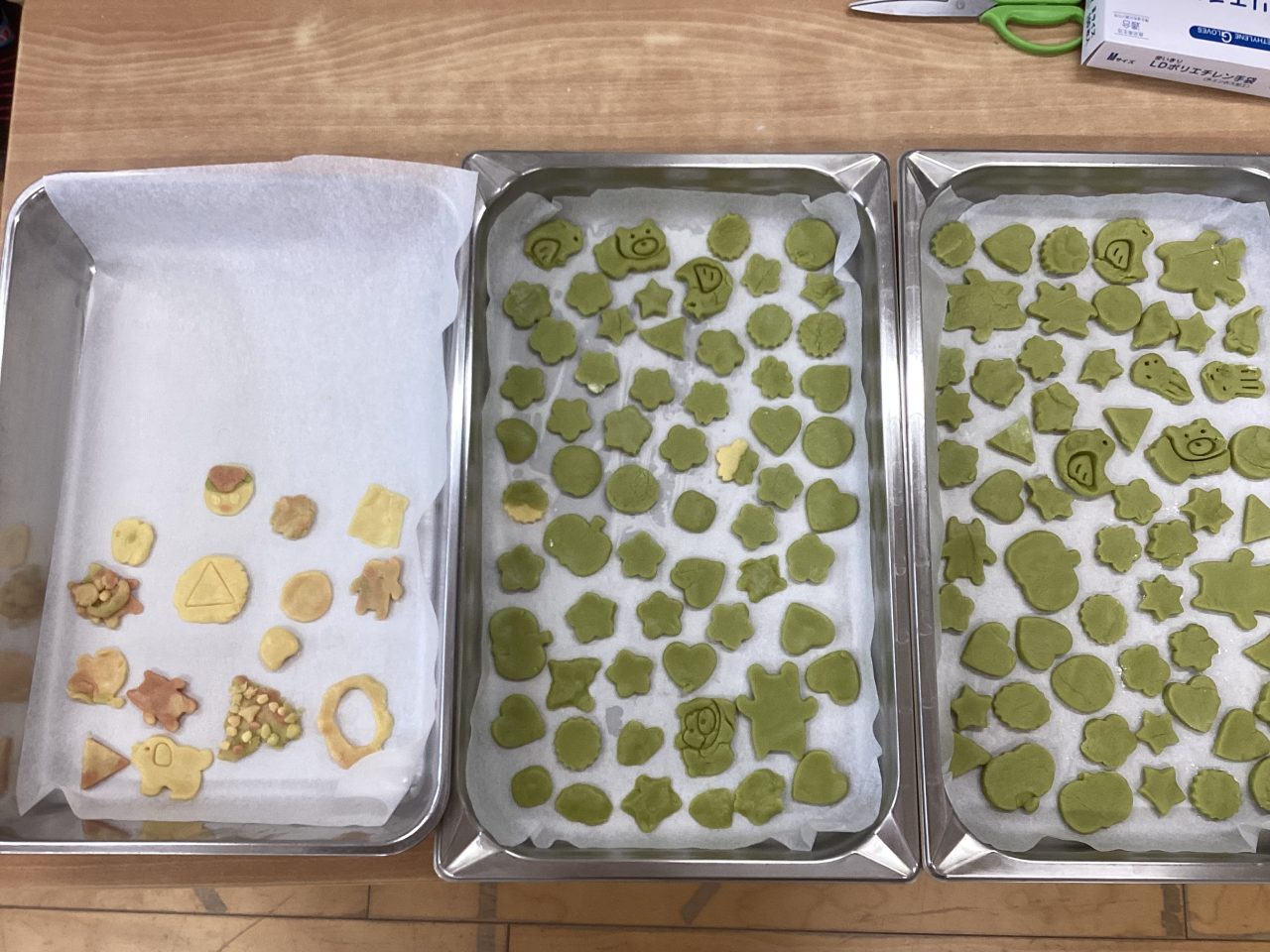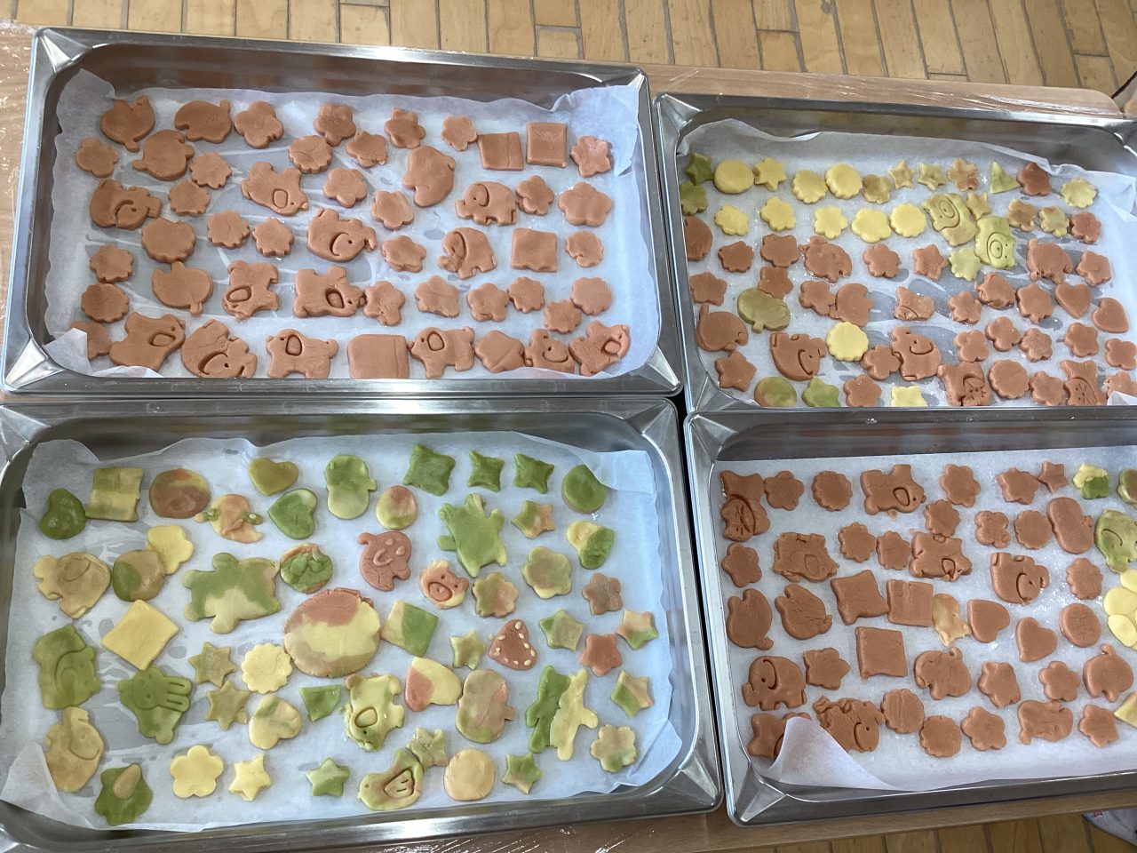 小麦粉・バターを入れて混ぜ合わせ、型抜きをしました。